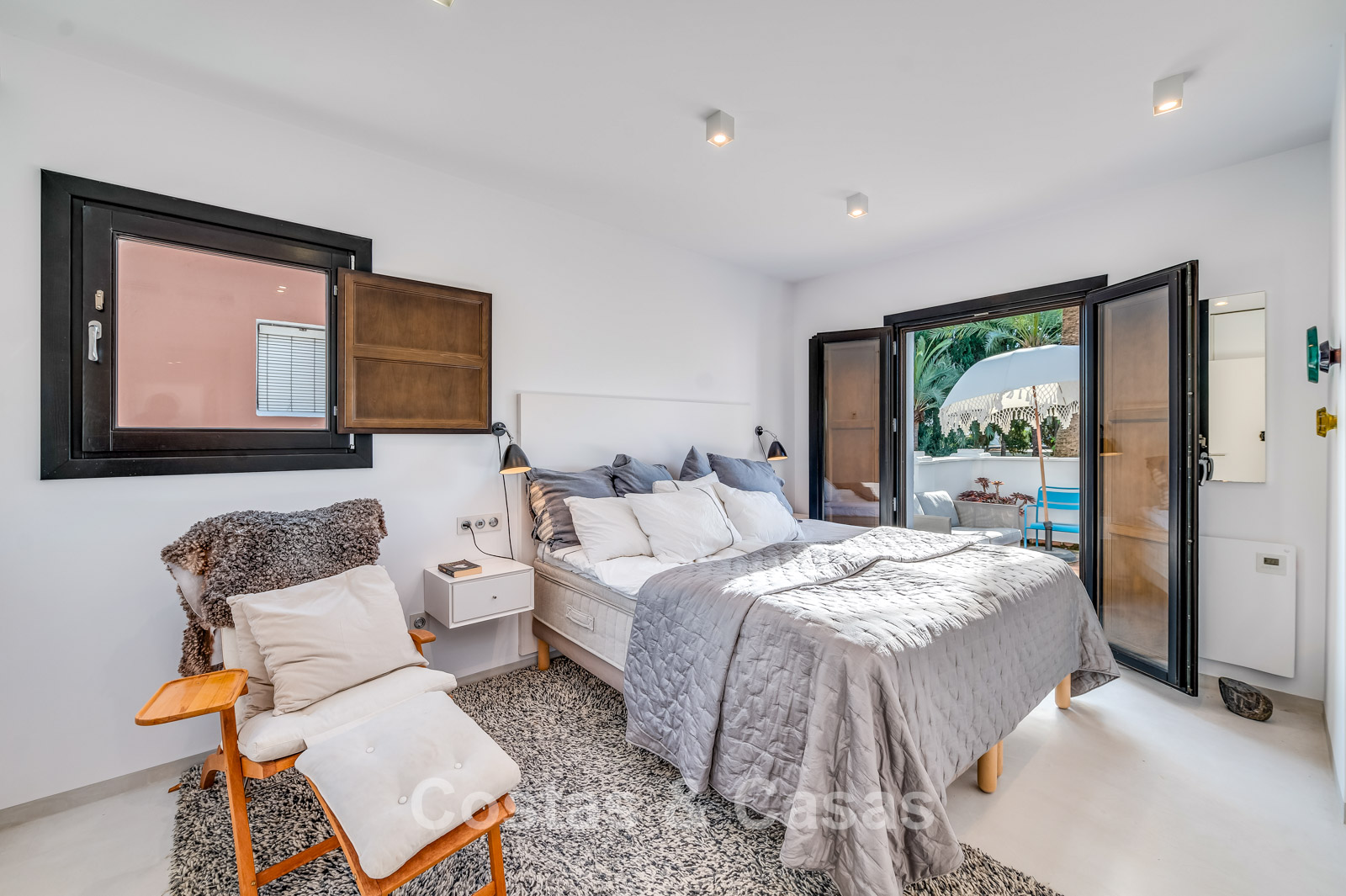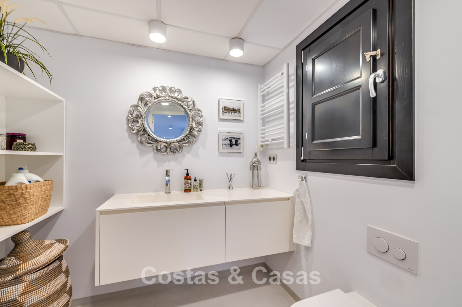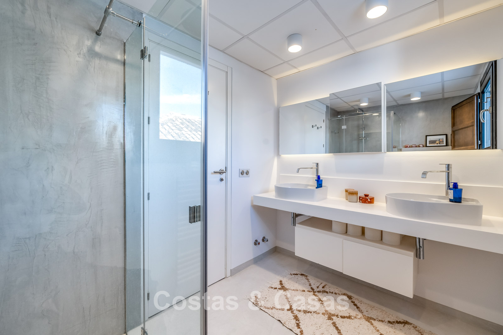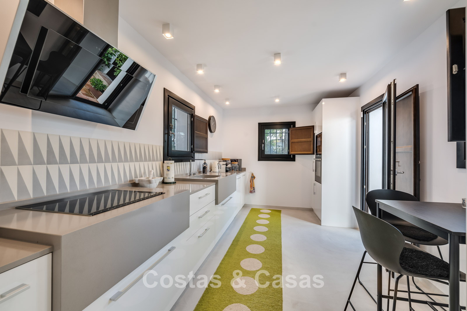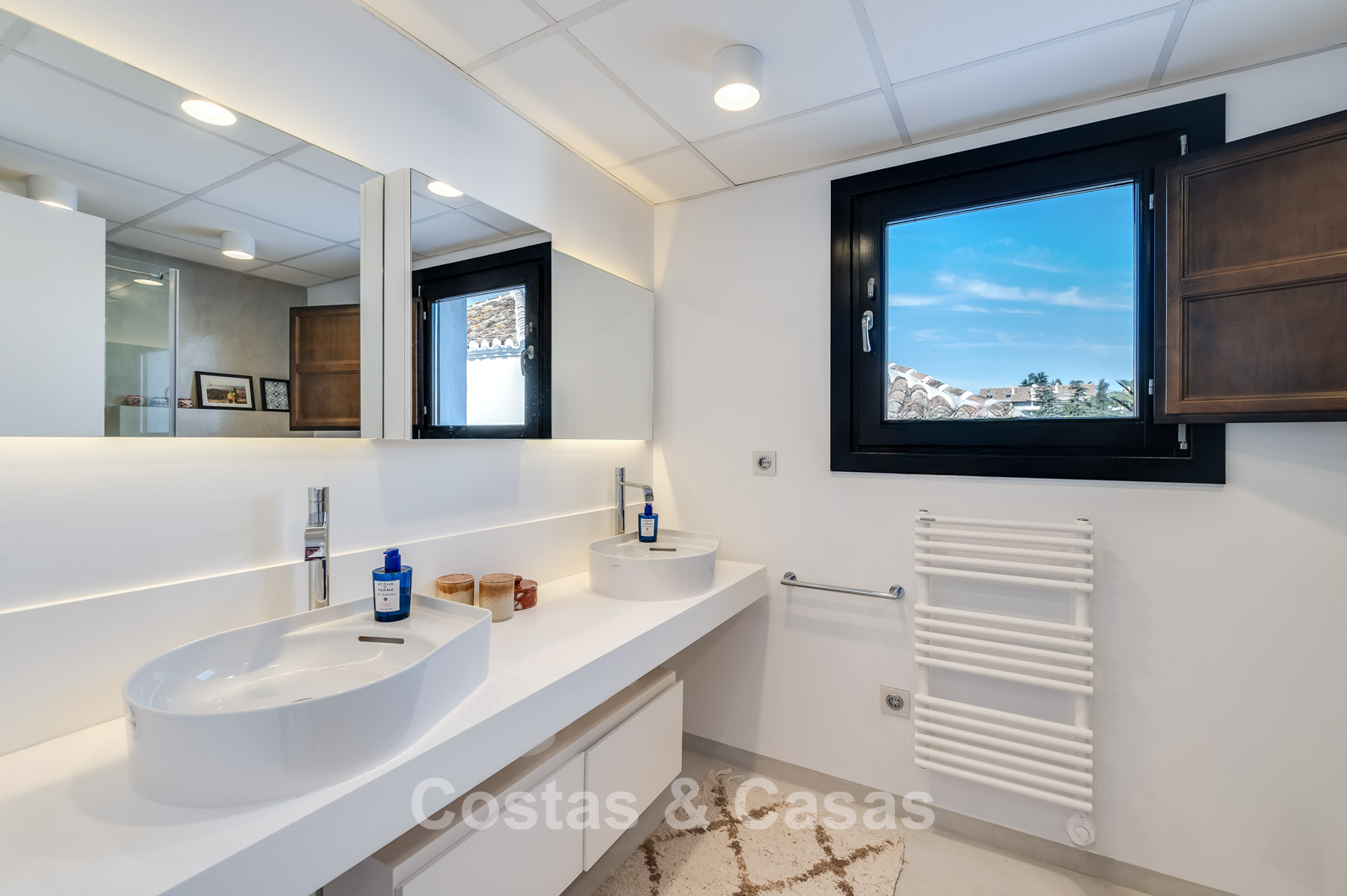 Maison d'angle avec un charme andalou traditionnel et un intérieur moderne et élégant. Récemment partiellement rénovée avec des matériaux de haute qualité. Située au sud-est. Vue sur les environs pittoresques depuis la terrasse. De grandes portes coulissantes en verre s'ouvrent sur un patio spacieux et ensoleillé de style andalou, une oasis privée où vous pourrez dîner, vous détendre et profiter pleinement du climat méditerranéen. Salon et salle à manger à aire ouverte. Cuisine ouverte pratique avec appareils électroménagers de qualité et bar à déjeuner. 3 chambres, 3 salles de bain. Buanderie. Parking.