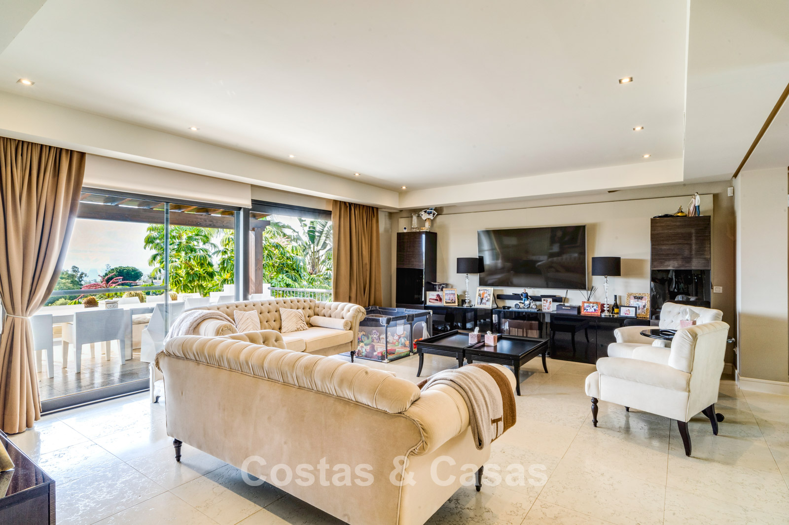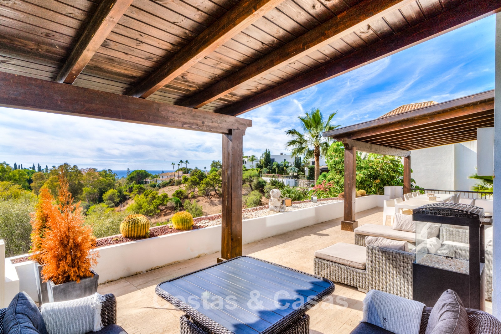 Villa de luxe espagnole, prête à emménager, avec vue sur la mer, à vendre sur le Golden Mile de Marbella