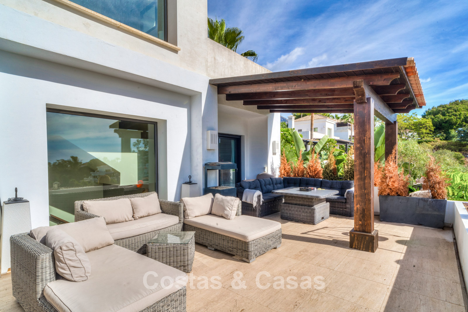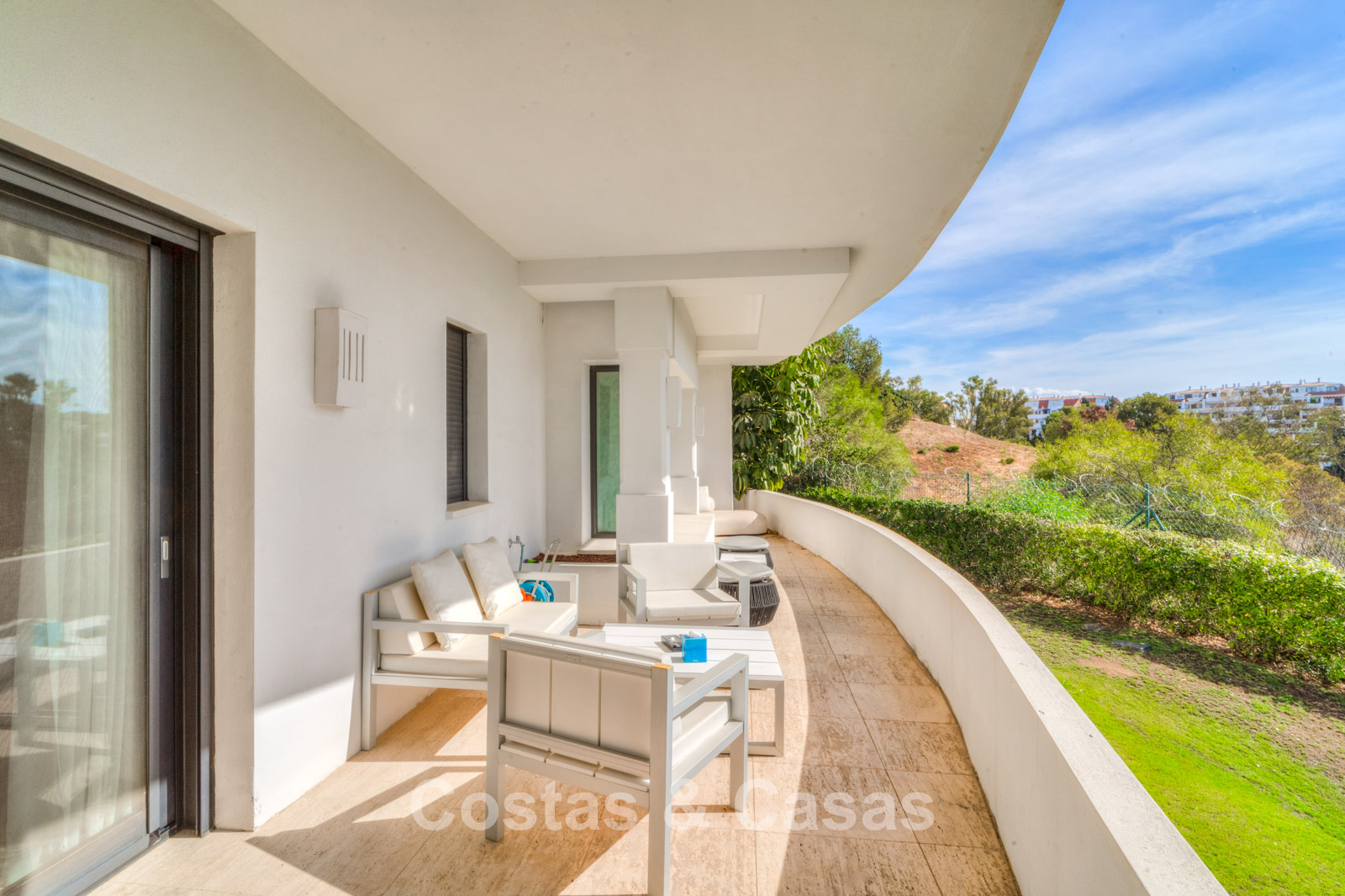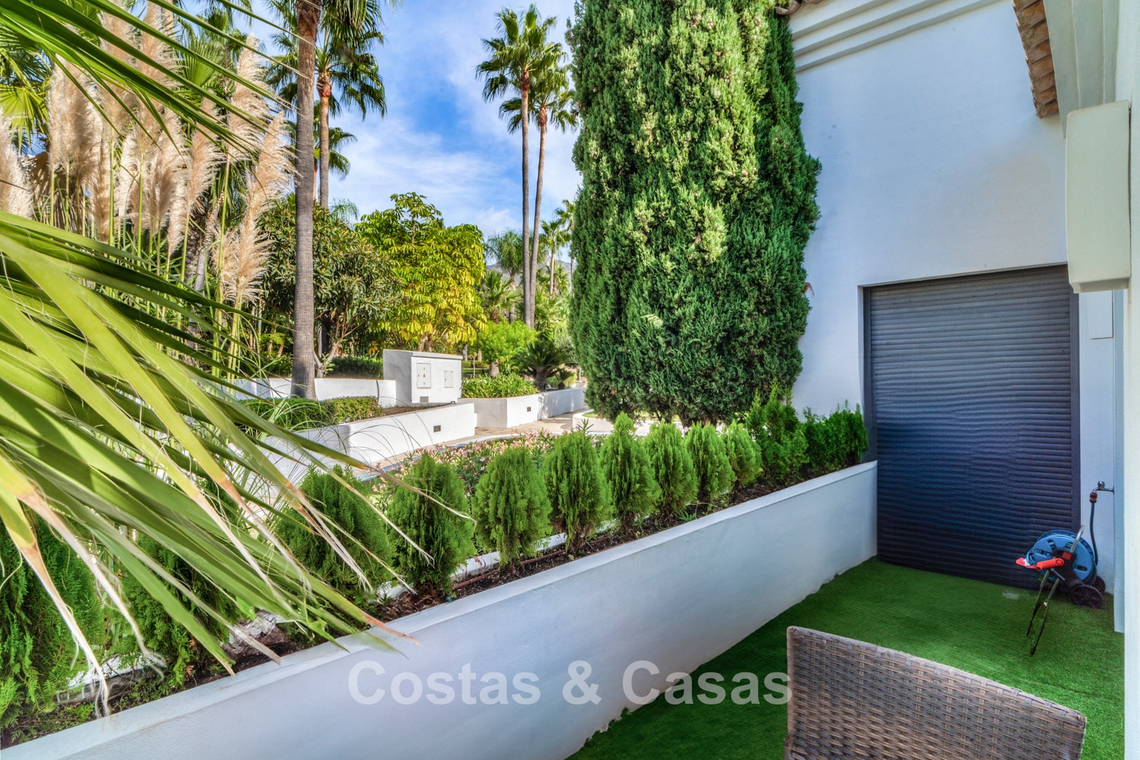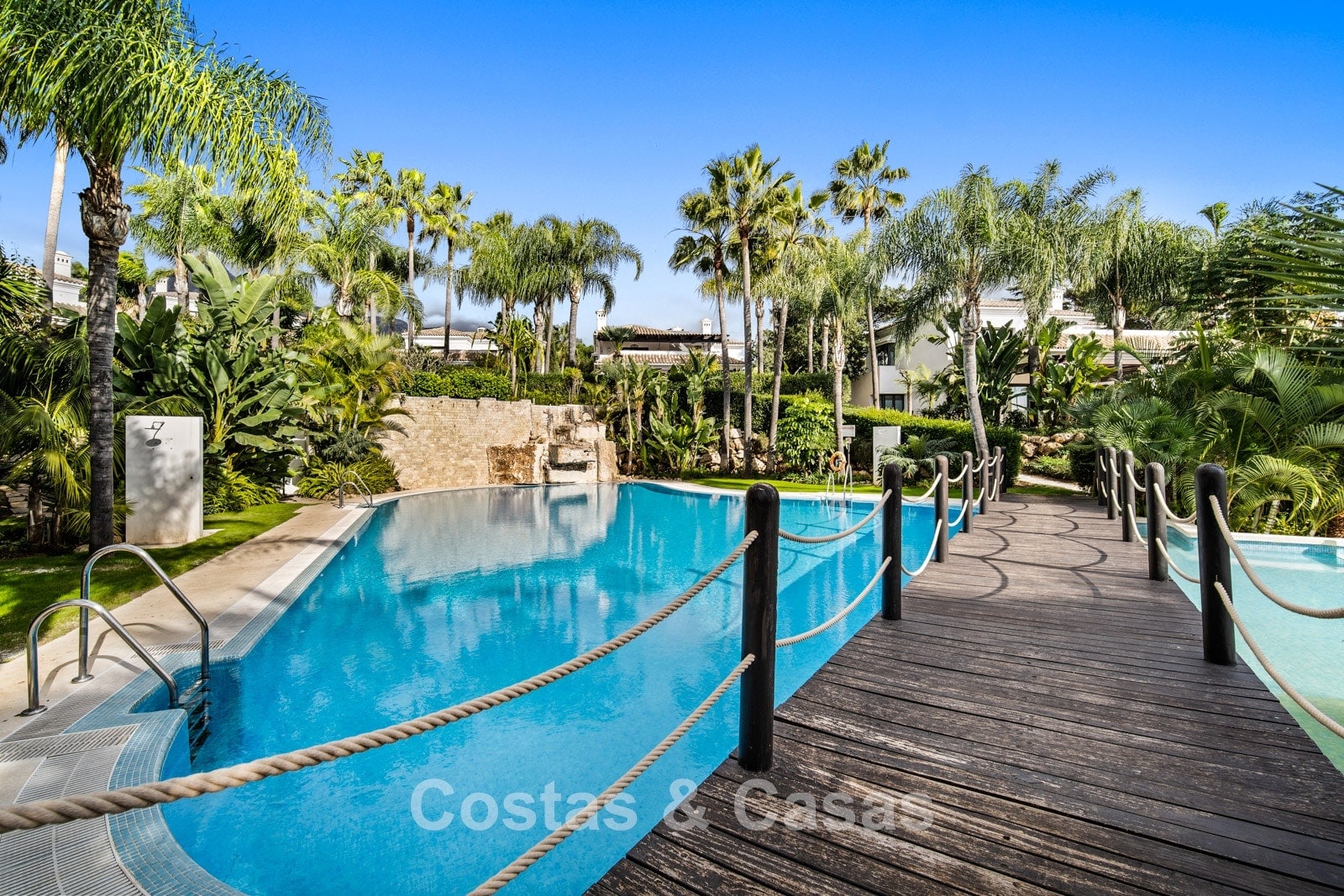 Située dans une petite résidence privée avec sécurité 24h/24, au nord du Golden Mile. Les résidents du complexe ont accès à deux grandes piscines communes et à des jardins tropicaux luxuriants. À seulement cinq minutes en voiture de la plage et à proximité des écoles, des clubs de golf, des commerces, des restaurants et des supermarchés. À 5 minutes en voiture de la célèbre marina de Puerto Banús et à 10 minutes du centre historique de Marbella.