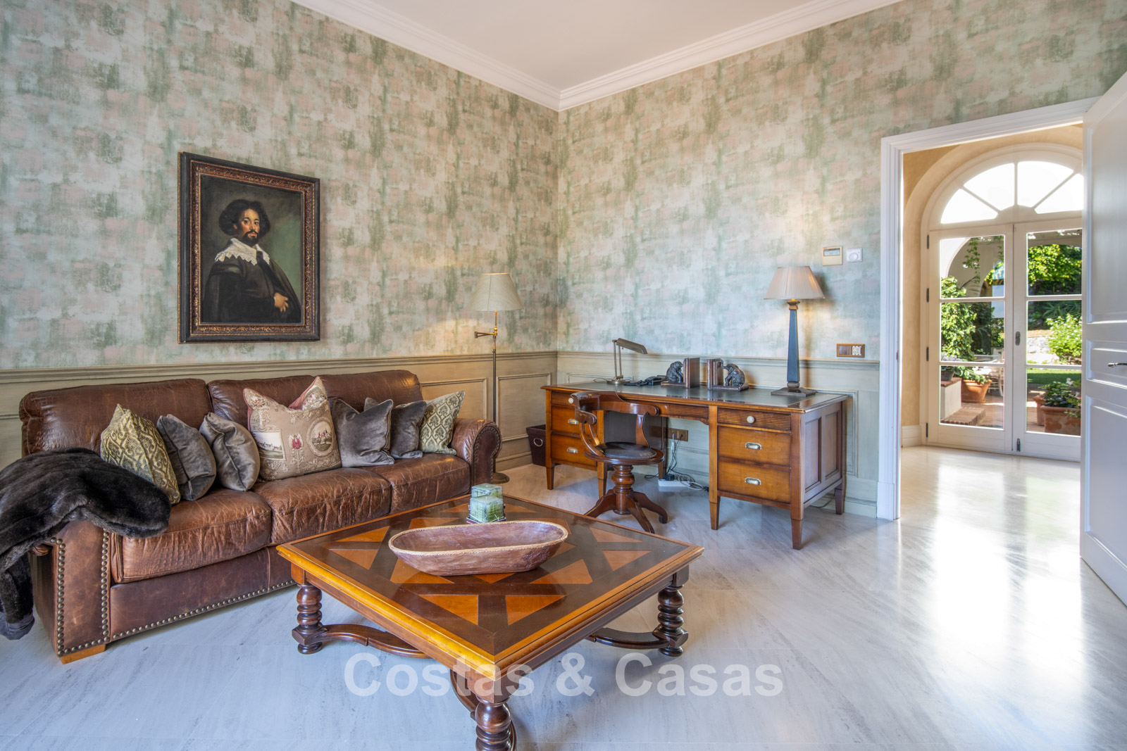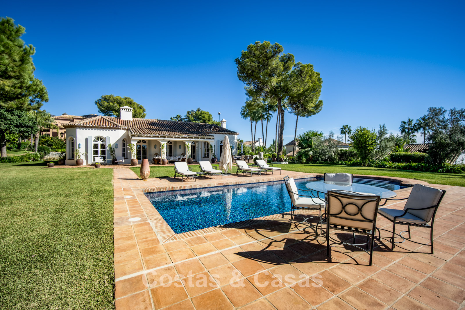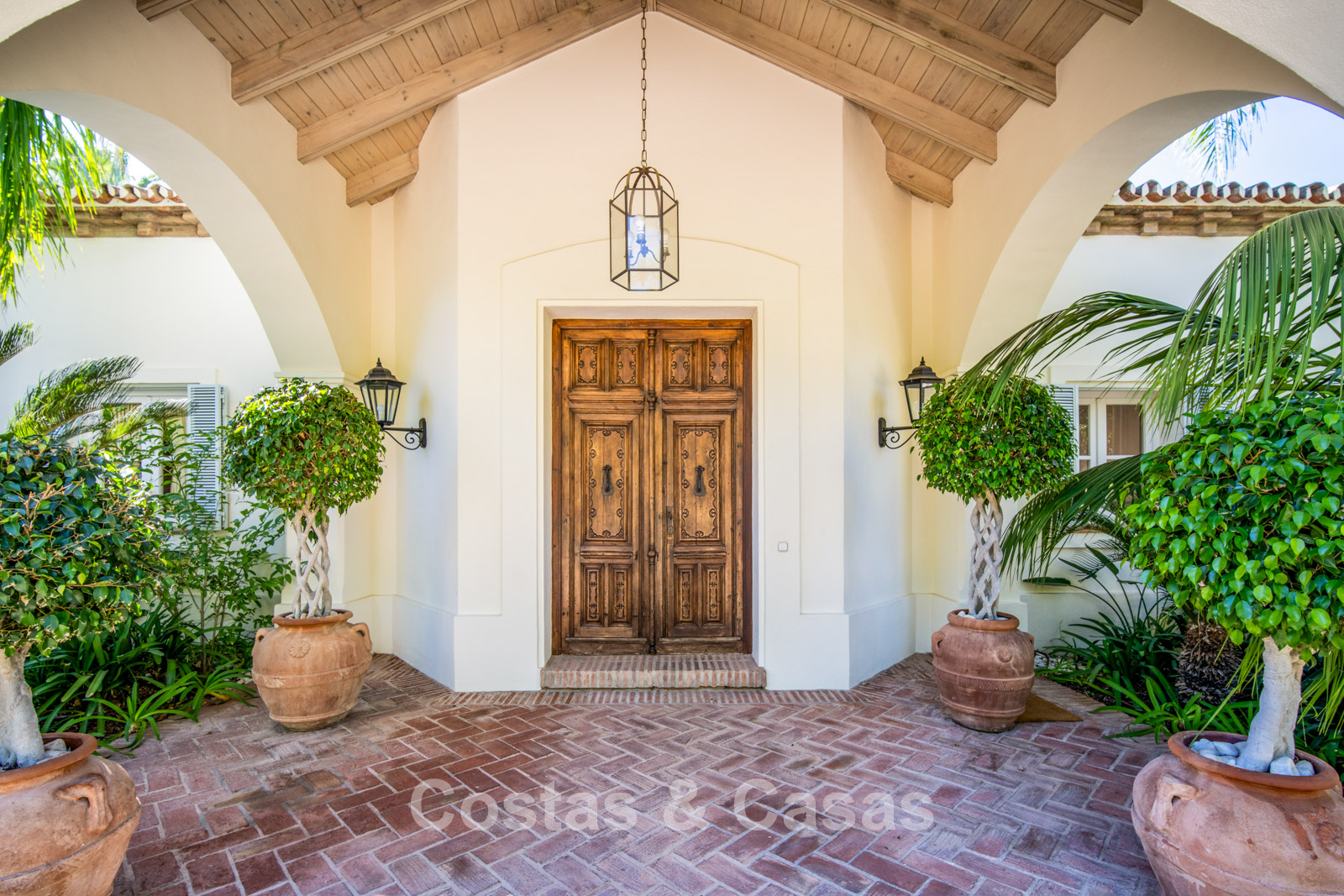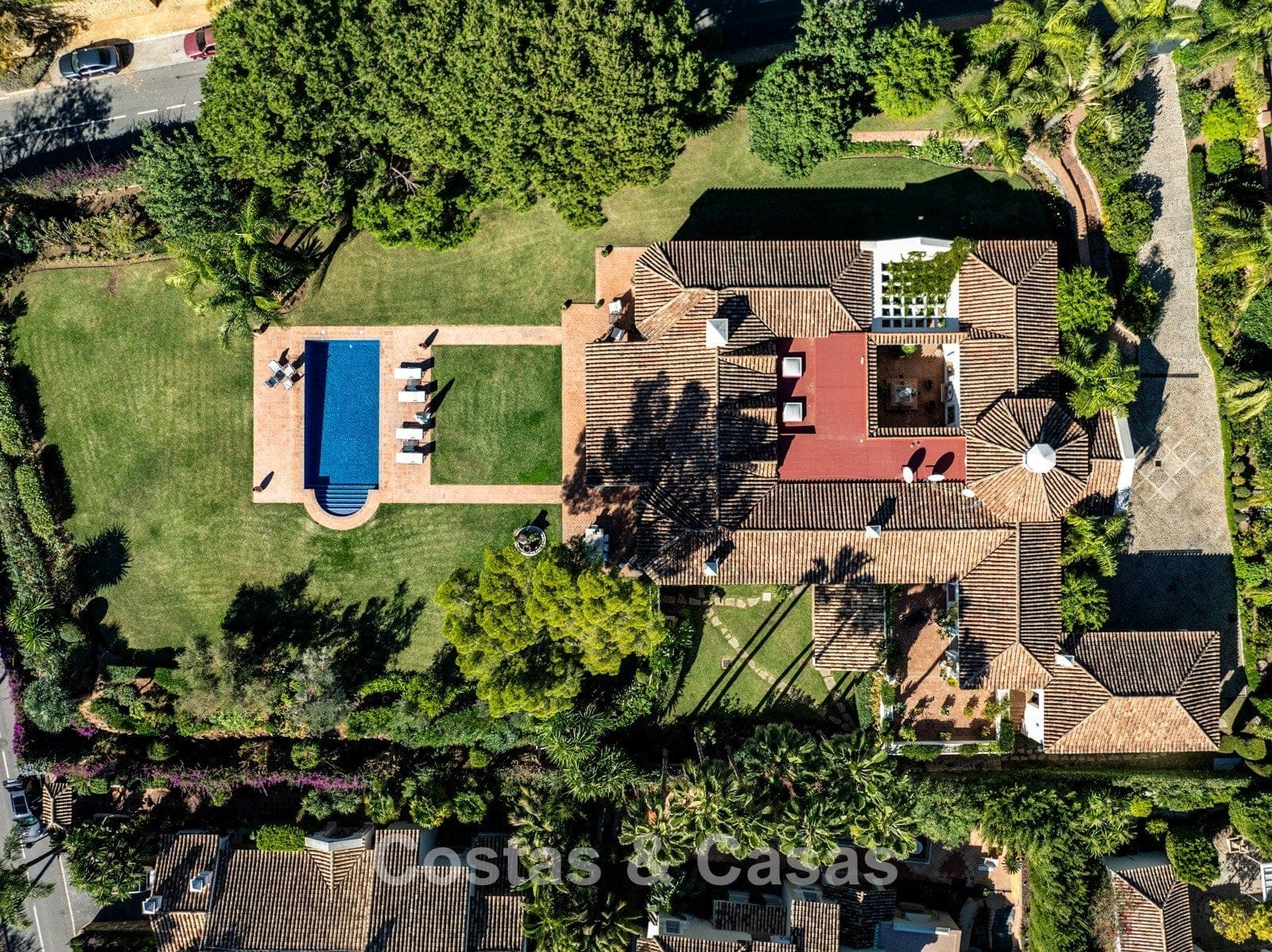 Villa indépendante de style architectural espagnol et méditerranéen. De plain-pied. Finitions avec des matériaux de haute qualité. Avec ses intérieurs classiques, ses hauts plafonds et ses magnifiques poutres apparentes, la villa dégage un charme méditerranéen intemporel. Les fenêtres cintrées à la française et les portes-fenêtres laissent entrer une abondante lumière naturelle. Grand séjour ouvert avec une authentique cheminée à bois. À côté se trouve une salle à manger chaleureuse. Cuisine séparée avec de nombreux rangements, des appareils électroménagers haut de gamme et une double hauteur sous plafond. 5 chambres, 5 salles de bains et 2 toilettes séparées. Espace bureau. Un grand espace multifonctionnel de 130 m² peut être aménagé librement. Sols en marbre de haute qualité. Bodega traditionnelle. Cave à vin. Buanderie. Garage privé pour 2 voitures. Stationnement supplémentaire sur la propriété.