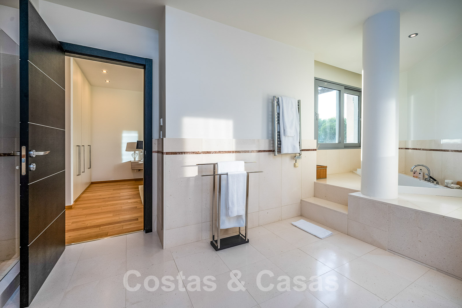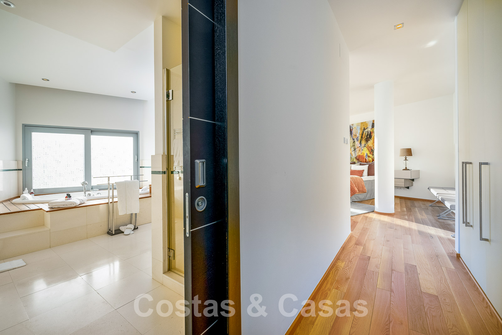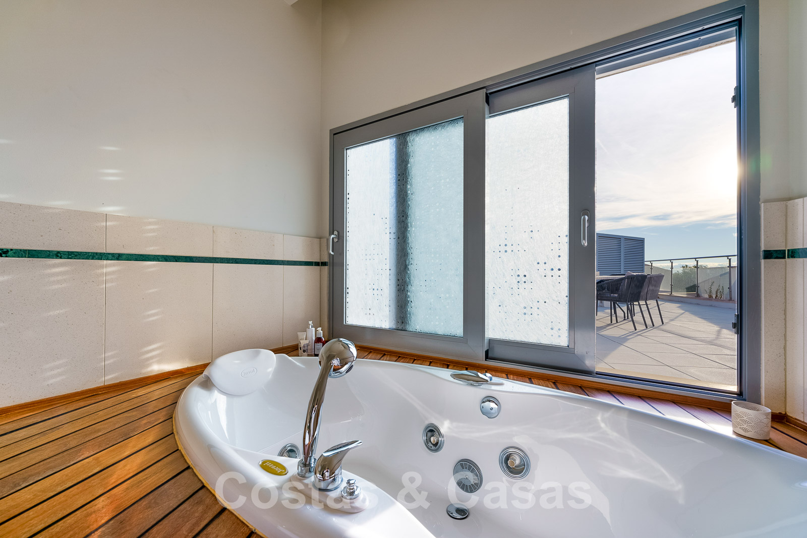 La chambre principale dispose d'une salle de bains en suite et d'une terrasse privée.