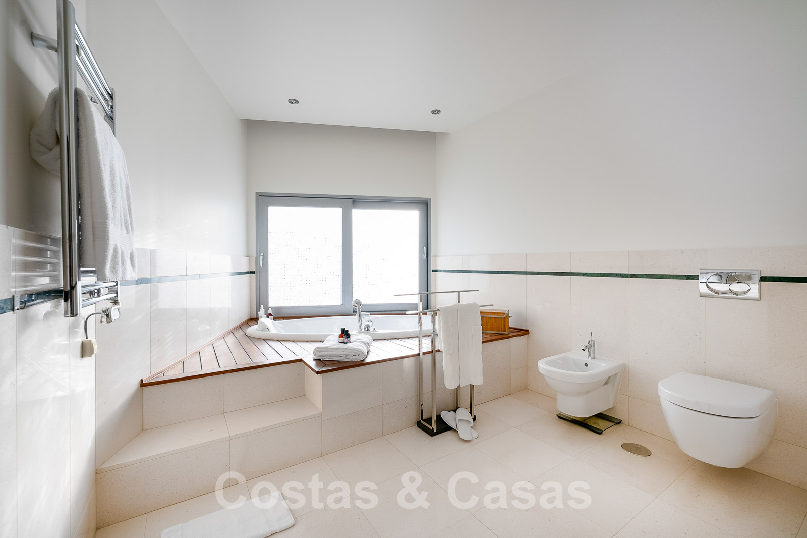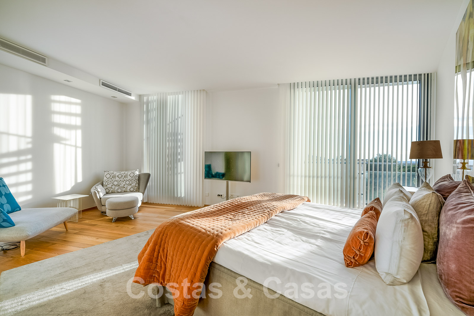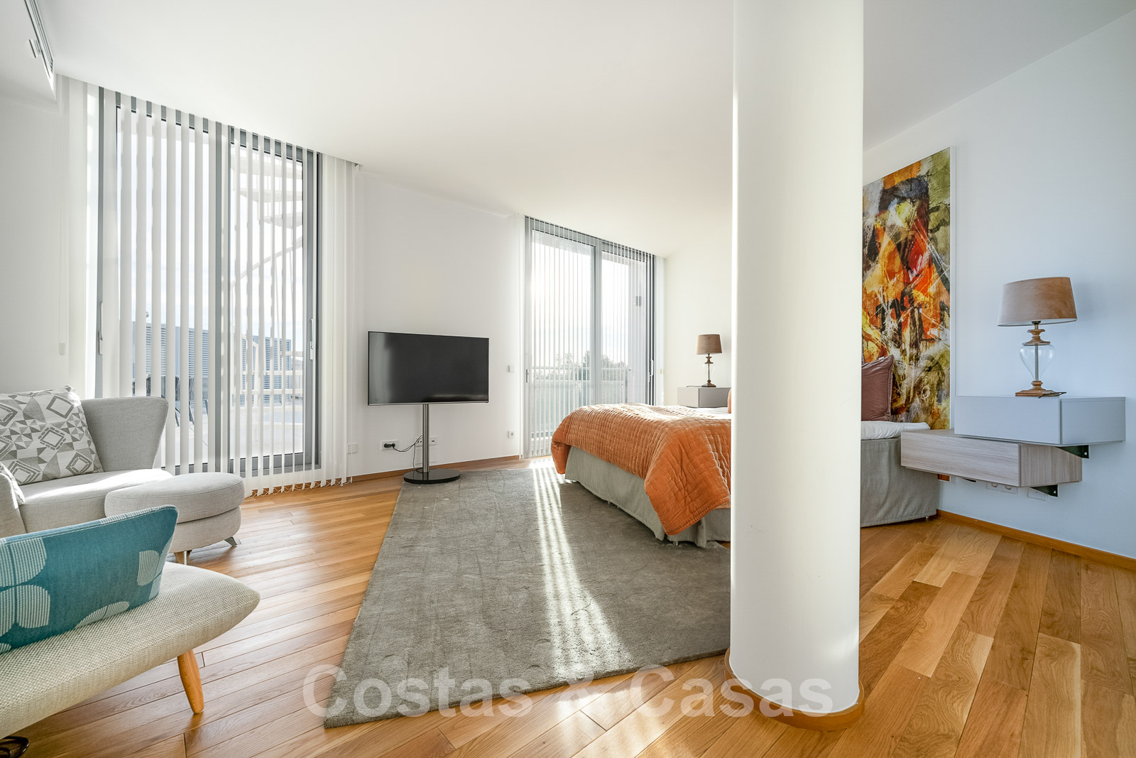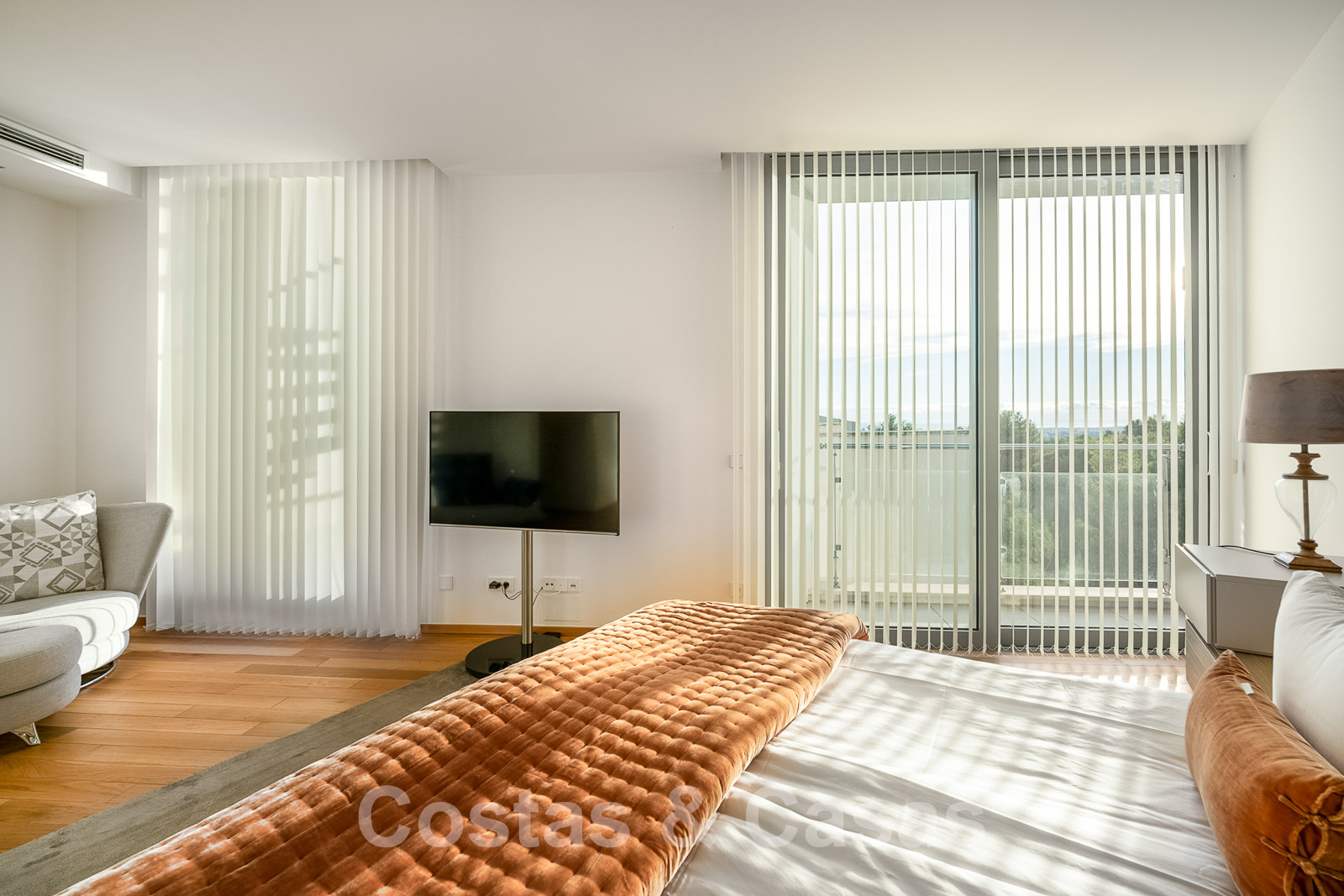 La chambre principale dispose d'une salle de bains en suite et d'une terrasse privée.