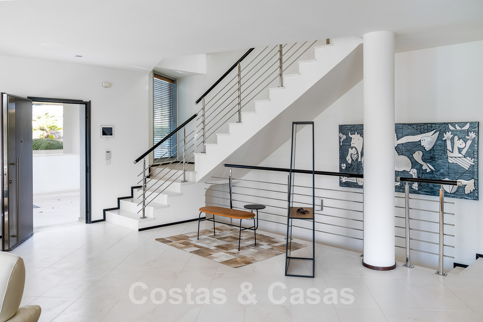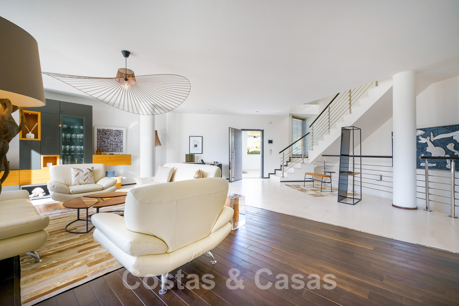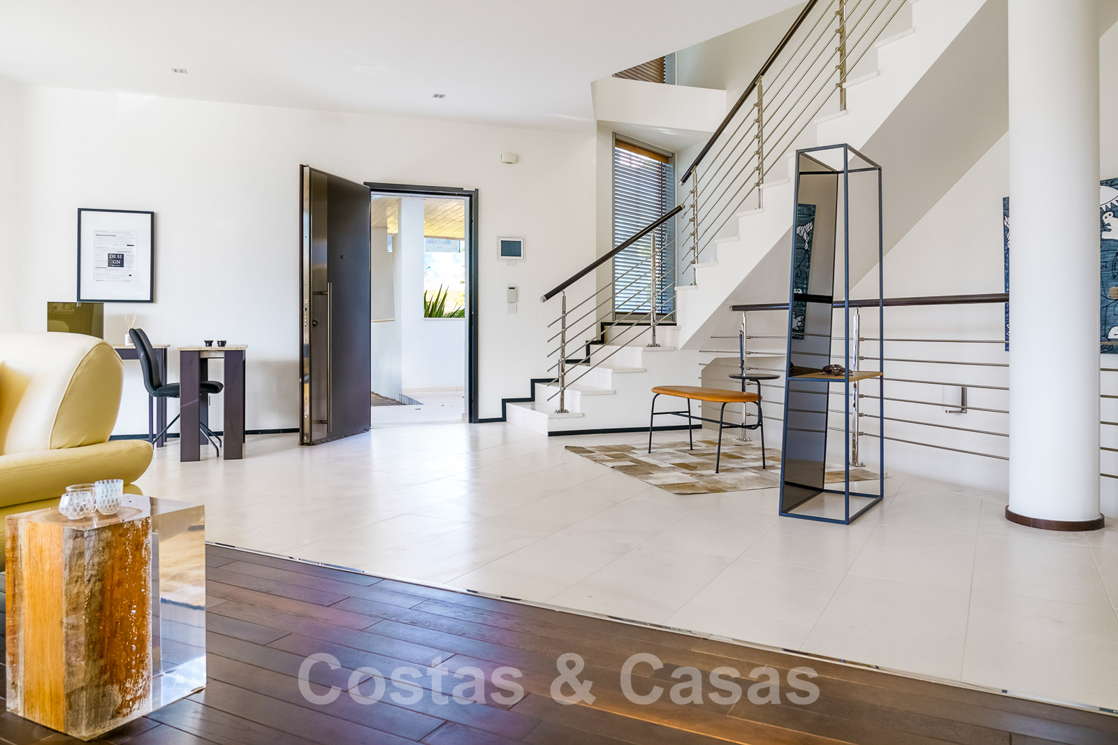 En entrant, vous êtes immédiatement accueilli dans l'espace de vie avec les escaliers sur la gauche.