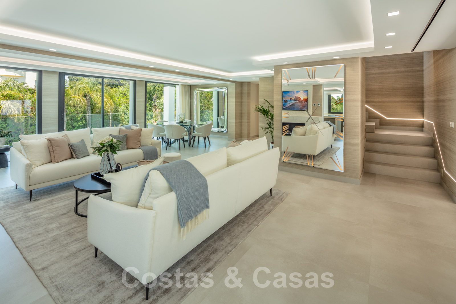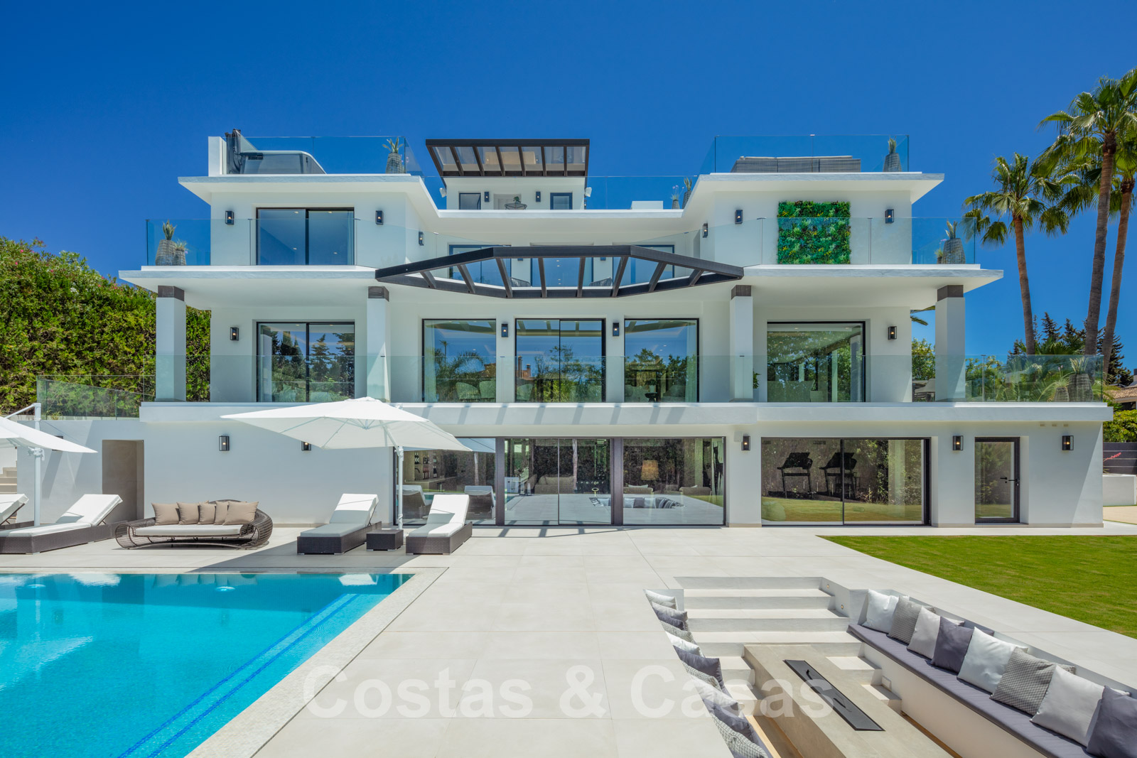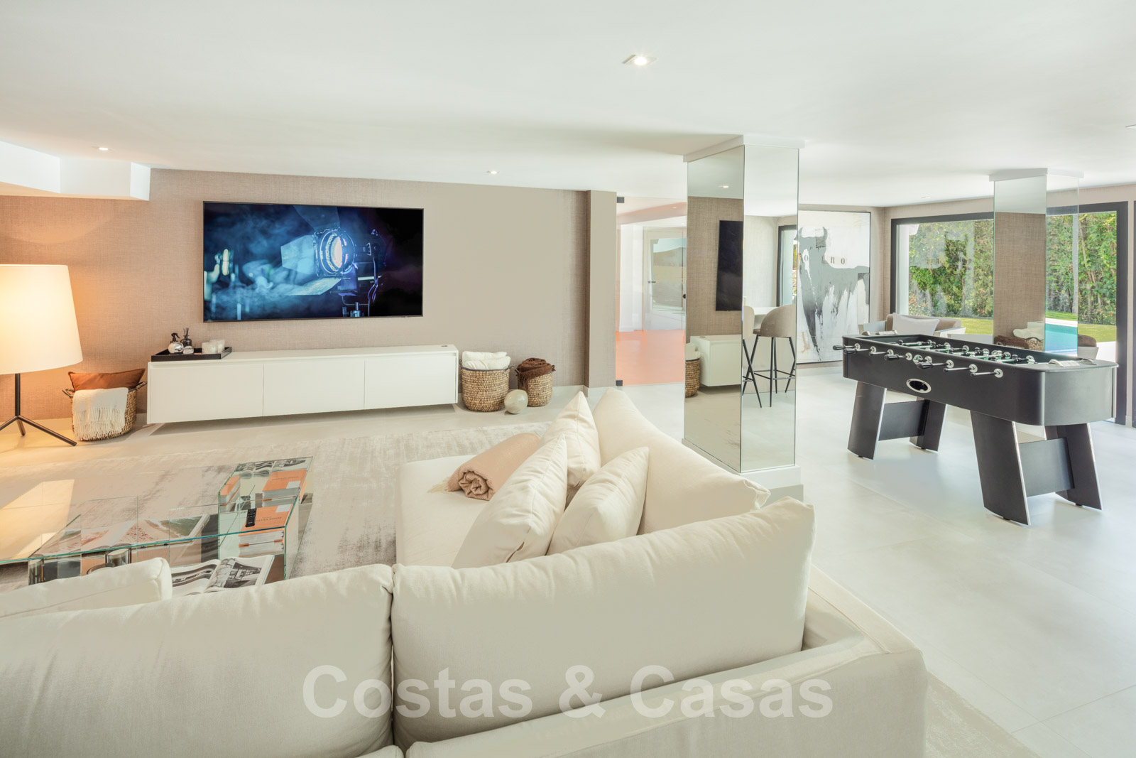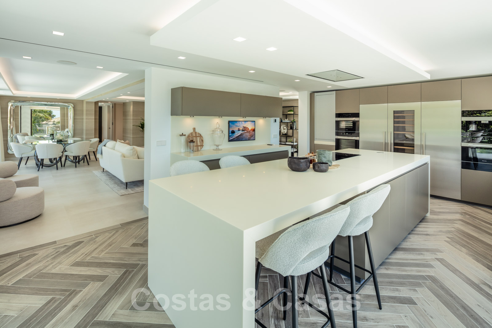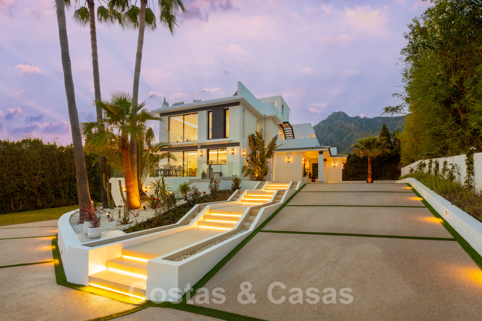 Vente d'une villa architecturale contemporaine, entièrement rénovée, avec vue sur la mer Méditerranée, dans le Golden Mile de Marbella