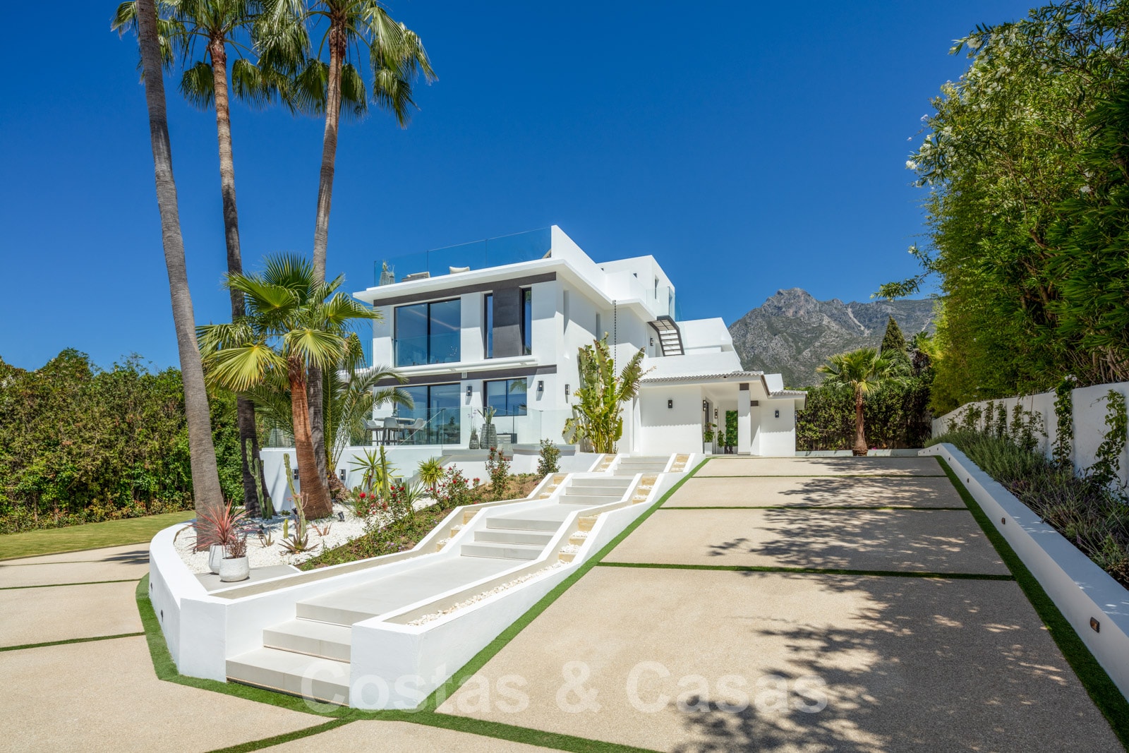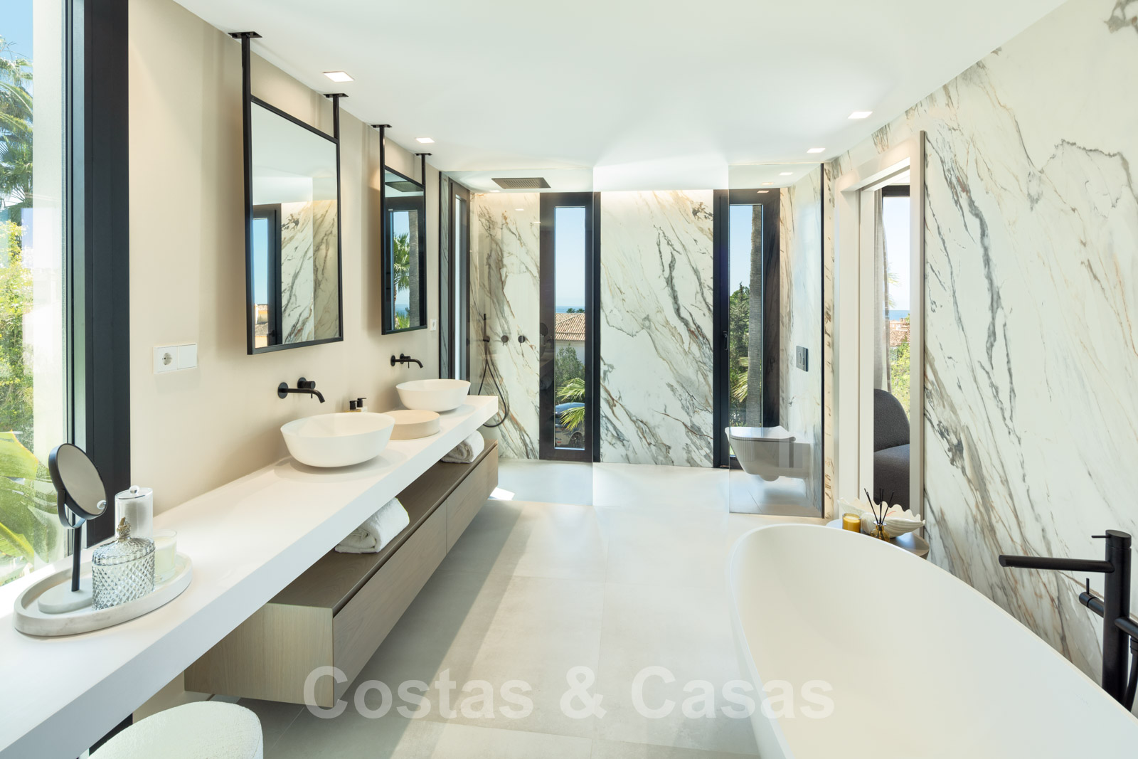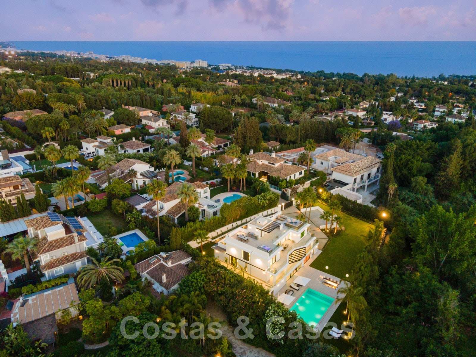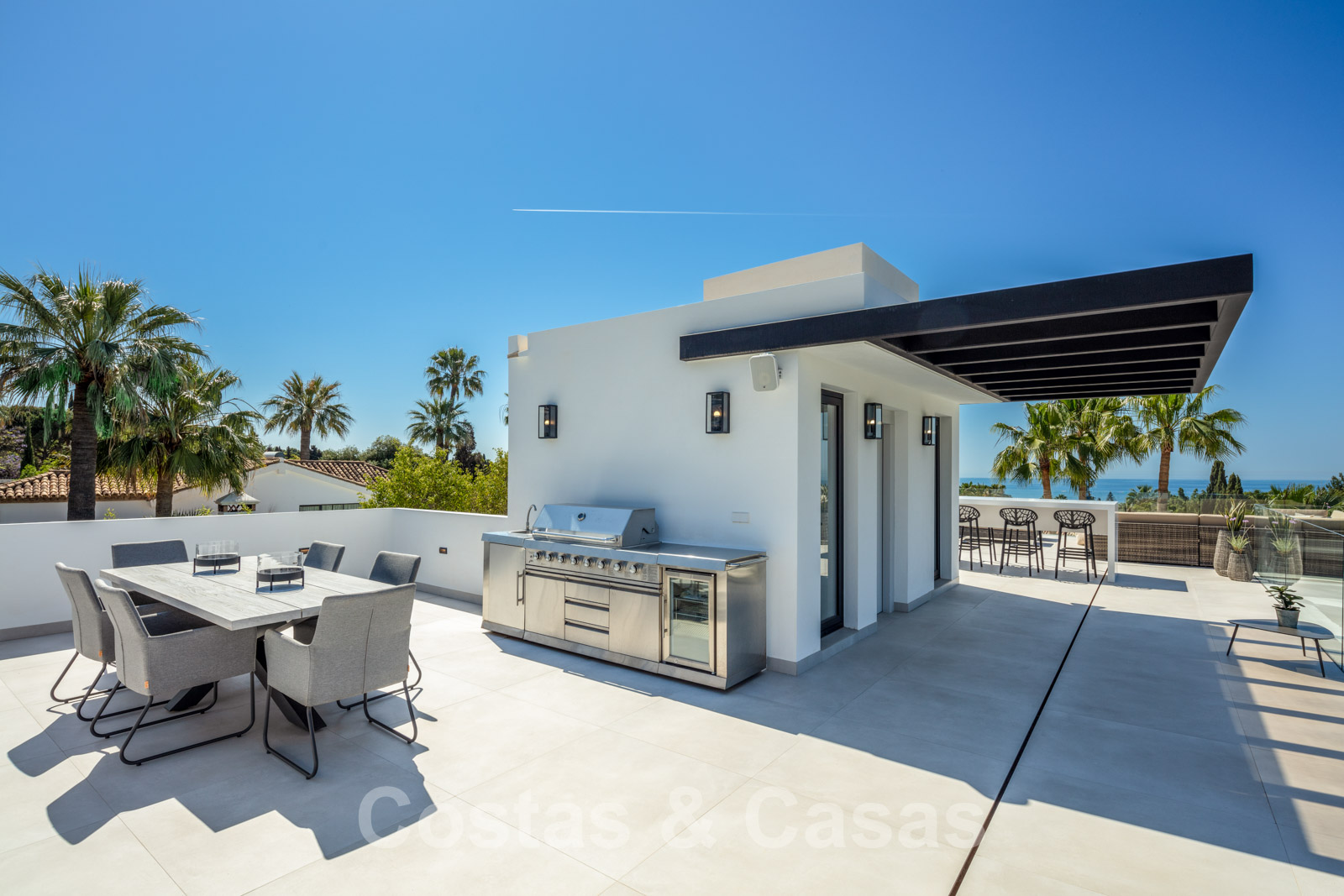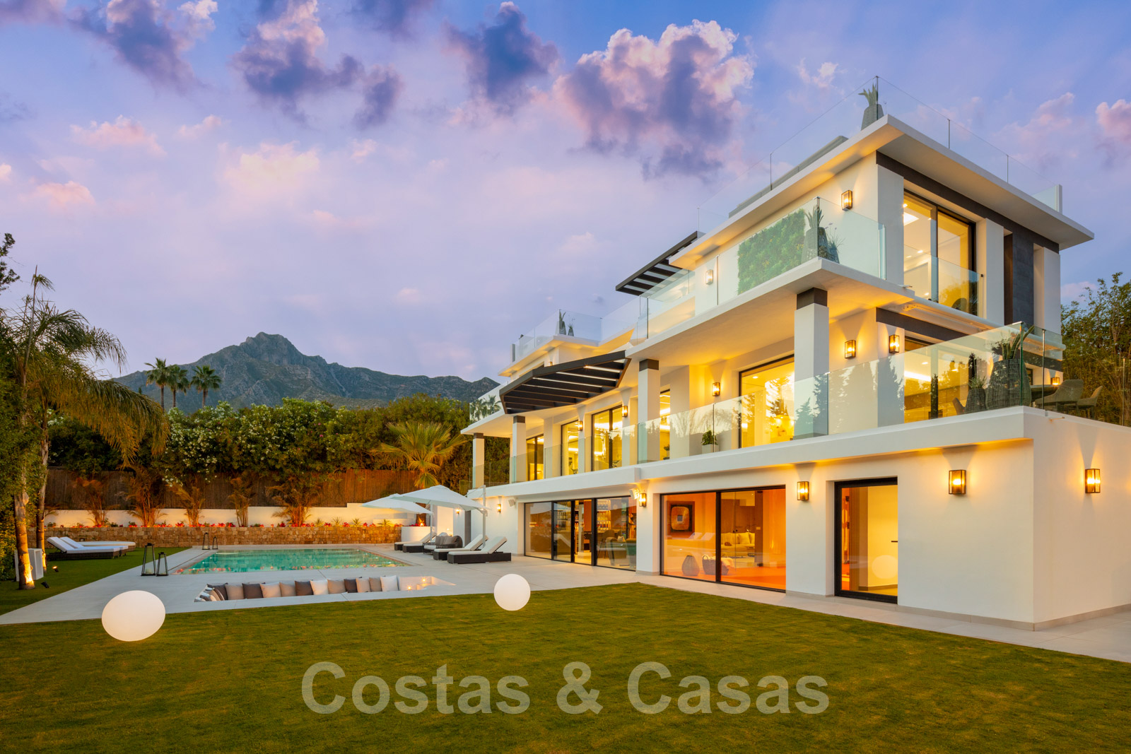Vente d'une villa architecturale contemporaine, entièrement rénovée, avec vue sur la mer Méditerranée, dans le Golden Mile de Marbella