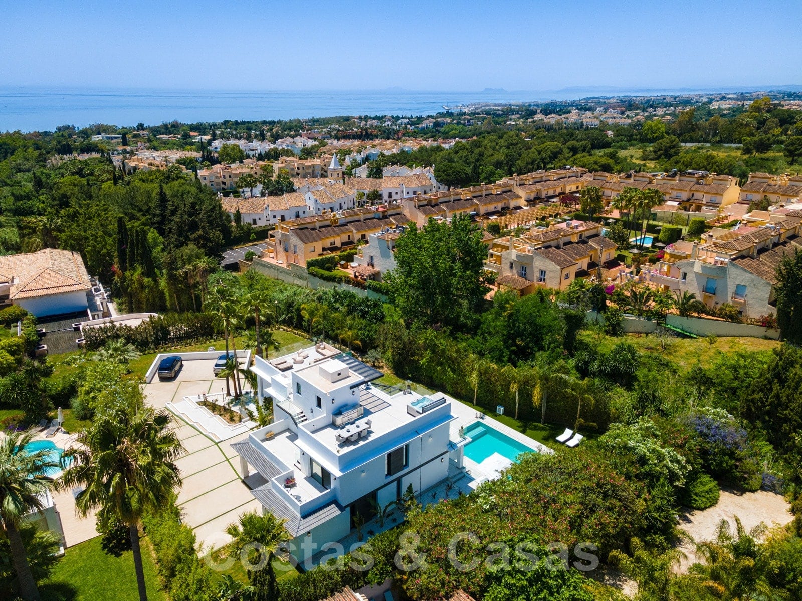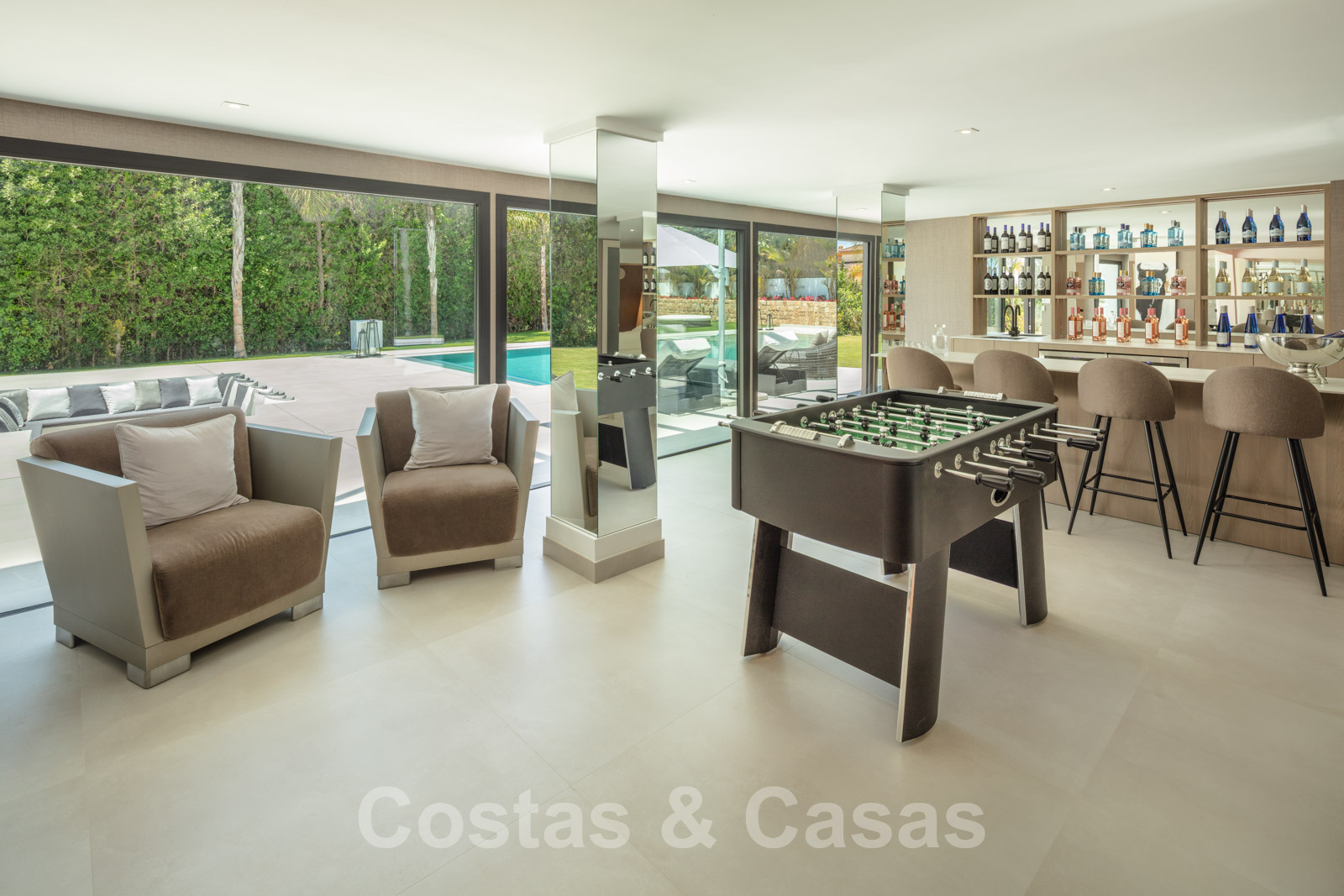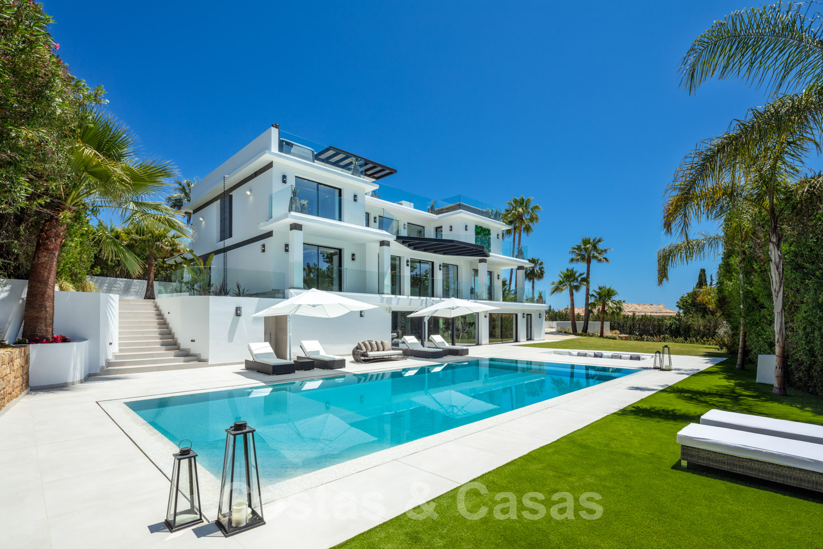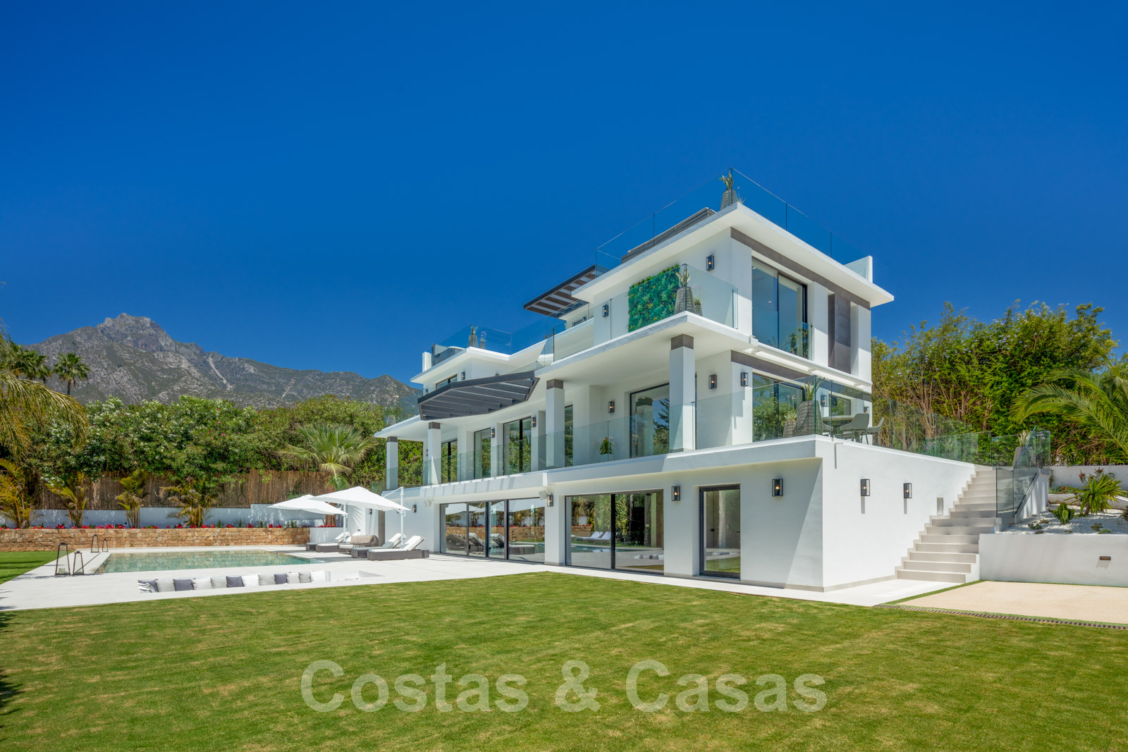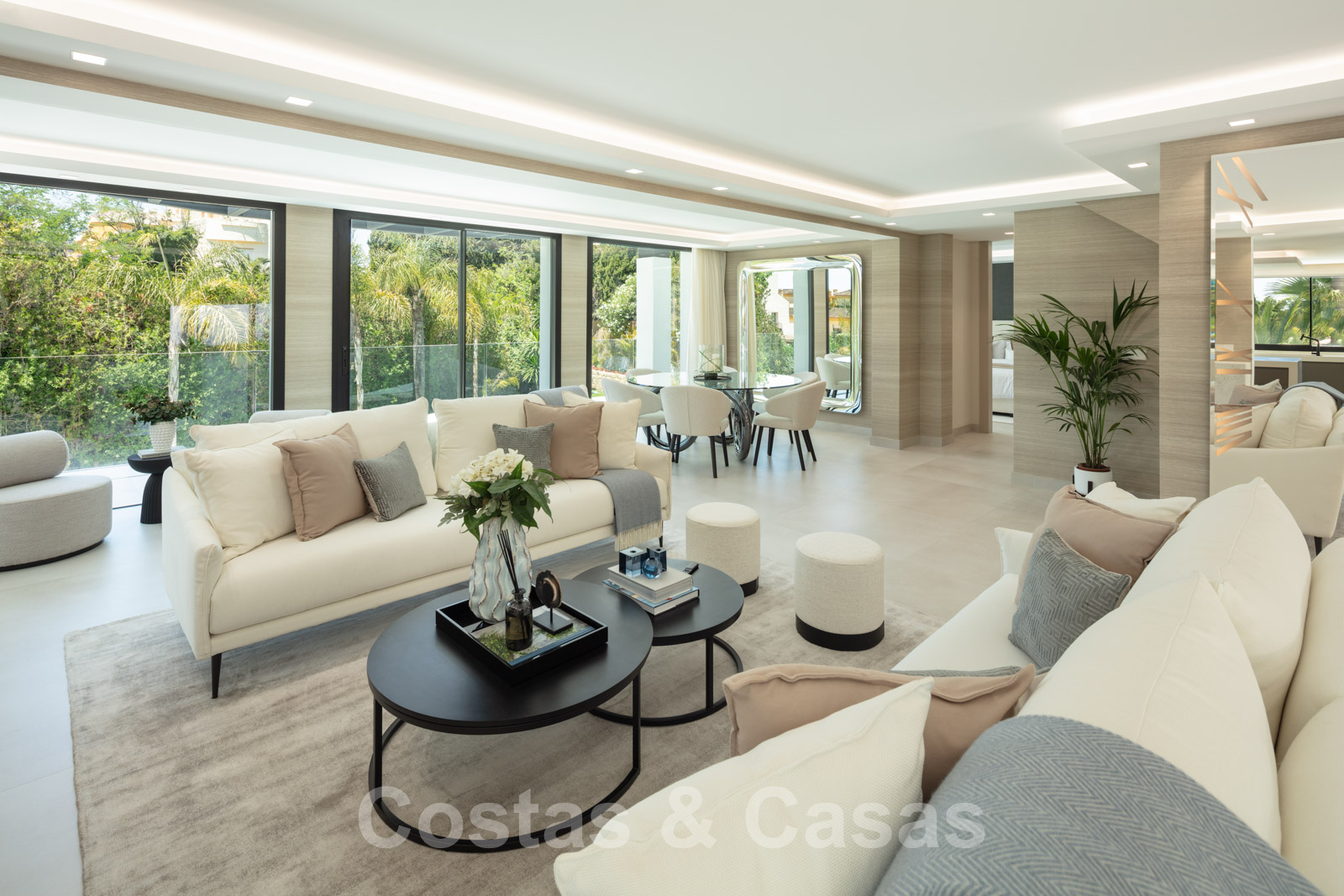 Vente d'une villa architecturale contemporaine, entièrement rénovée, avec vue sur la mer Méditerranée, dans le Golden Mile de Marbella