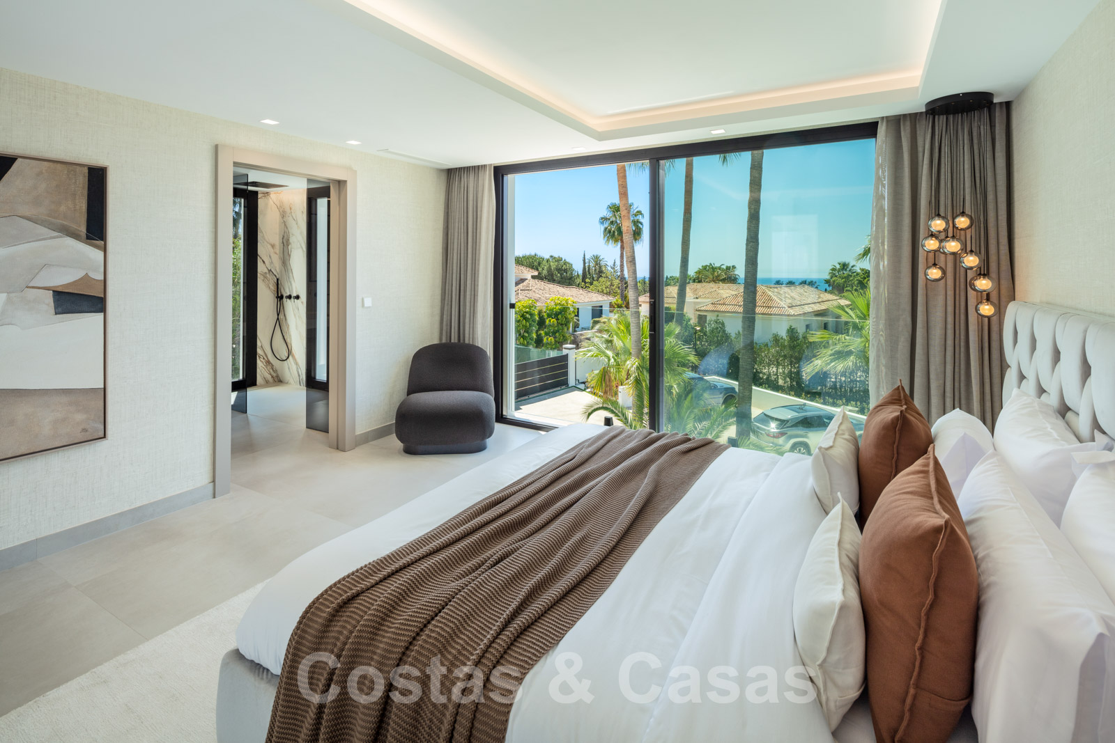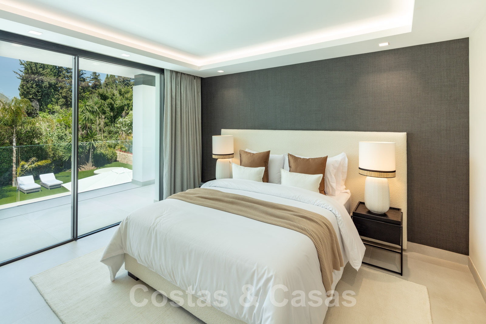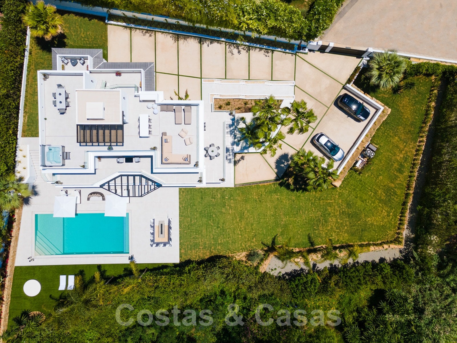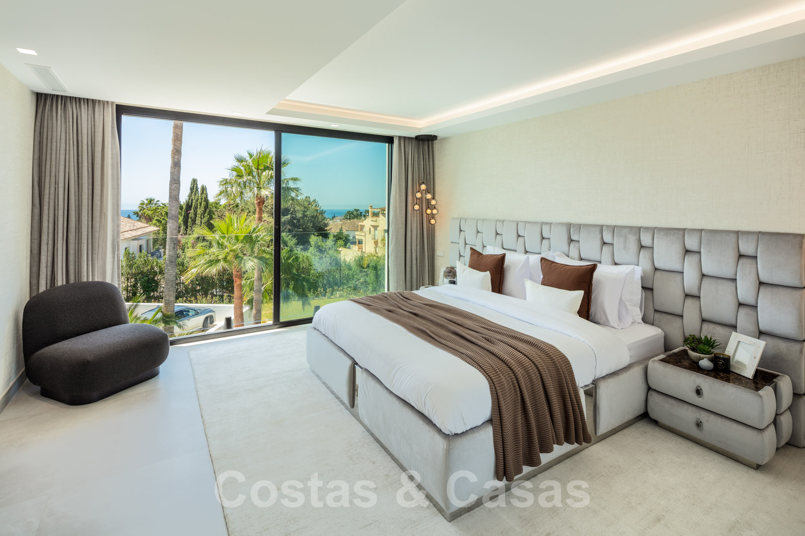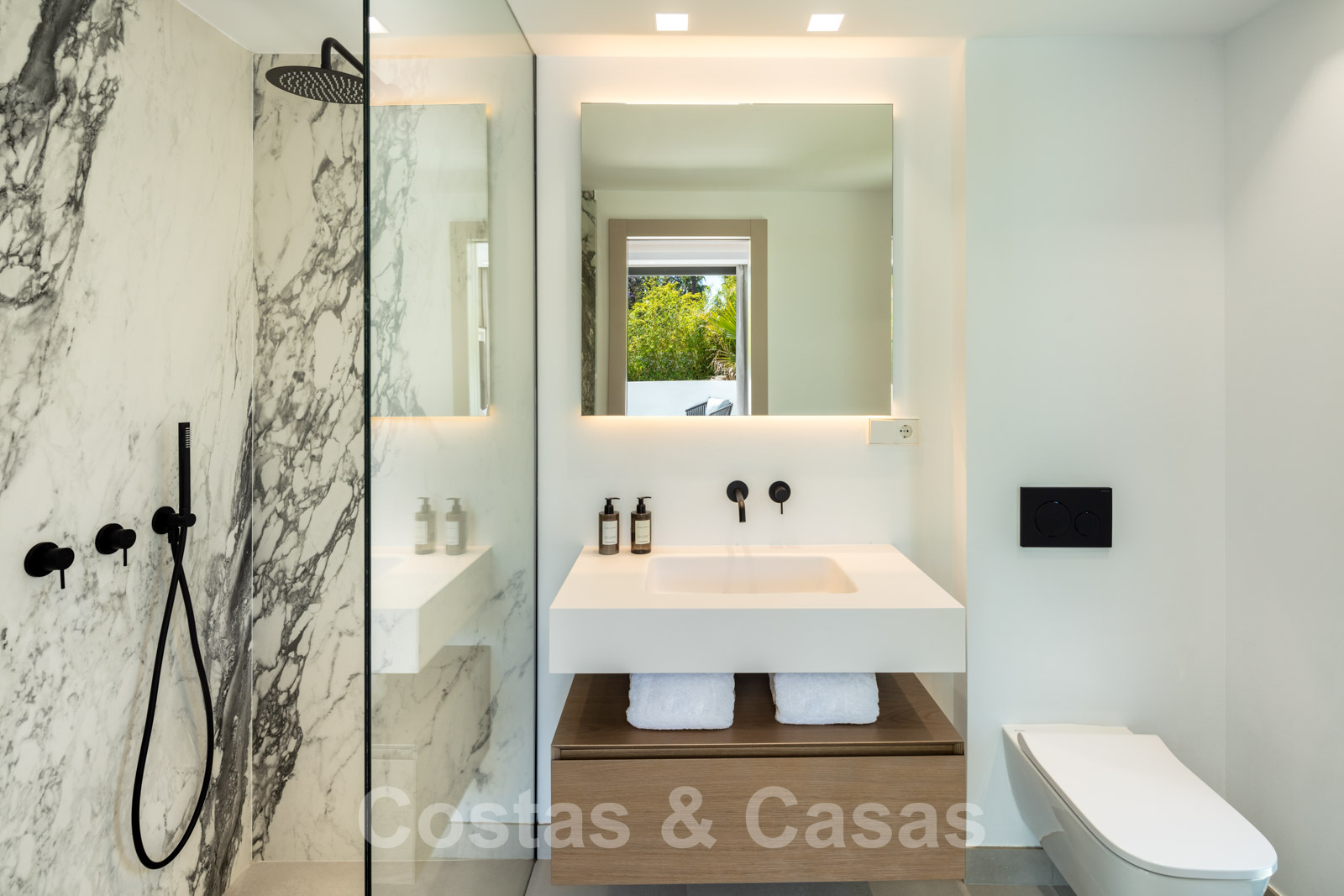 Vente d'une villa architecturale contemporaine, entièrement rénovée, avec vue sur la mer Méditerranée, dans le Golden Mile de Marbella