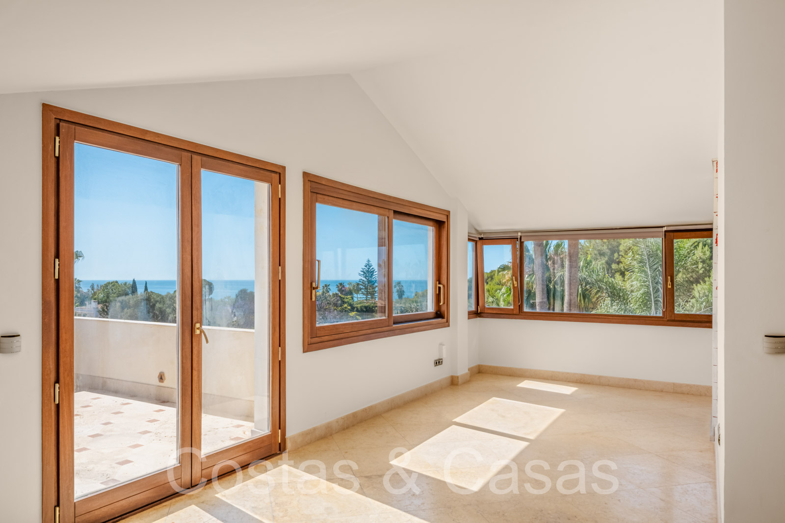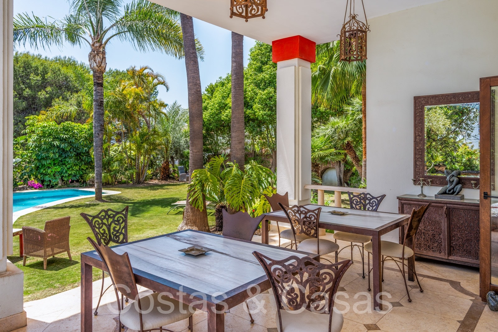 Située sur un terrain de coin clôturé avec beaucoup d'intimité. Jardin paysager mature avec de nombreuses plantations tropicales. Piscine privée entourée de pelouse. Une terrasse couverte attenante offre la possibilité de profiter de l'environnement relaxant. Du dernier étage, vous pourrez profiter d'une vue sur la mer Méditerranée.