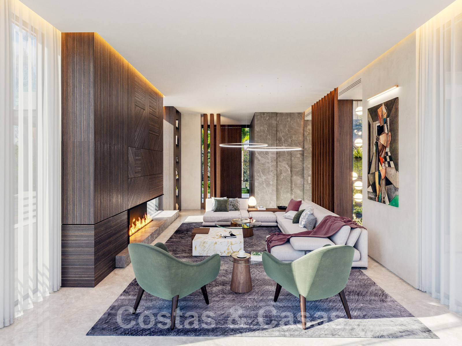 L’intérieur est élégant, avec des pièces de designers stylés combinées à des matériaux de construction naturels.