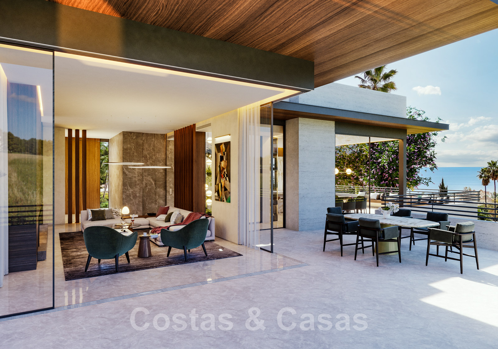 Spacieuse villa de luxe moderniste à vendre avec vue sur la mer, sur le Golden Mile de Marbella