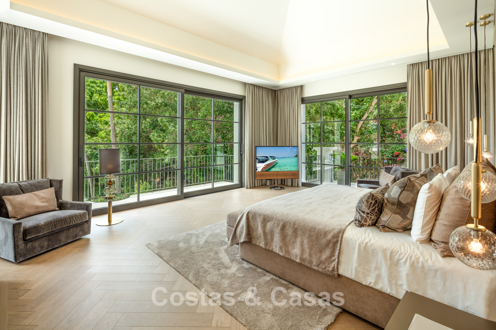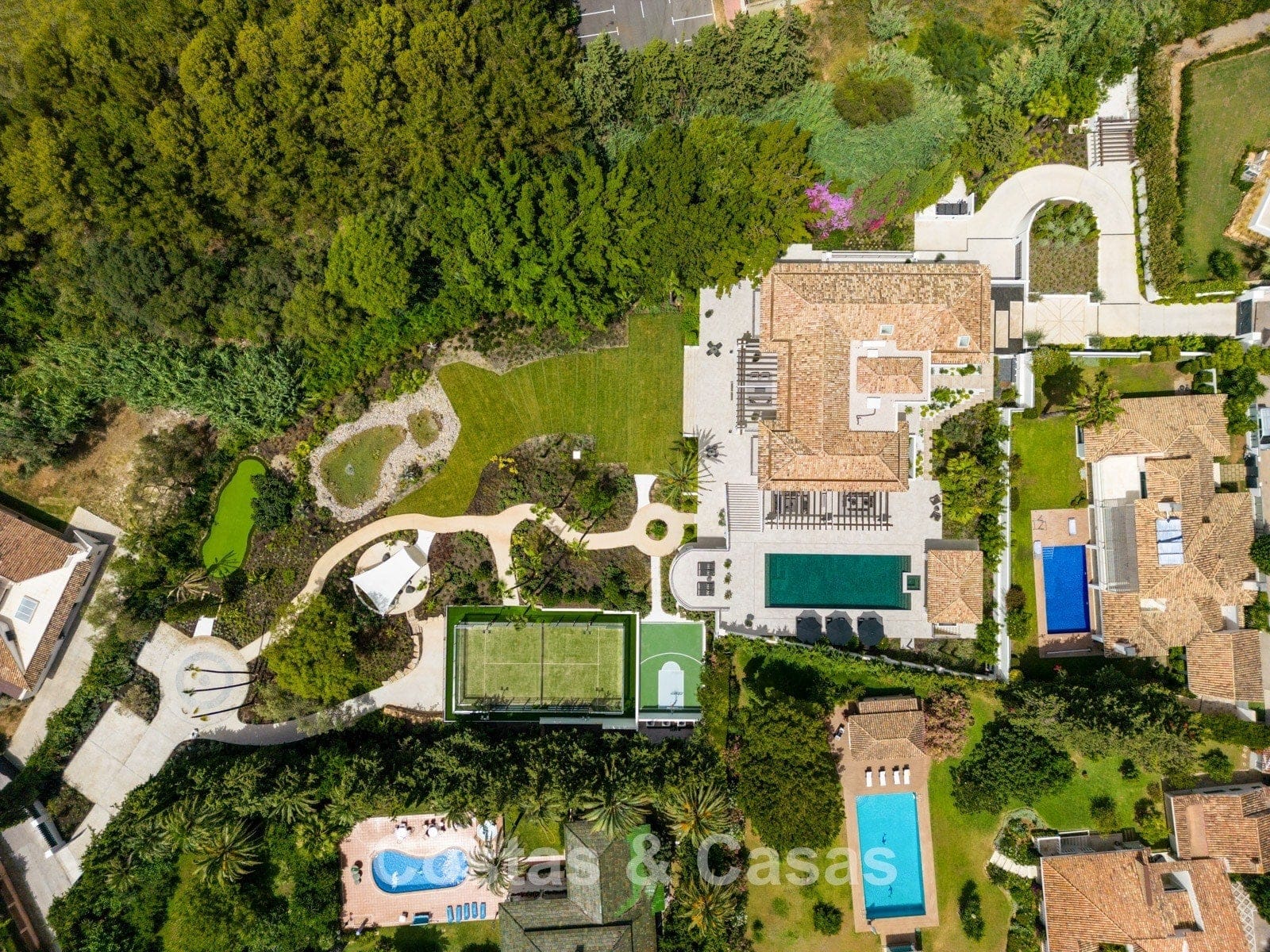 Terrain: 6.043m² Superficie totale construite: 1.490m² Superficie des terrasses: 811m² 8 chambres 8 salles de bains Toilettes invités: 2 2 étages