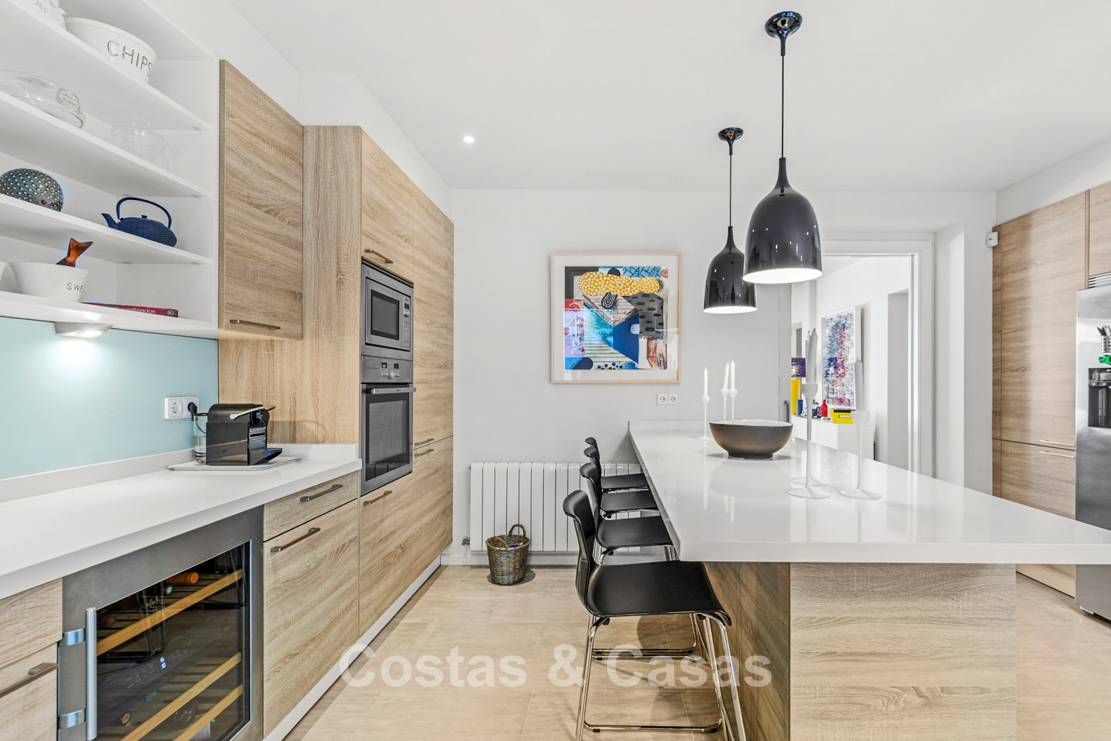 Cette villa unique est en parfait état après une rénovation soignée réalisée en 2023. L’architecture est un mélange raffiné de charme andalou traditionnel et de confort moderne. La propriété est répartie sur deux niveaux avec une disposition logique et spacieuse. Seuls des matériaux de haute qualité ont été utilisés, reflétant luxe et durabilité. L’intérieur est lumineux, élégant et dégage une atmosphère de sérénité. De grandes baies vitrées assurent une transition harmonieuse entre les espaces intérieurs et extérieurs. Le salon chaleureux constitue le cœur de la maison. La cuisine est entièrement équipée avec des appareils modernes et s’intègre parfaitement à la salle à manger. La propriété dispose de cinq chambres spacieuses, chacune avec sa salle de bains en suite, ainsi que une toilette. Les sols présentent une finition élégante qui renforce le style moderne. Un grand garage peut accueillir plusieurs véhicules, complété par trois places de stationnement sur la propriété.