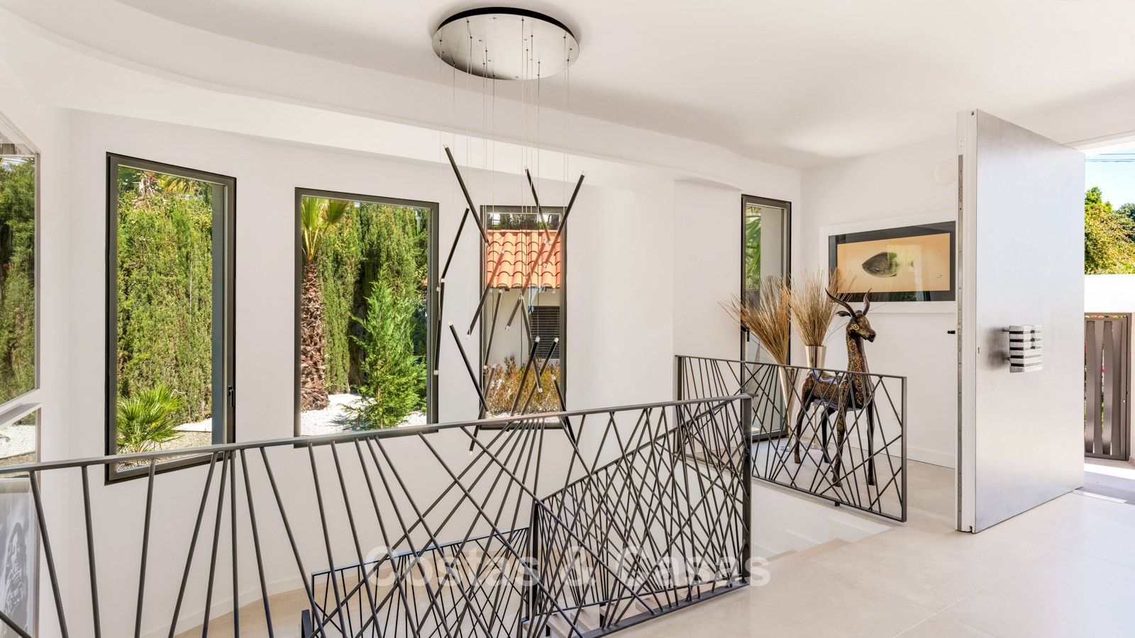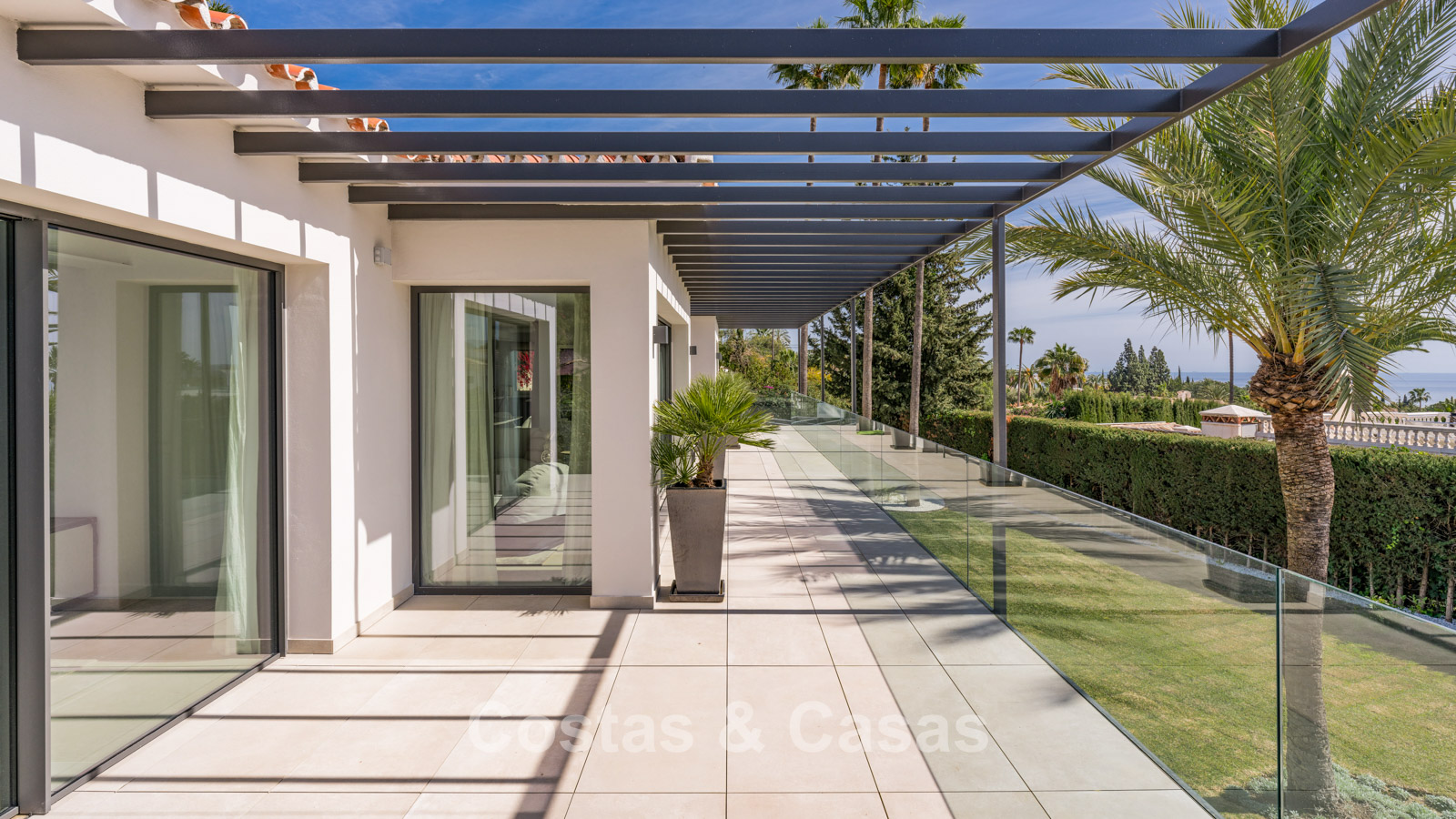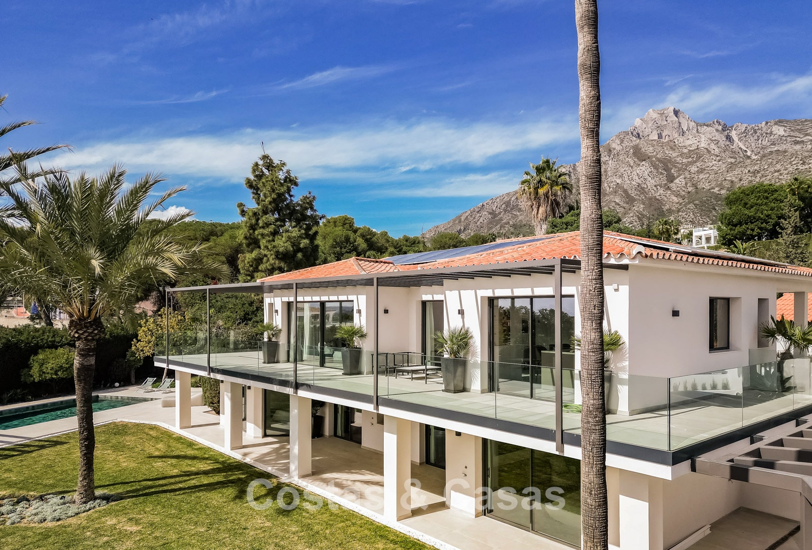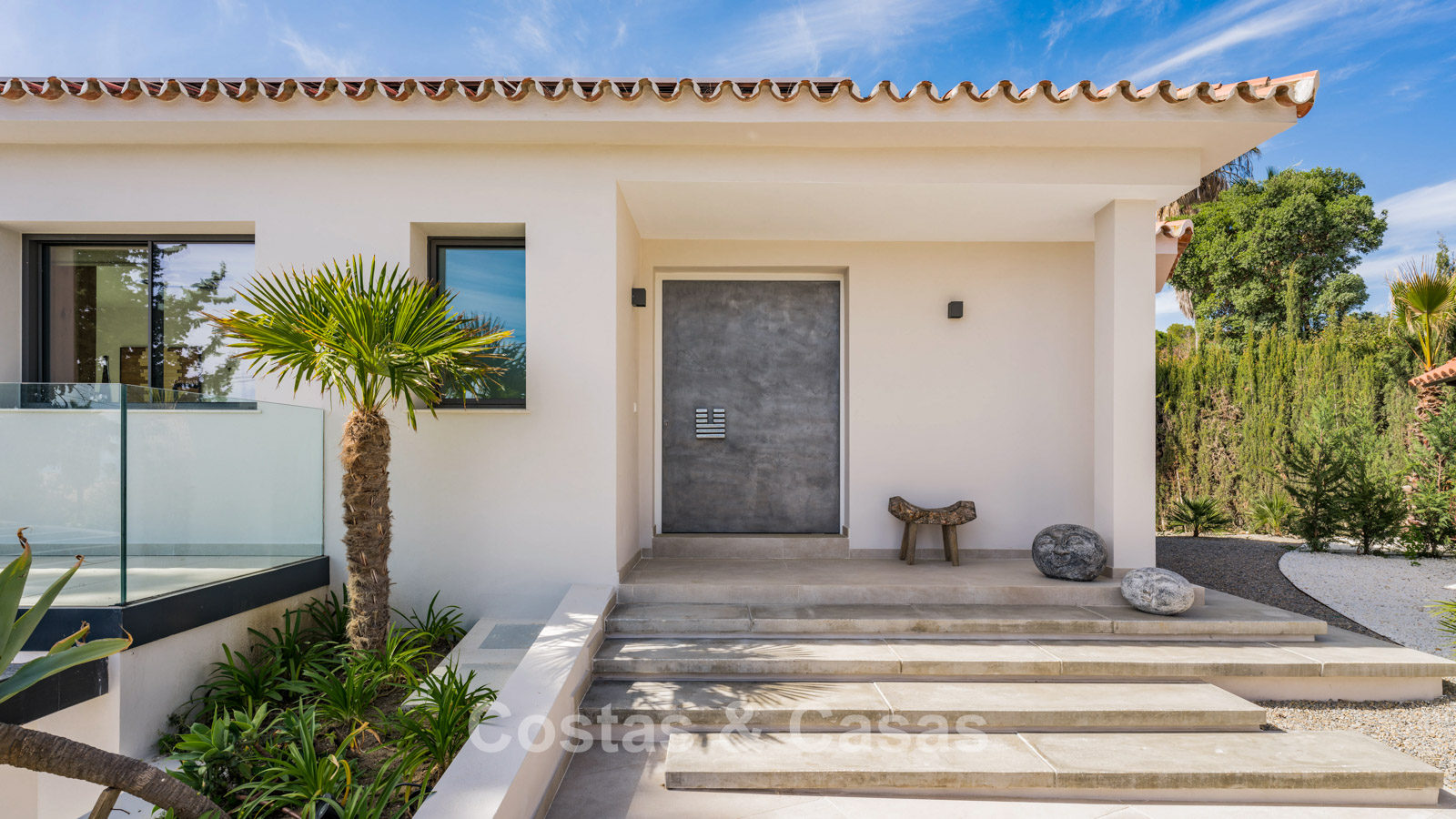Autres caractéristiques : Cheminée à l'éthanol. Double vitrage. Armoires encastrées sur mesure. Balustrades en verre autour de la terrasse. Panneaux solaires. Système d'irrigation automatique.