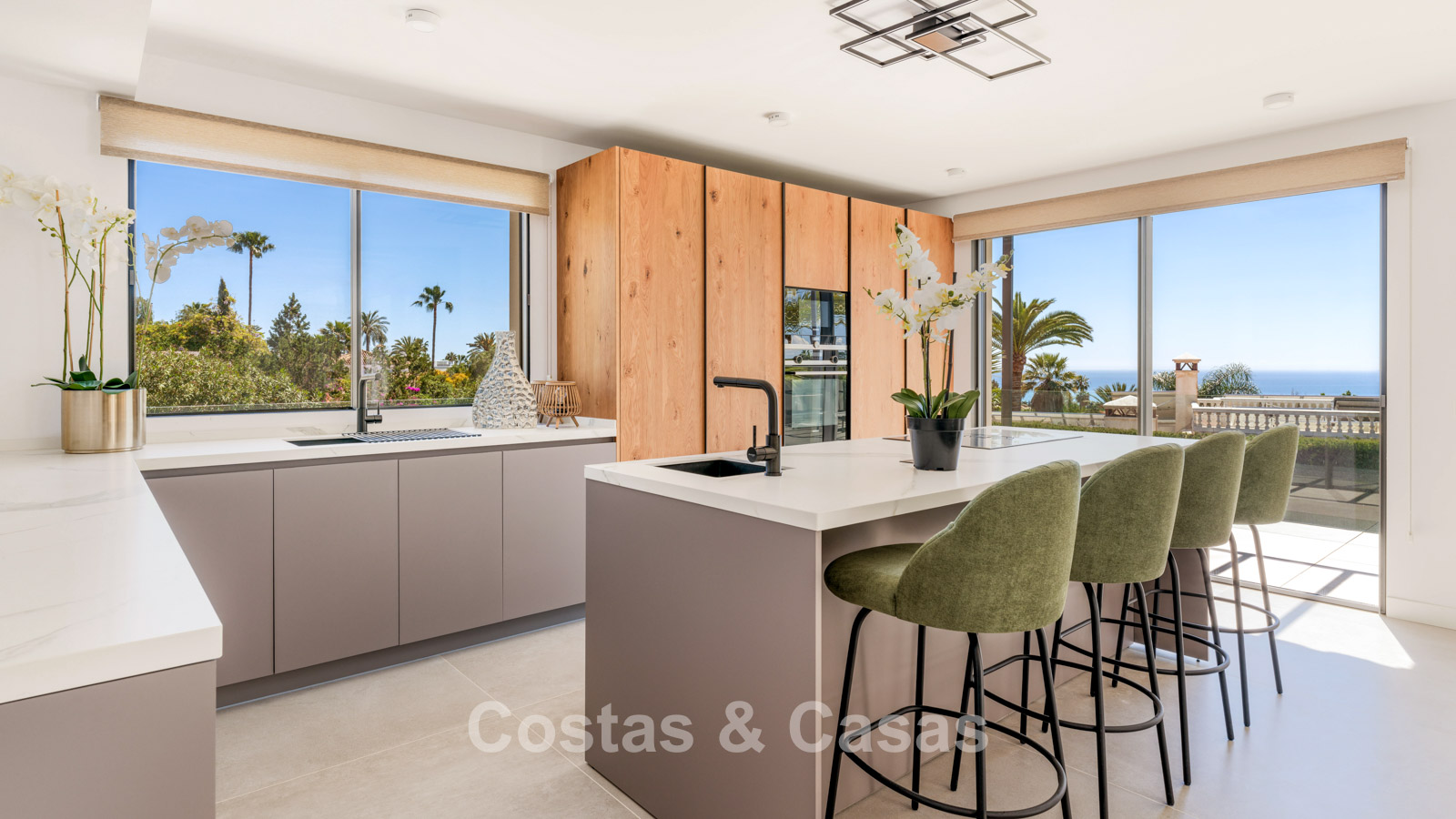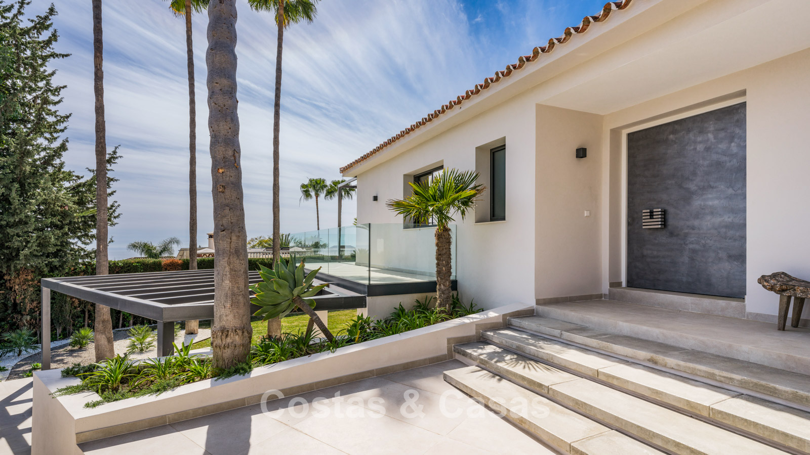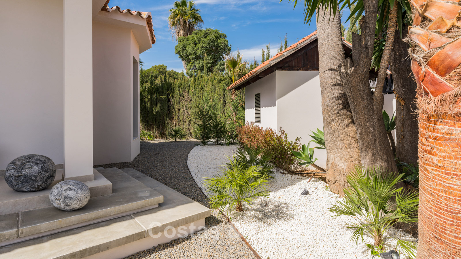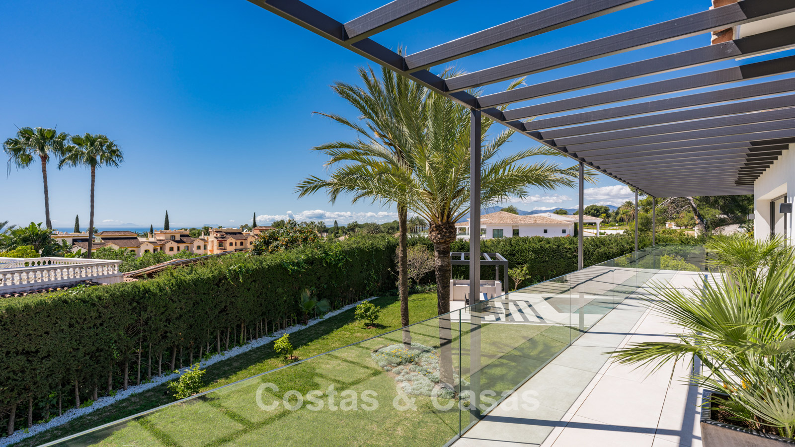 Autres caractéristiques : Cheminée à l'éthanol. Double vitrage. Armoires encastrées sur mesure. Balustrades en verre autour de la terrasse. Panneaux solaires. Système d'irrigation automatique.