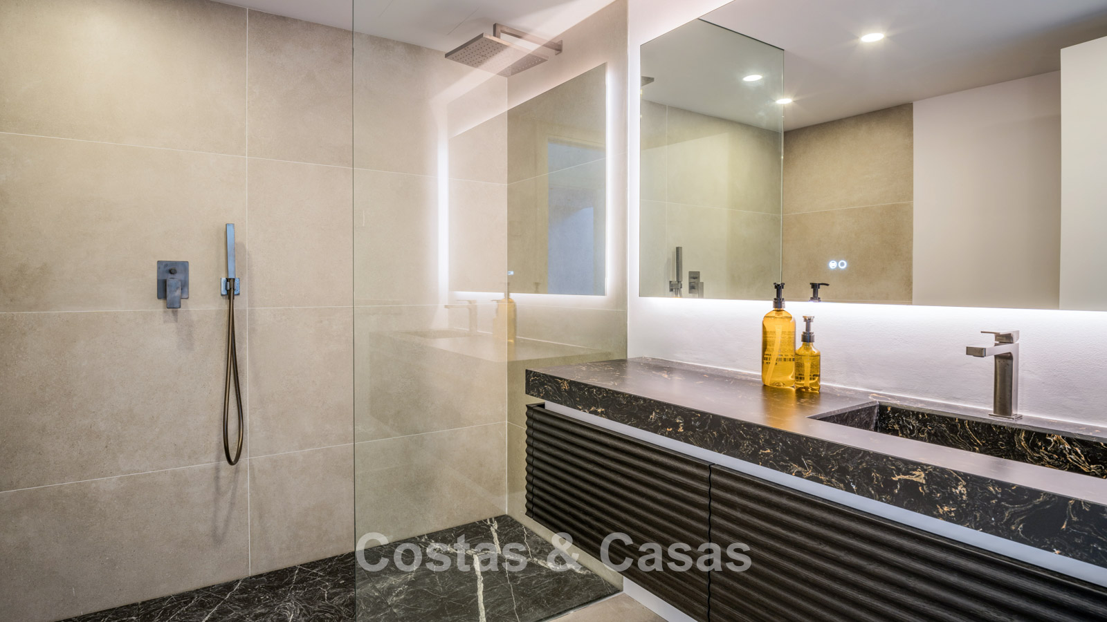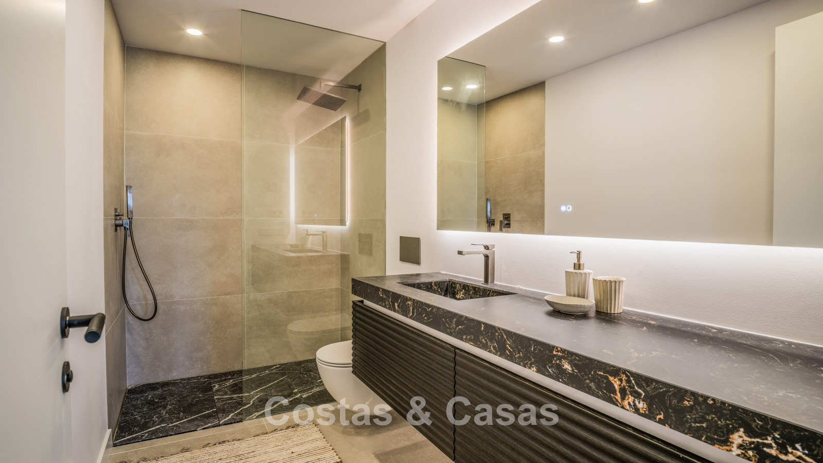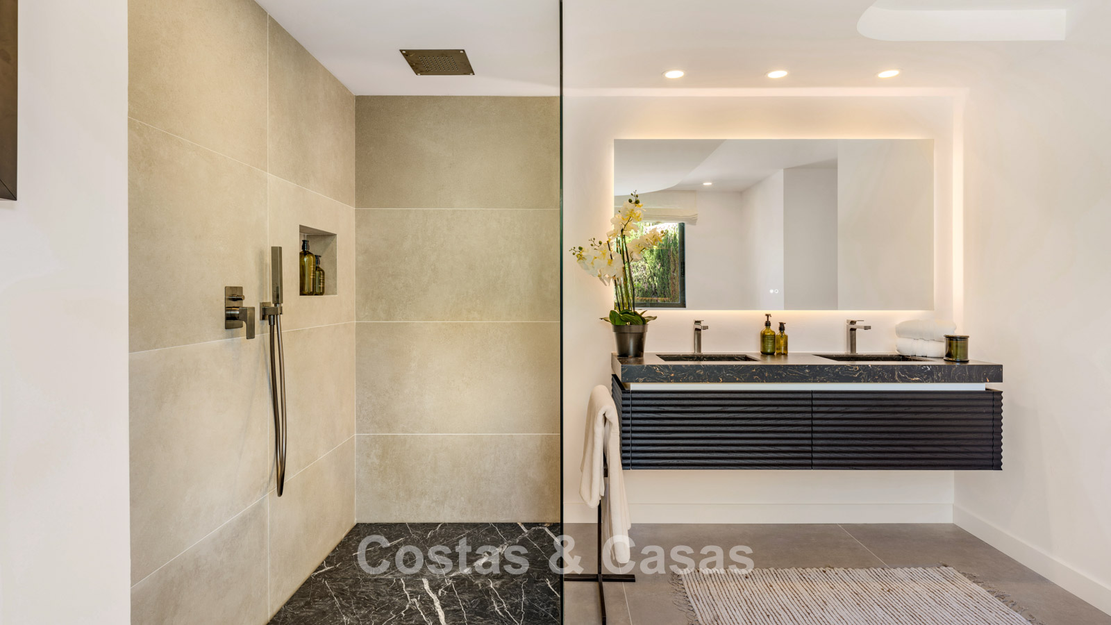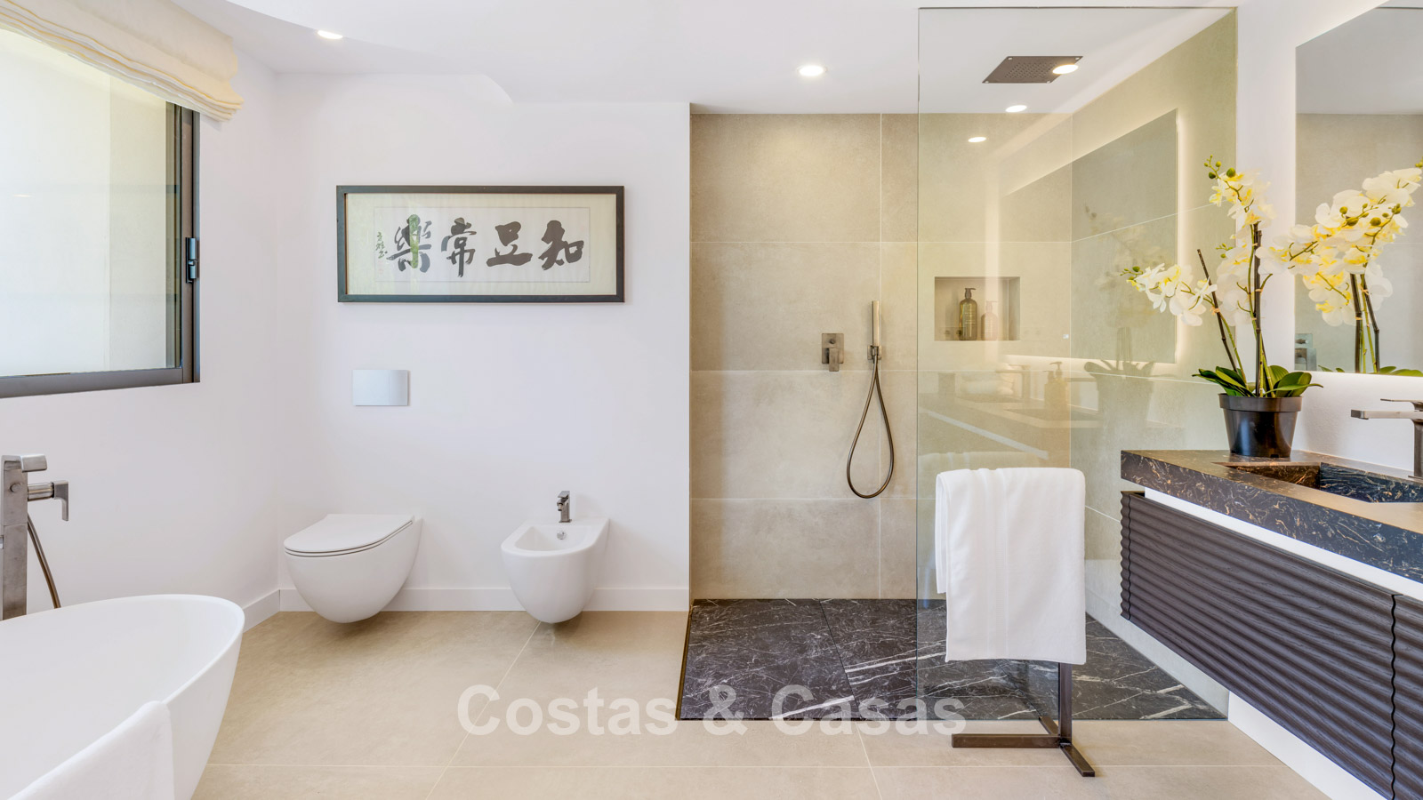 Autres caractéristiques : Cheminée à l'éthanol. Double vitrage. Armoires encastrées sur mesure. Balustrades en verre autour de la terrasse. Panneaux solaires. Système d'irrigation automatique.