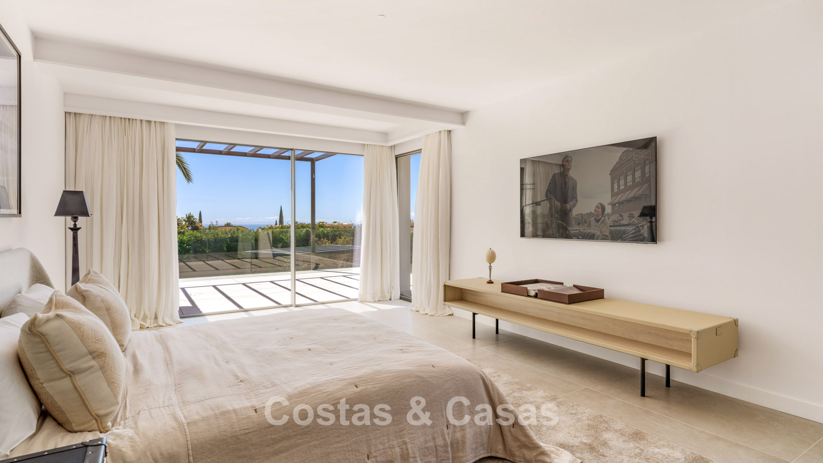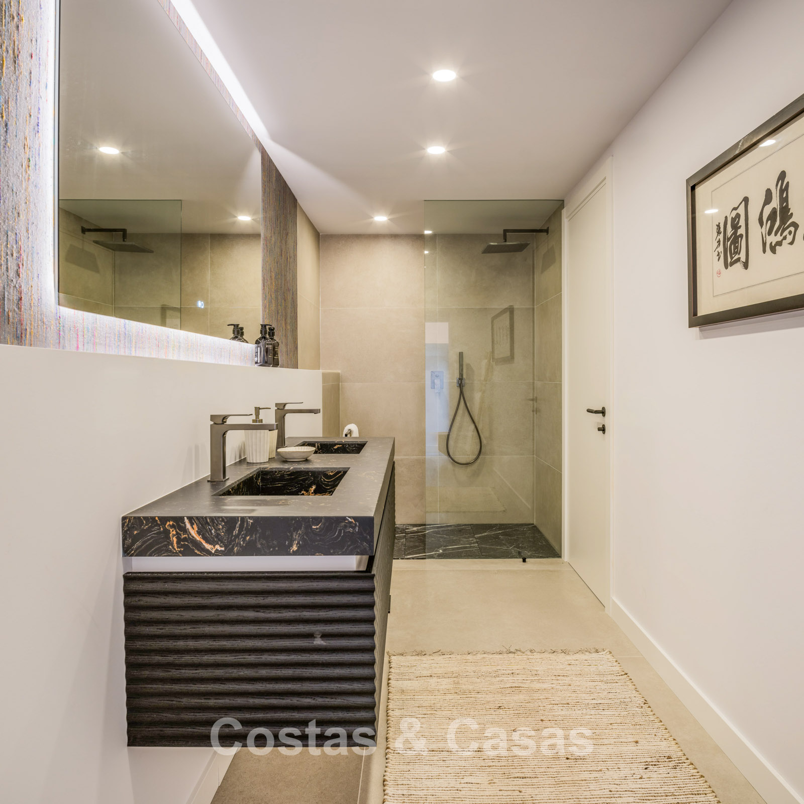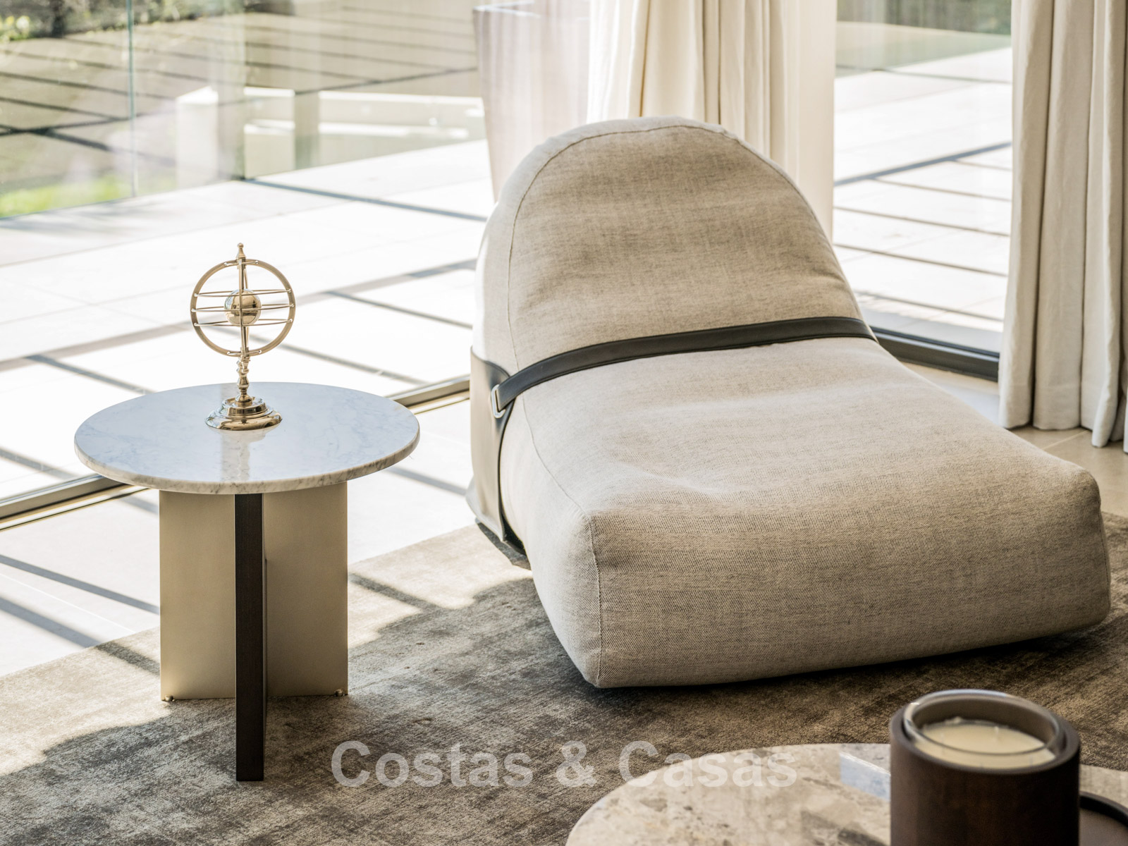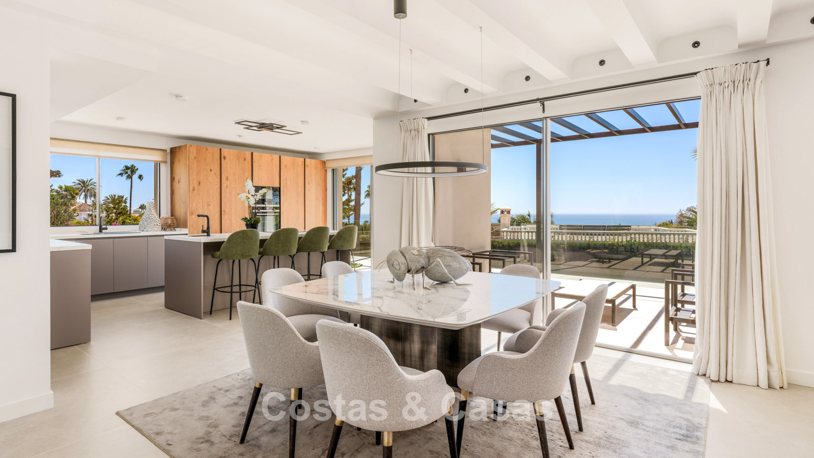 Autres caractéristiques : Cheminée à l'éthanol. Double vitrage. Armoires encastrées sur mesure. Balustrades en verre autour de la terrasse. Panneaux solaires. Système d'irrigation automatique.