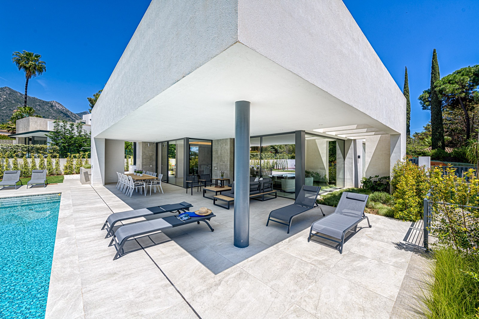 Villa de luxe moderniste à vendre avec vue sur la montagne et la mer sur le Golden Mile à Marbella