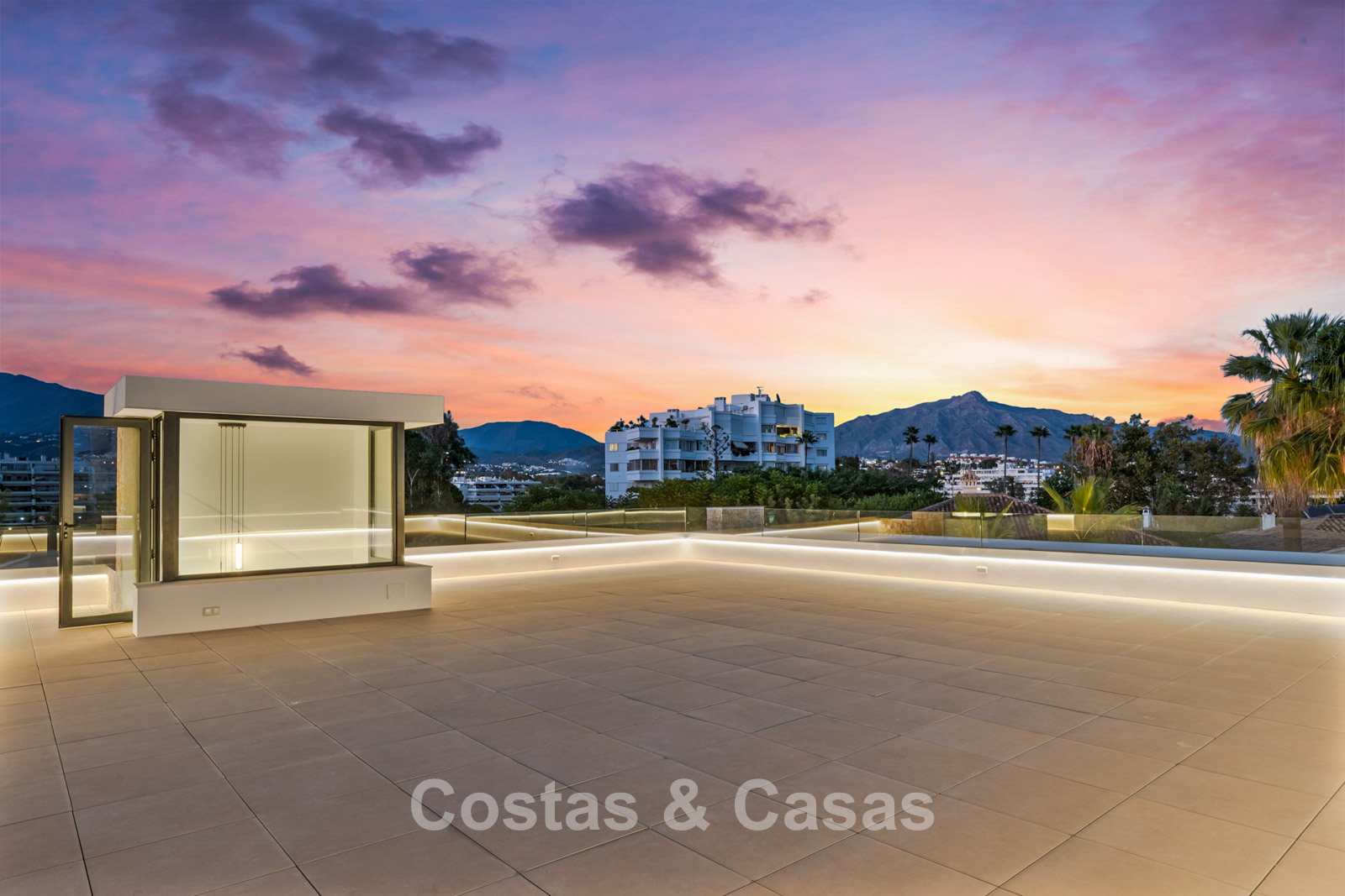 Grande terrasse sur le toit avec vue partielle sur la mer.