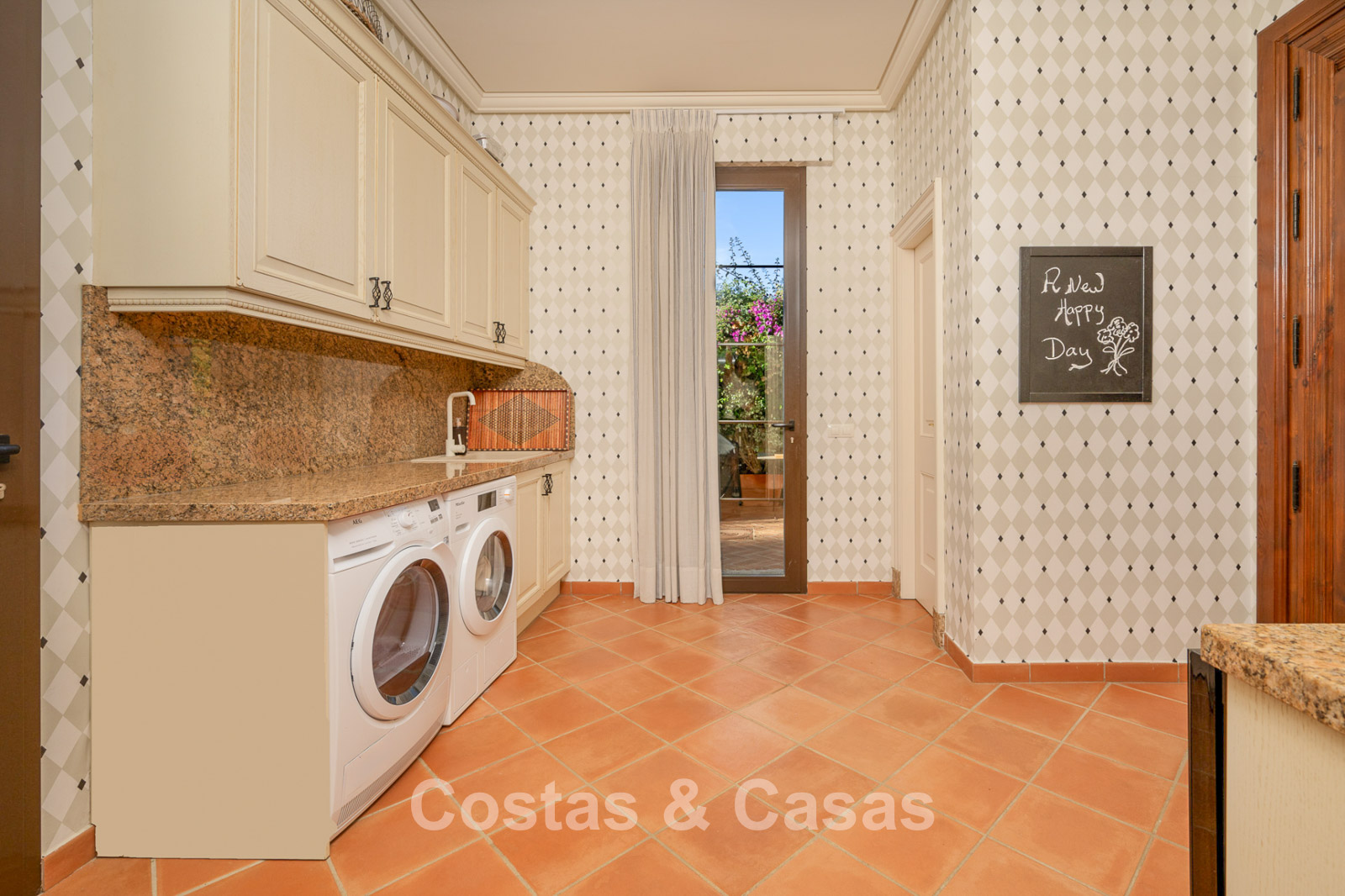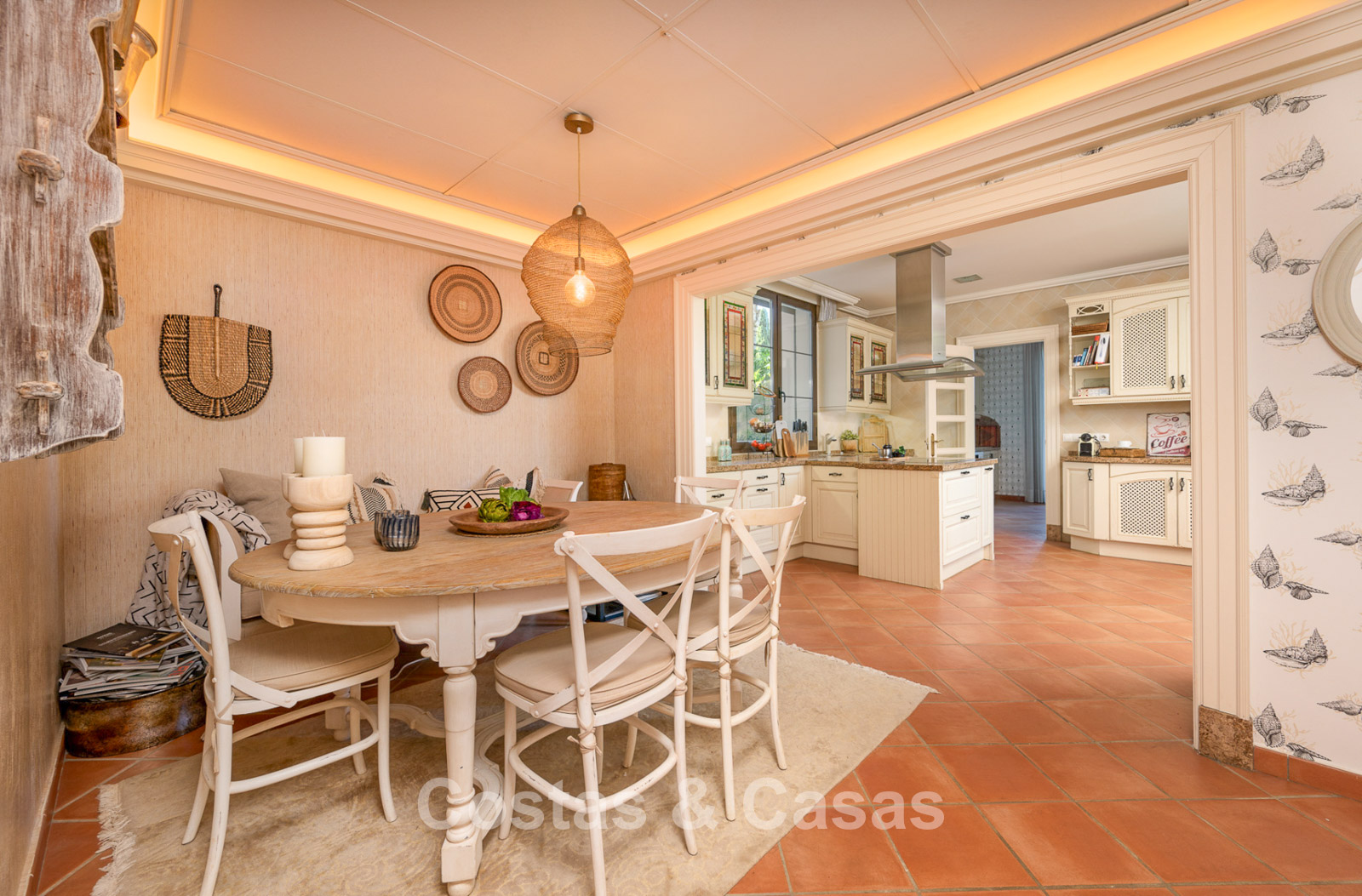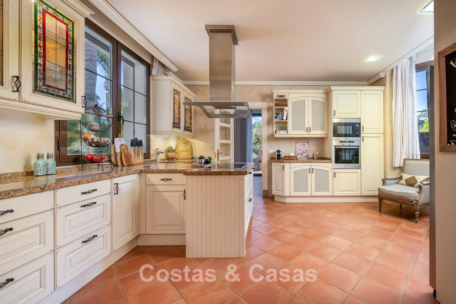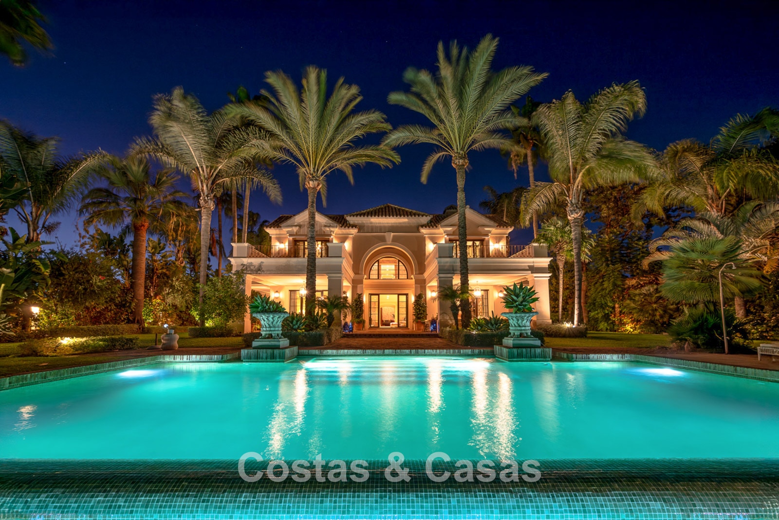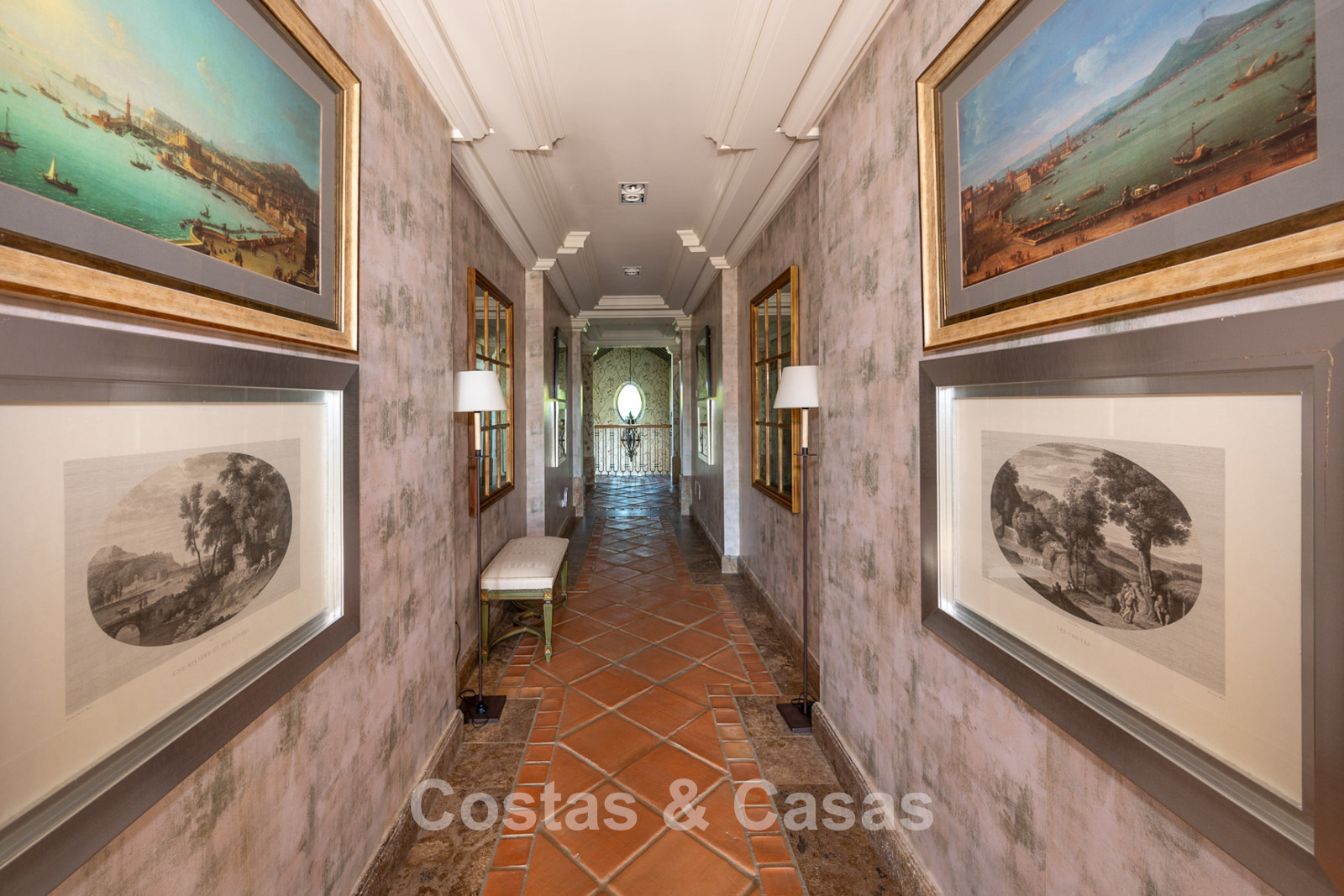 Magnifique maison au design classique d'inspiration américaine. Utiliser des matériaux luxueux. Le hall d'entrée avec plafond voûté à double hauteur est un mélange d'éléments classiques et rustiques et offre un élégant escalier à l'étage. Les murs sont décorés d'un motif subtil et artistique qui ajoute une touche de caractère à n'importe quelle pièce. Plusieurs coins salons. Cuisine entièrement équipée avec coin repas. Une salle à manger séparée et formelle, idéale pour les occasions spéciales. 8 chambres spacieuses, chacune avec sa propre salle de bain. Une résidence pour le personnel ou les invités à l’étage inférieur. Des sols en terre cuite en pierre naturelle décorent l'intérieur de la plupart des pièces. Sols en marbre dans certaines chambres. Buanderie. Débarras. Local technique. Garage intérieur pour 4 voitures. Parking supplémentaire sur place pour 7 voitures.