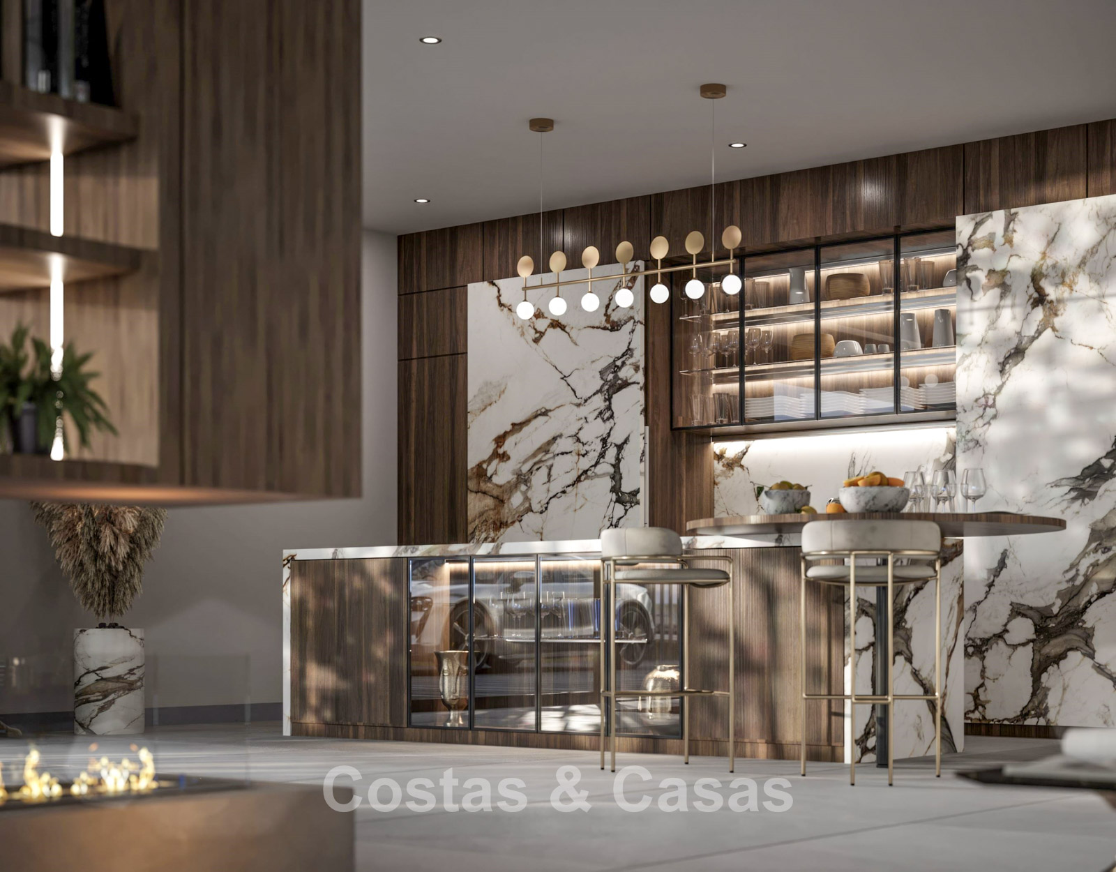 Villa contemporaine neuve au design épuré et à l’architecture moderne. Réalisée avec des matériaux haut de gamme et un grand souci du détail. L’intérieur a été soigneusement conçu pour offrir une parfaite continuité entre les espaces intérieurs et extérieurs. Le vaste salon bénéficie d’une luminosité exceptionnelle grâce aux baies vitrées toute hauteur, donnant un accès direct aux grandes terrasses et au jardin. Cuisine moderne haut de gamme équipée d’appareils Miele et d’un coin petit-déjeuner. Buanderie et arrière-cuisine attenantes. Cinq chambres, cinq salles de bains en suite et une toilette séparée. Espace de rangement.