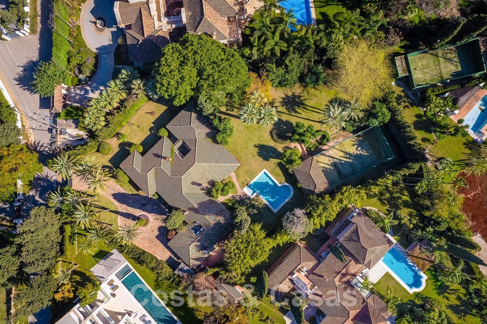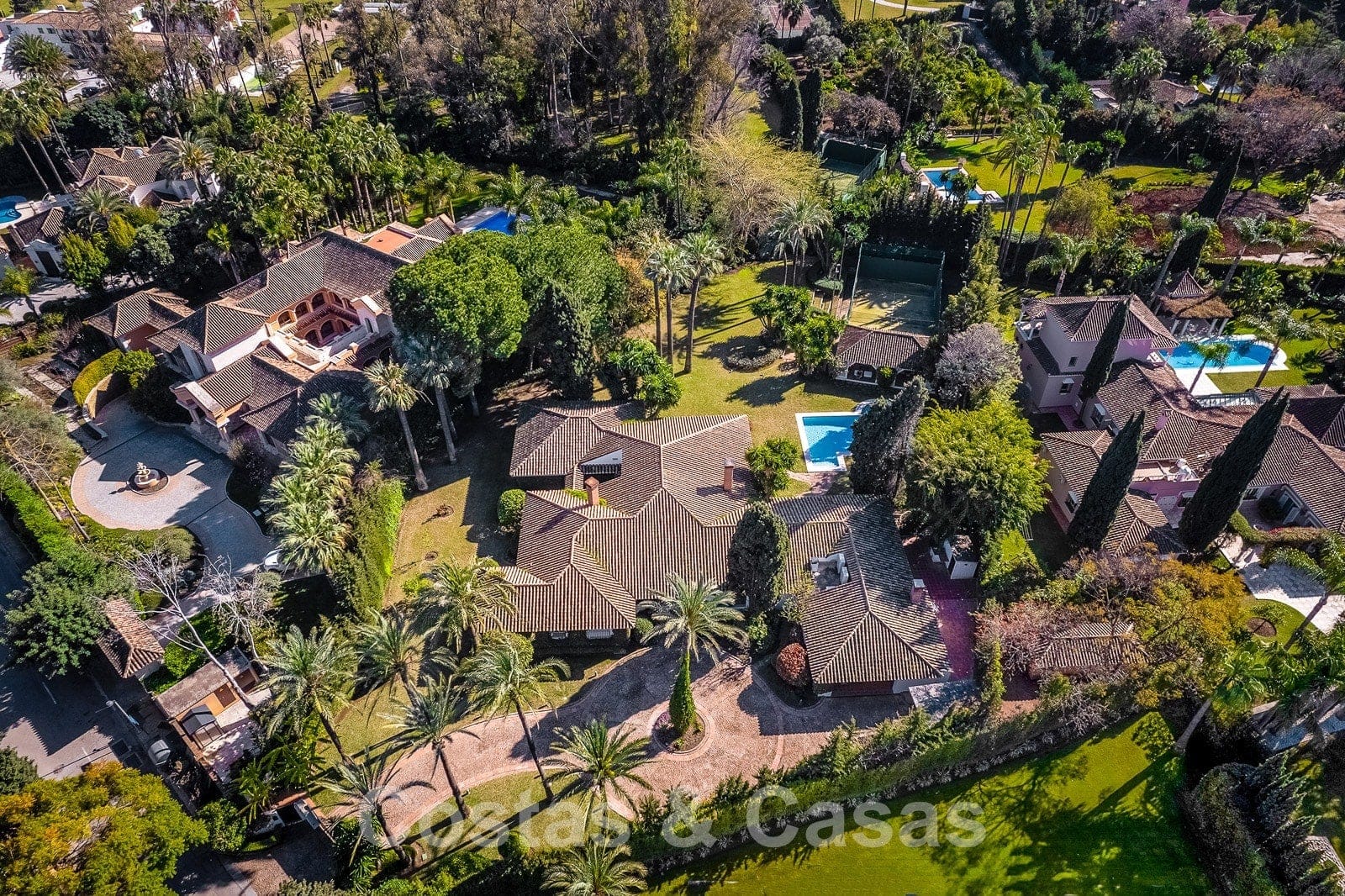 Taille du terrain: 4.200m² Surface bâtie: 950m² Surface intérieure: 700 m² Surface des terrasses: 250m² 6 chambres à coucher 6 salles de bains