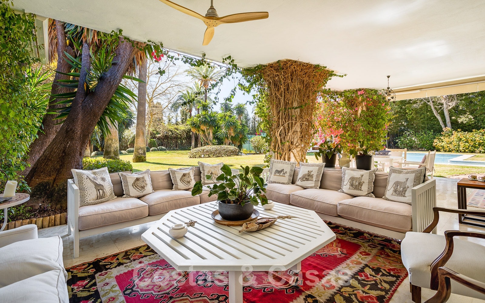Grandes terrasses couvertes avec suffisamment d'espace pour installer un salon d'extérieur.