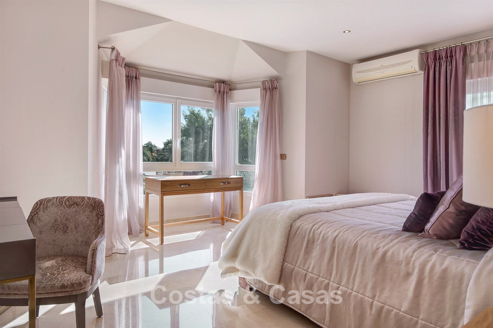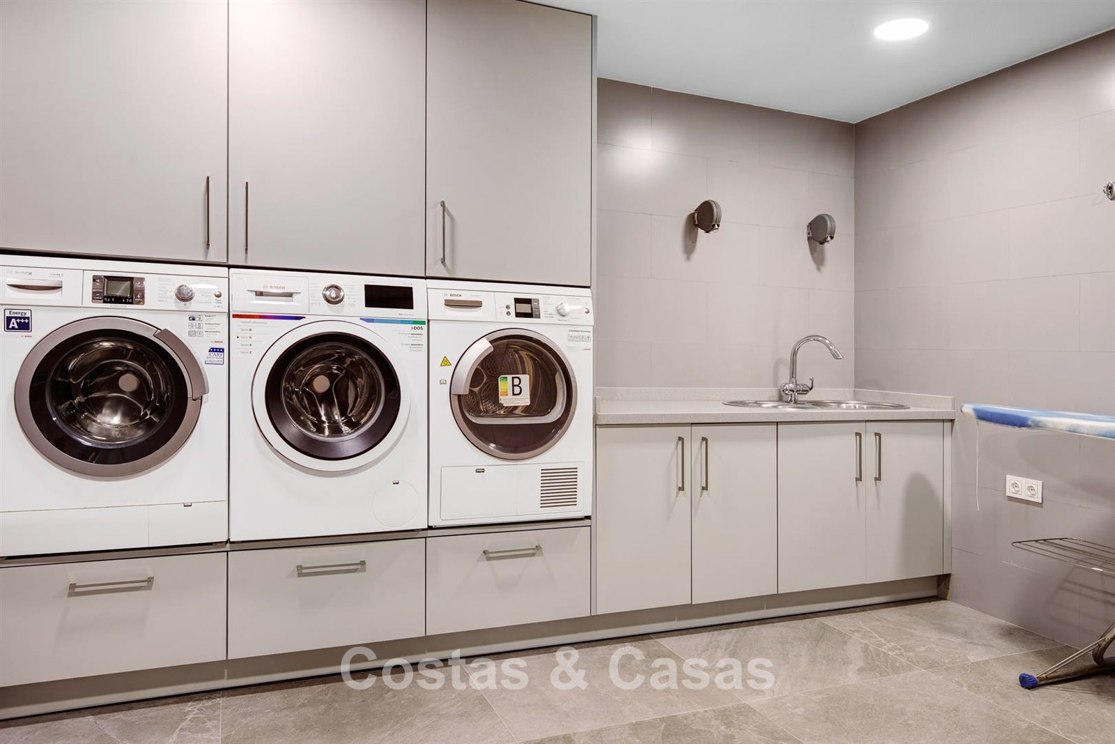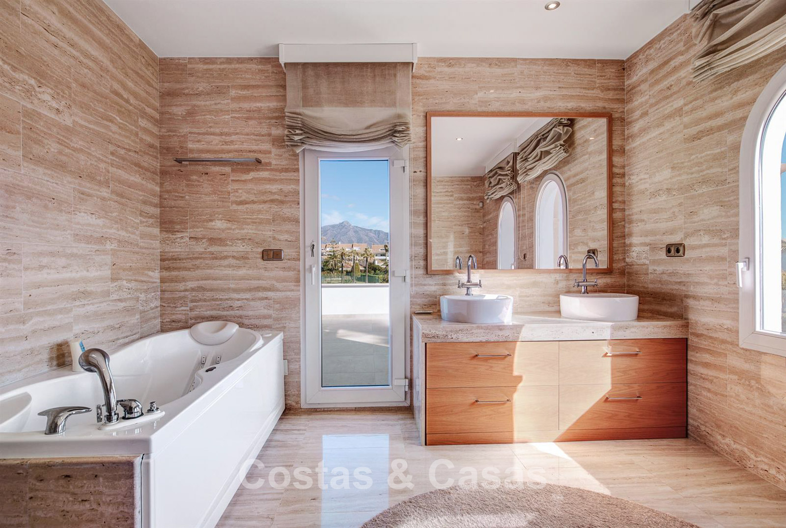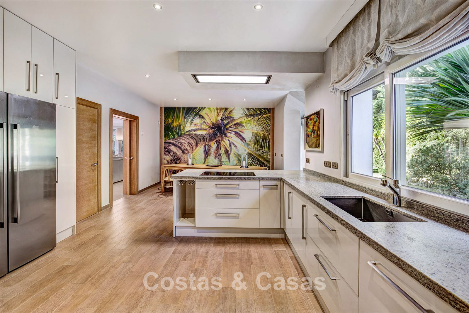 Villa individuelle, construite dans un style architectural espagnol traditionnel. Les matériaux et finitions utilisés sont de haute qualité. En entrant, vous accédez à un hall d’entrée à double hauteur qui s’ouvre sur un spacieux séjour. Grand séjour avec plusieurs coins salon. Les hautes fenêtres s’ouvrent sur l’extérieur et offrent une lumière naturelle abondante. Cuisine séparée, entièrement équipée avec des appareils électroménagers haut de gamme et une table à manger. 6 chambres, chacune avec sa propre salle de bain. Buanderie entièrement équipée avec appareils Bosch. Espace bureau. Deuxième salon TV à l’étage inférieur. Sols en marbre. Garage intégré pour deux voitures. Parking privé sur la propriété.
