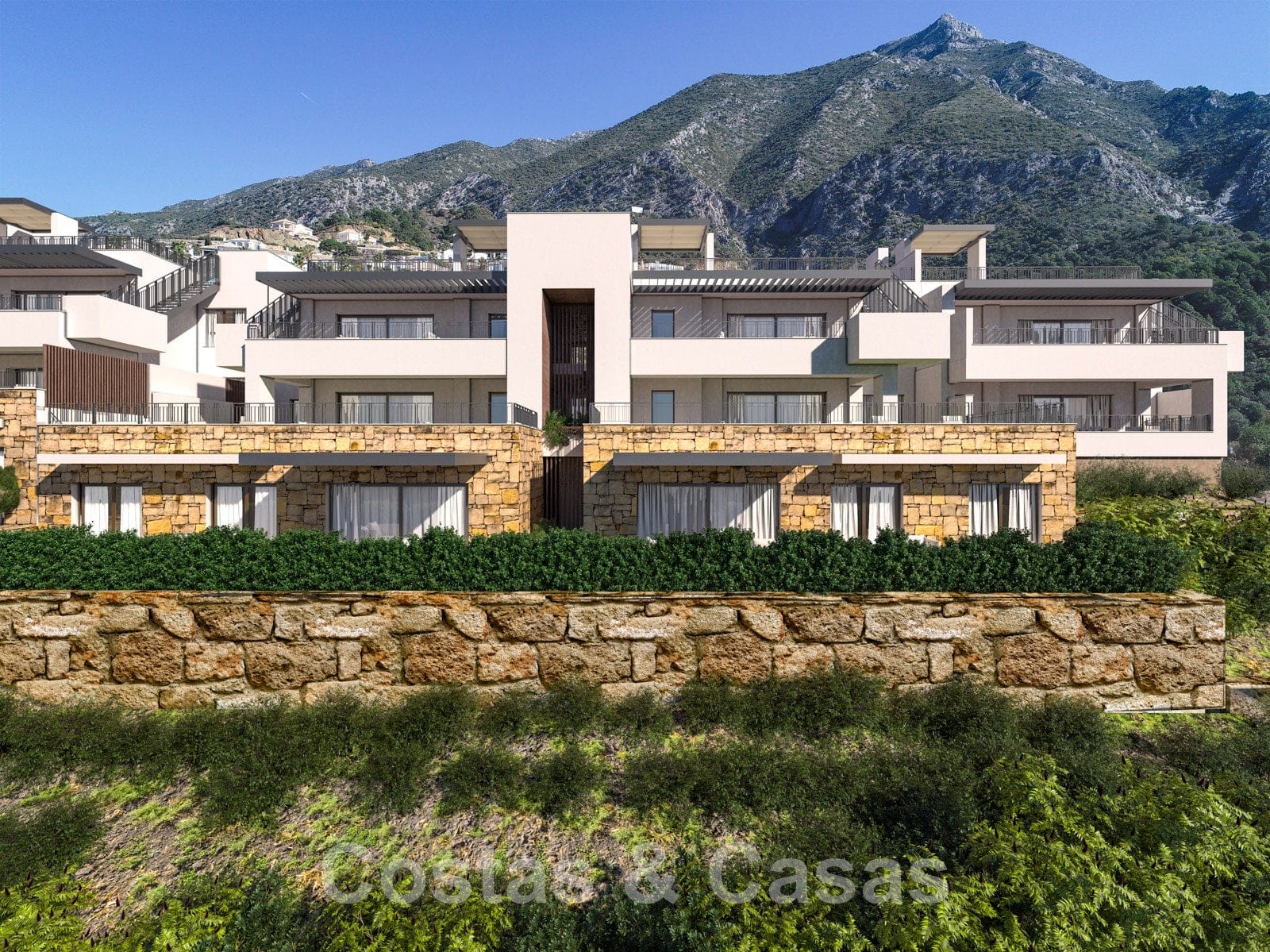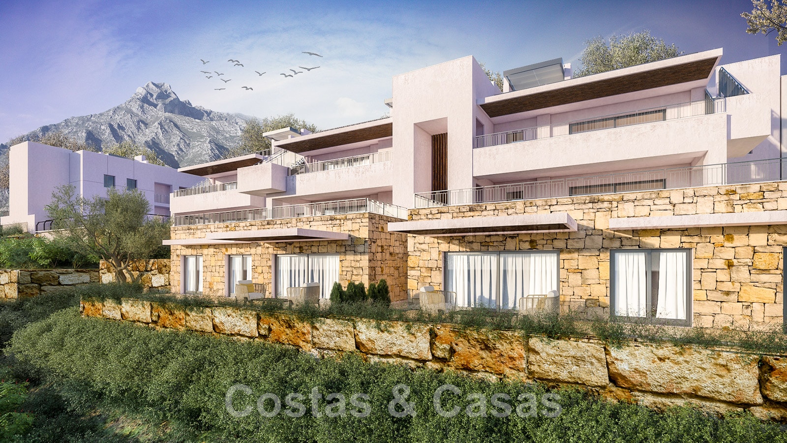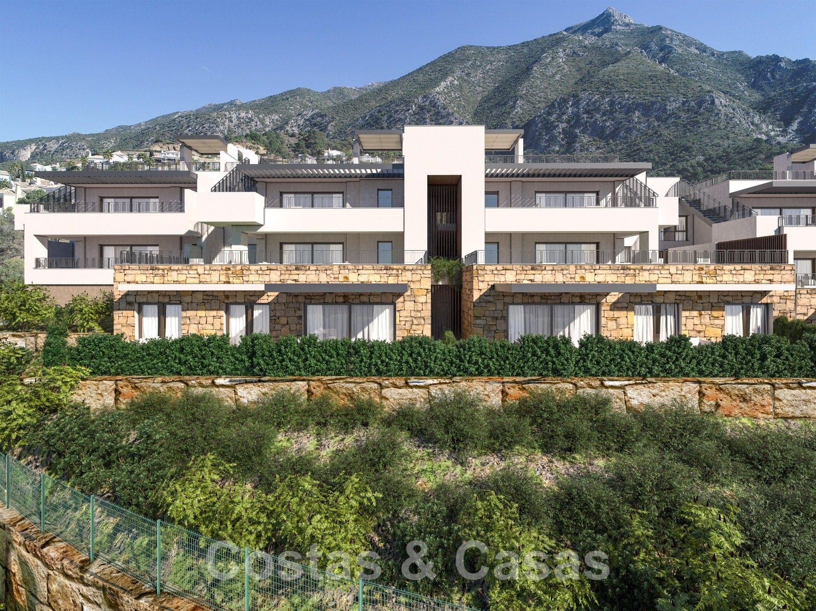 Projet de construction neuve. Vue panoramique sur le lac, les montagnes et la mer jusqu'à l'Afrique. Utilisation de matériaux de construction de haute qualité. Des accents rustiques qui s'intègrent parfaitement à l'environnement naturel. Design moderne et contemporain. Aménagement ouvert avec des terrasses spacieuses. Espace de vie ouvert avec salon et table à manger. Cuisine avec îlot de cuisson, équipée d'appareils de haute qualité. Chambres lumineuses. Appartements de 2 et 3 chambres avec 2 bains. Chaque unité dispose un parking intérieur avec possibilité de pré-installation de point de charge pour les voitures électriques.