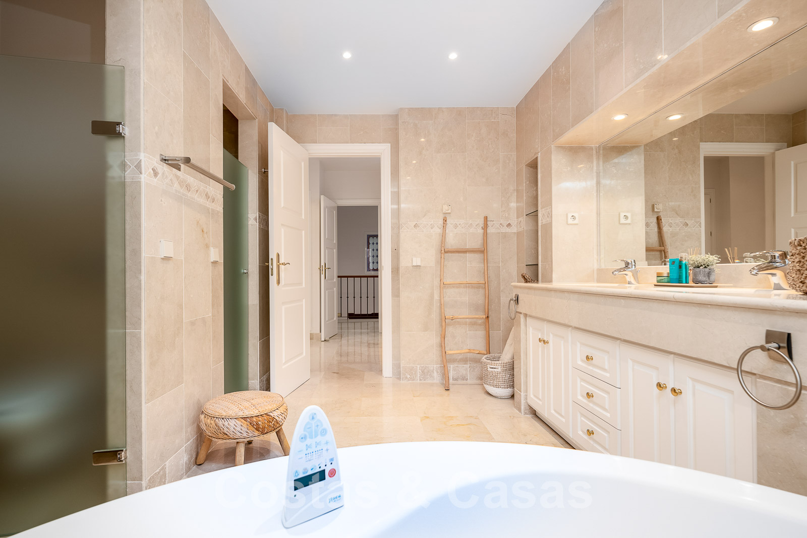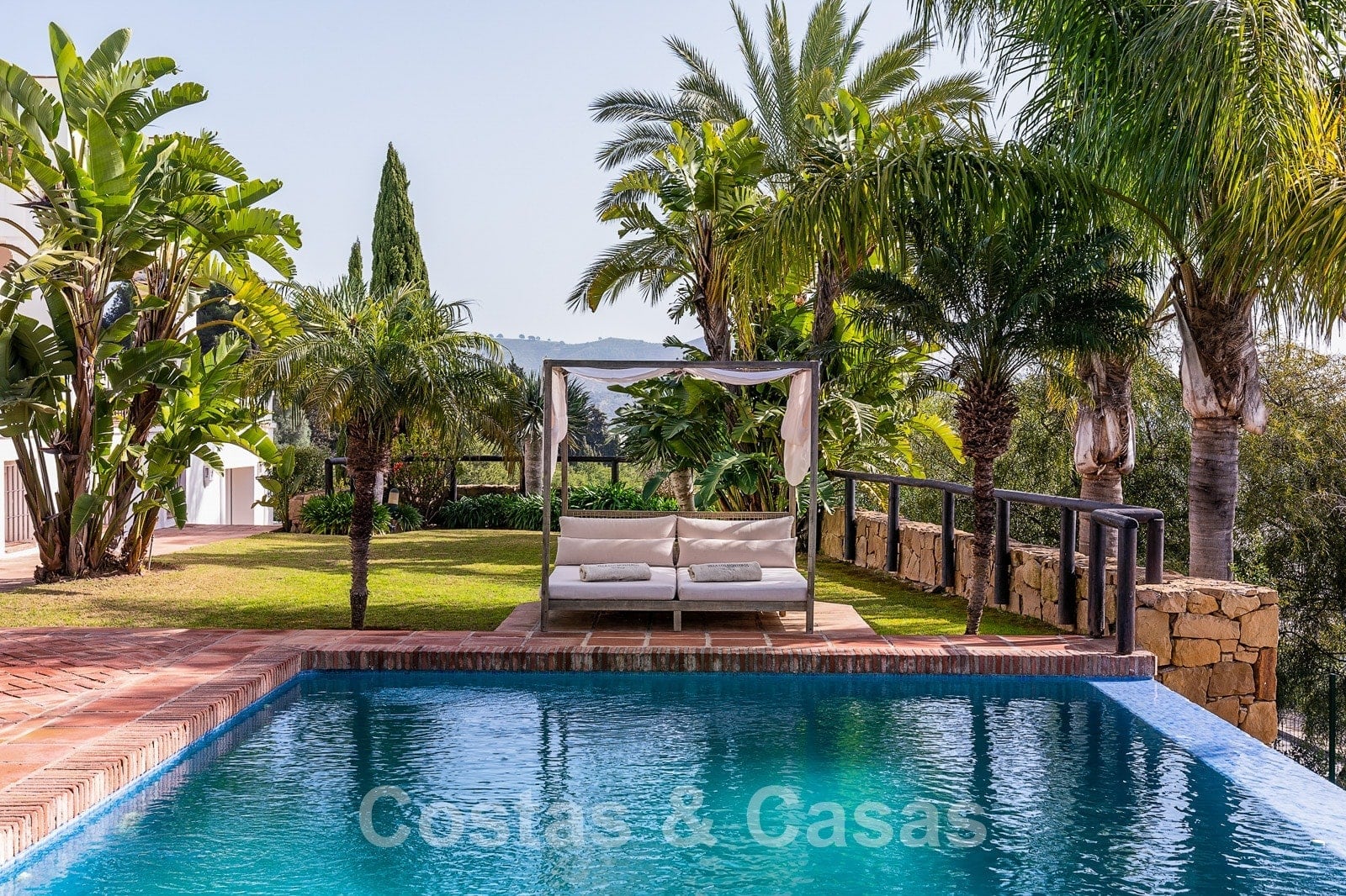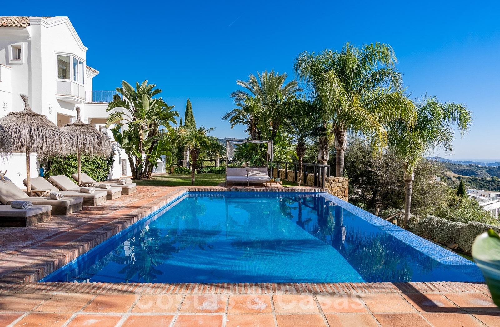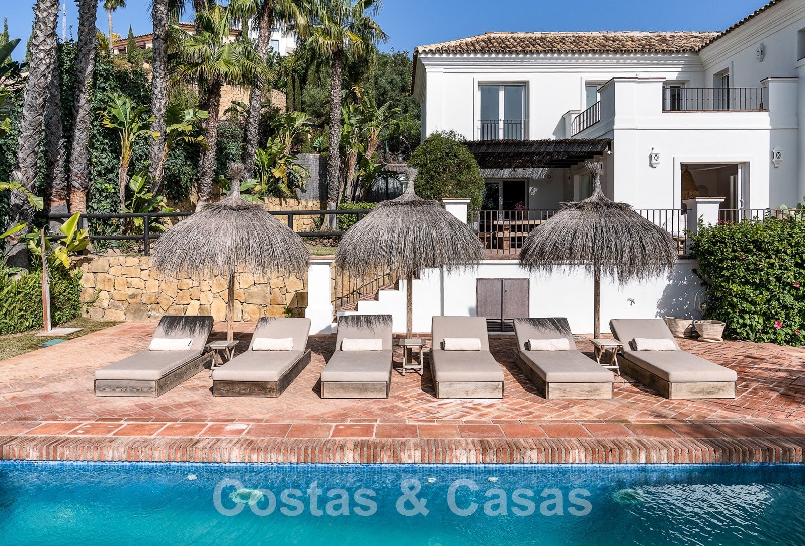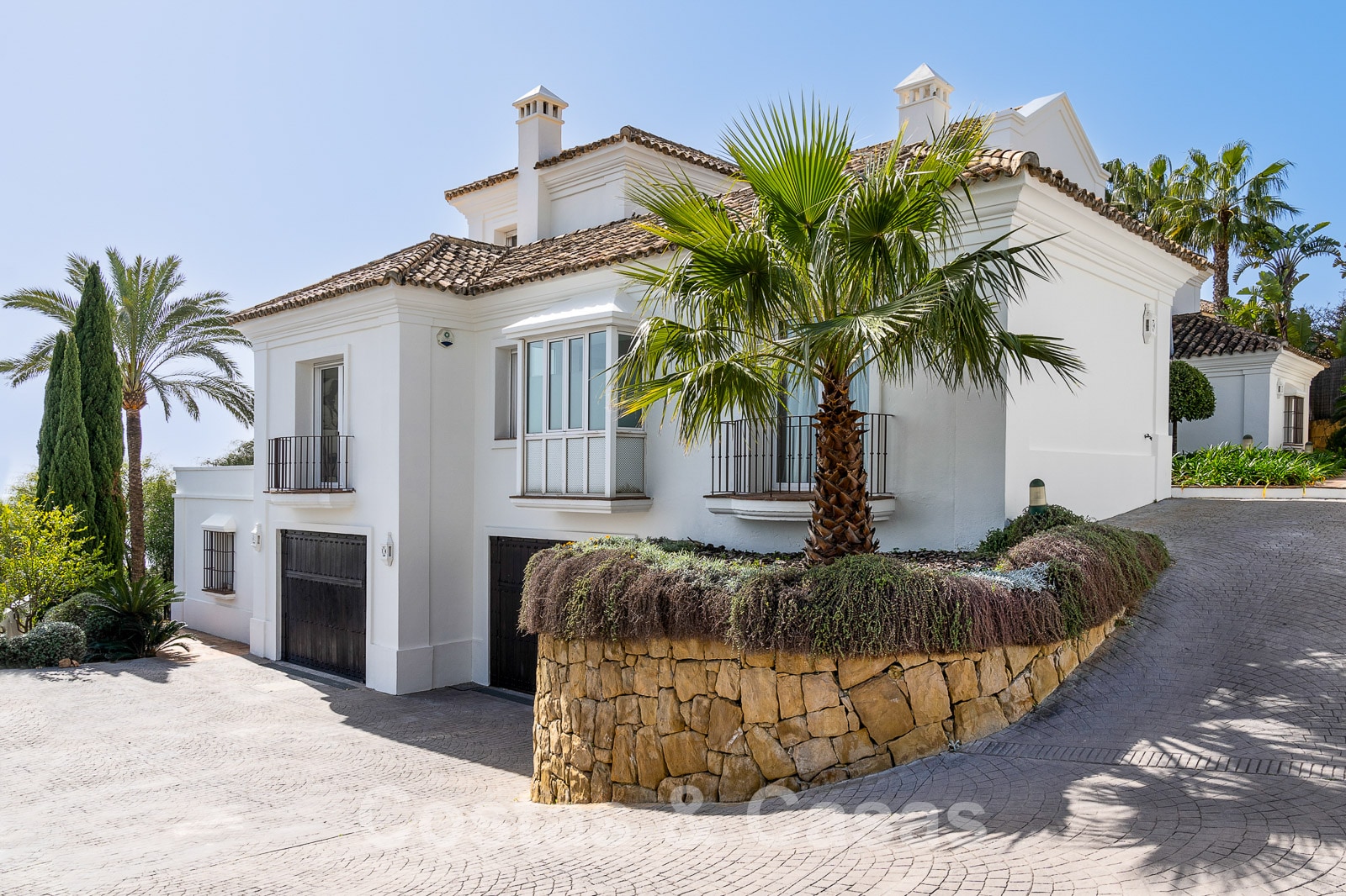 Villa andalouse de luxe à vendre dans un quartier résidentiel sécurisé, entouré de verdure, à quelques minutes en voiture de la plage et du centre de Marbella