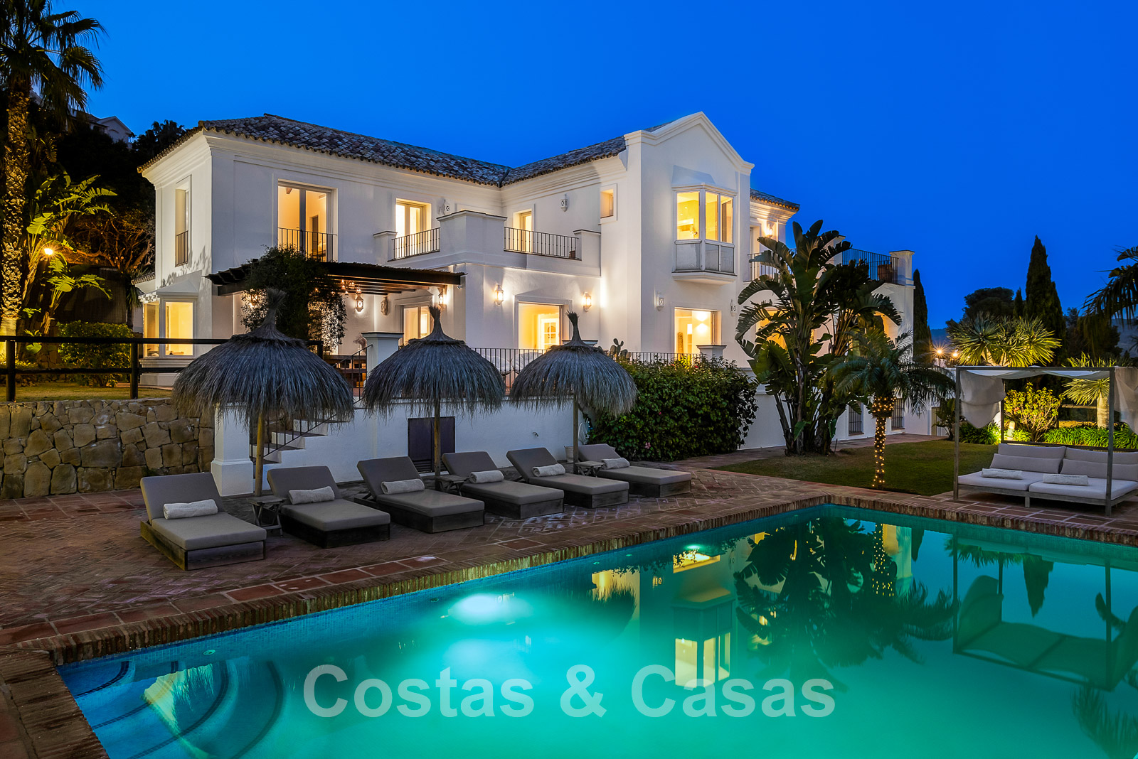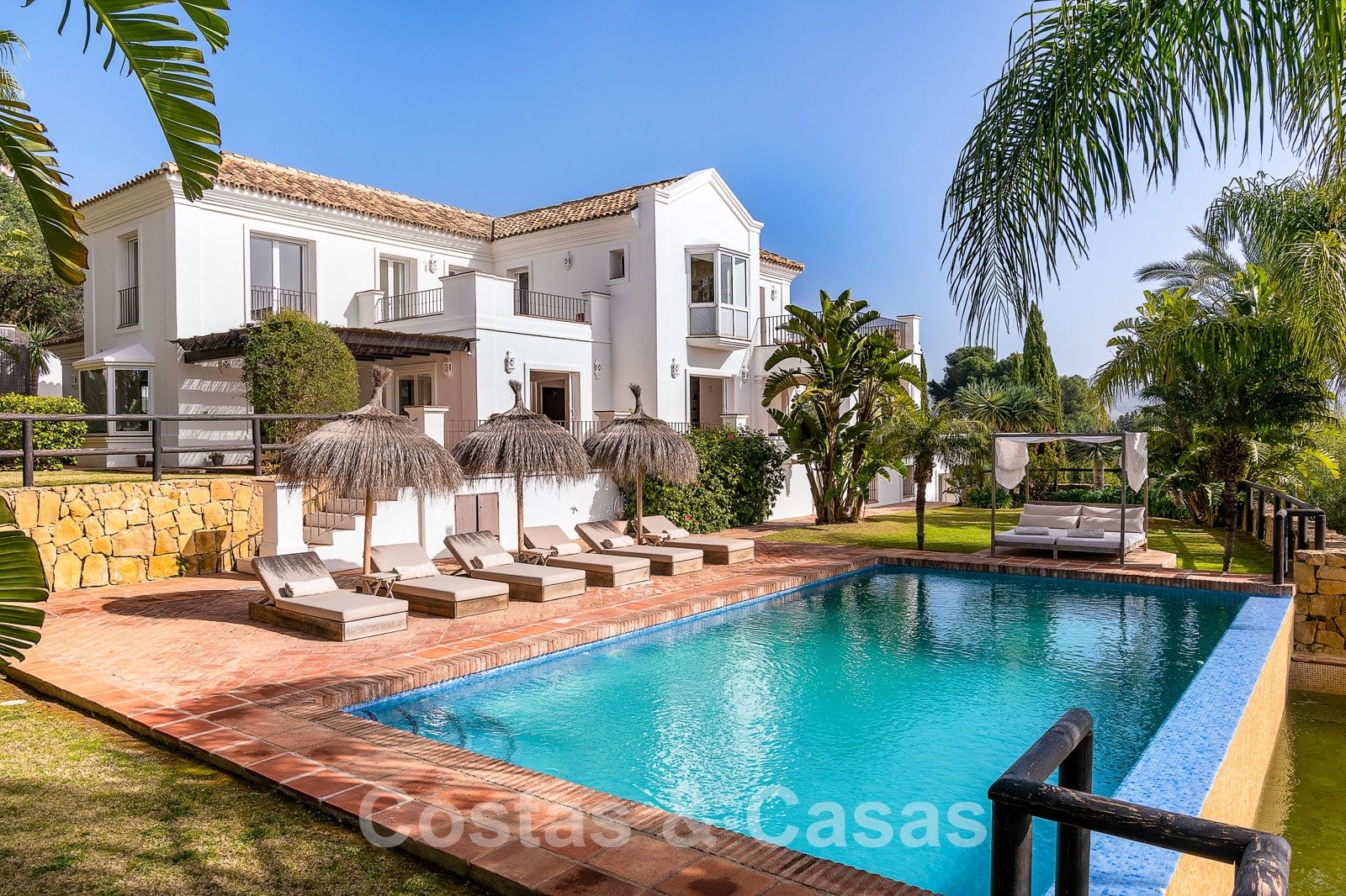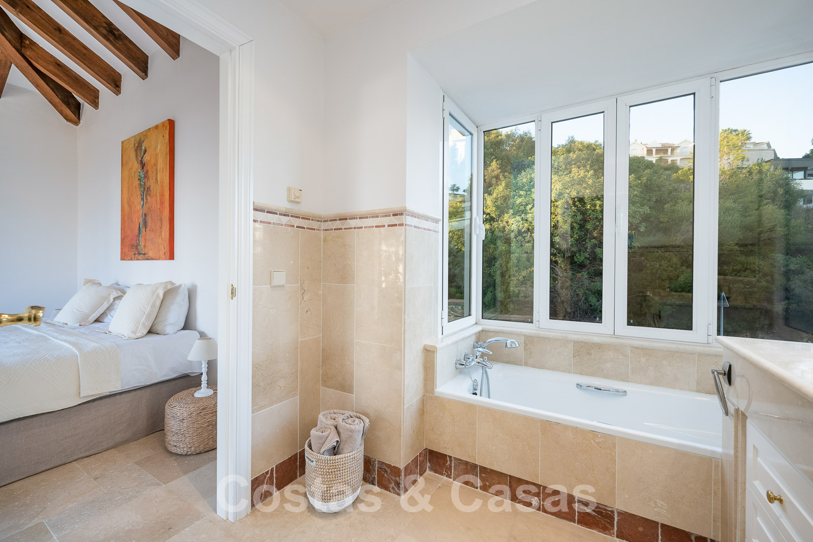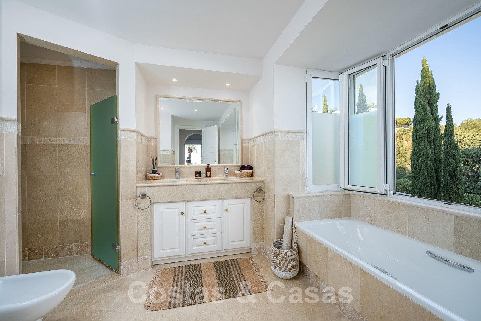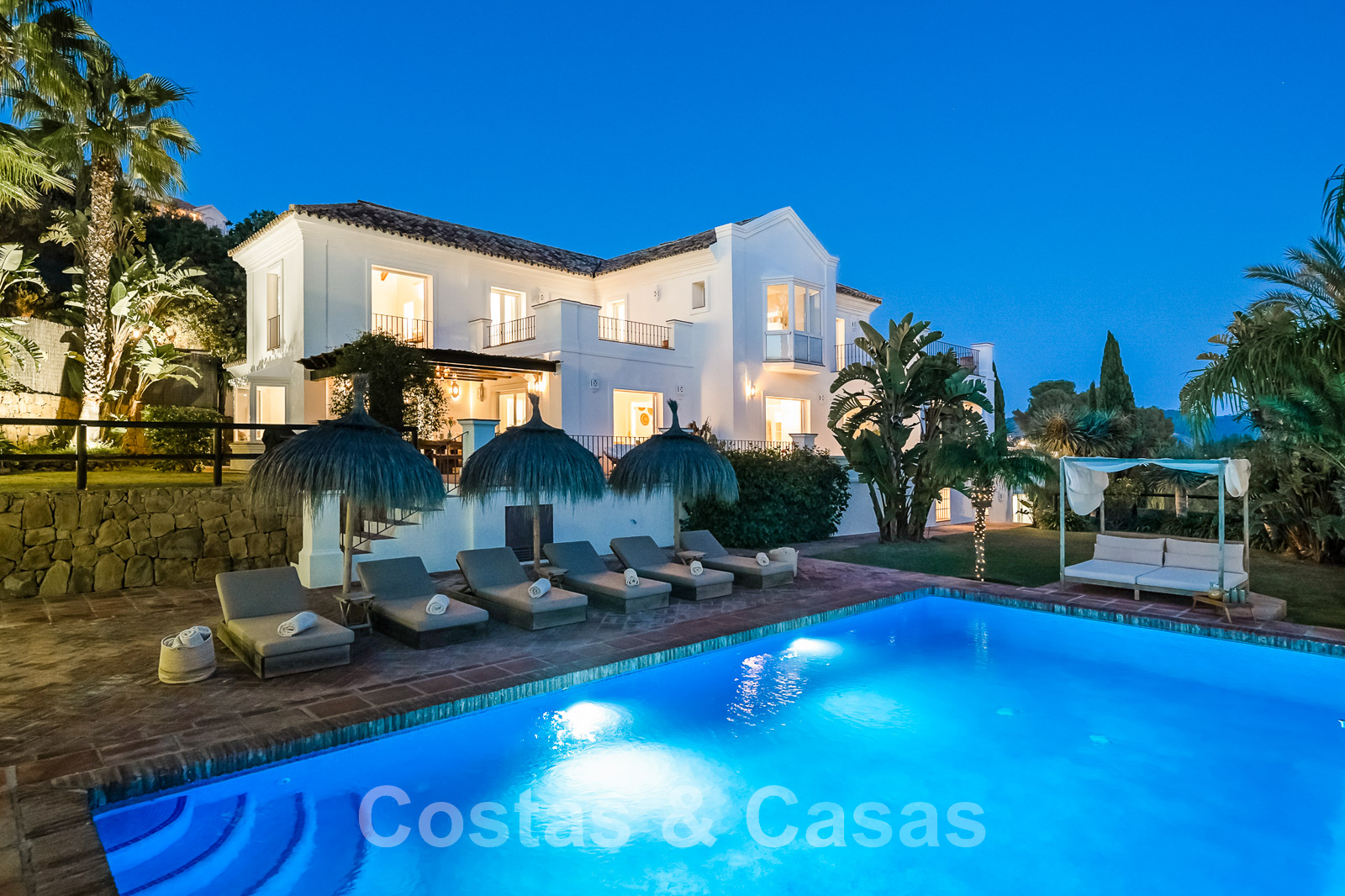 Villa andalouse de luxe à vendre dans un quartier résidentiel sécurisé, entouré de verdure, à quelques minutes en voiture de la plage et du centre de Marbella