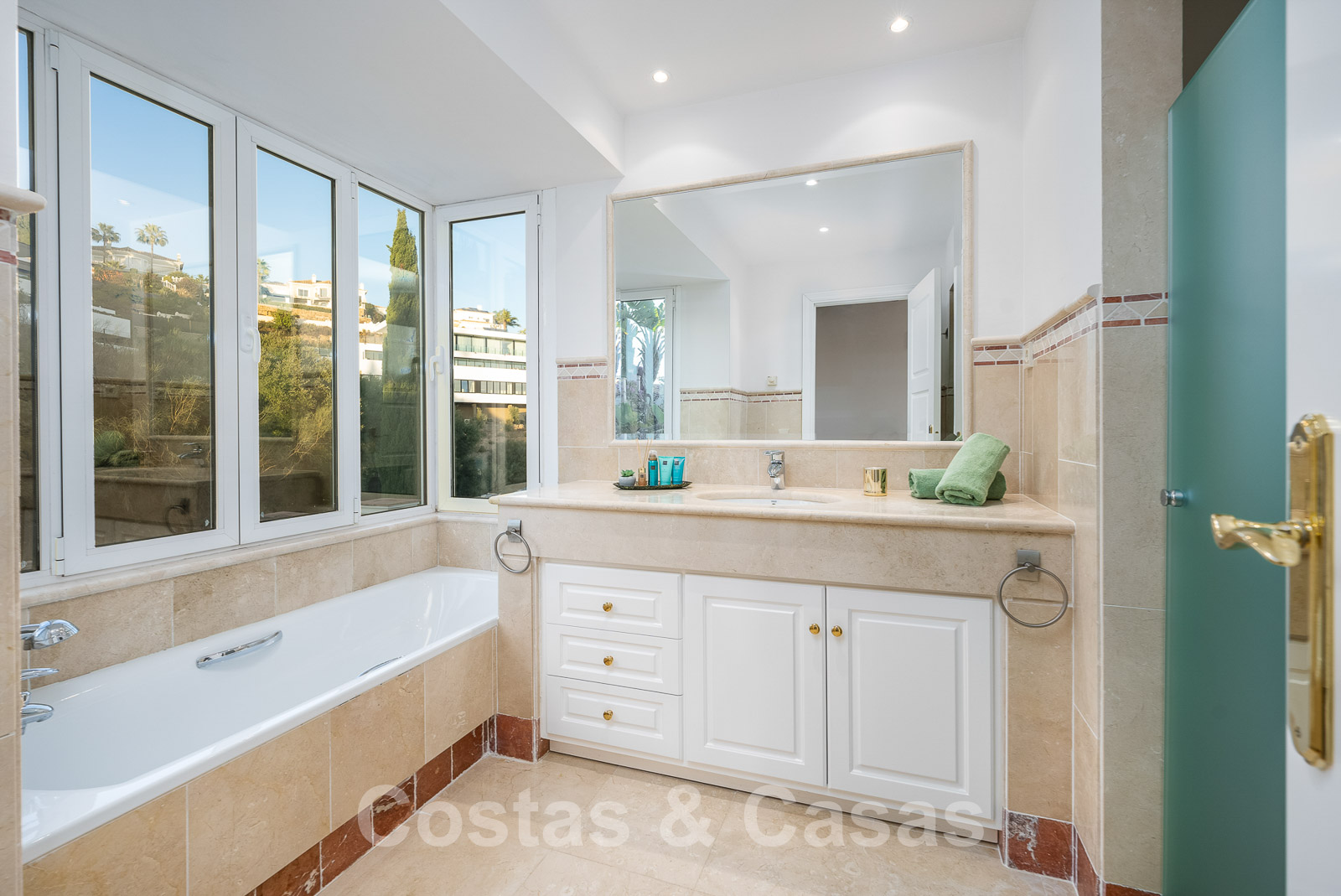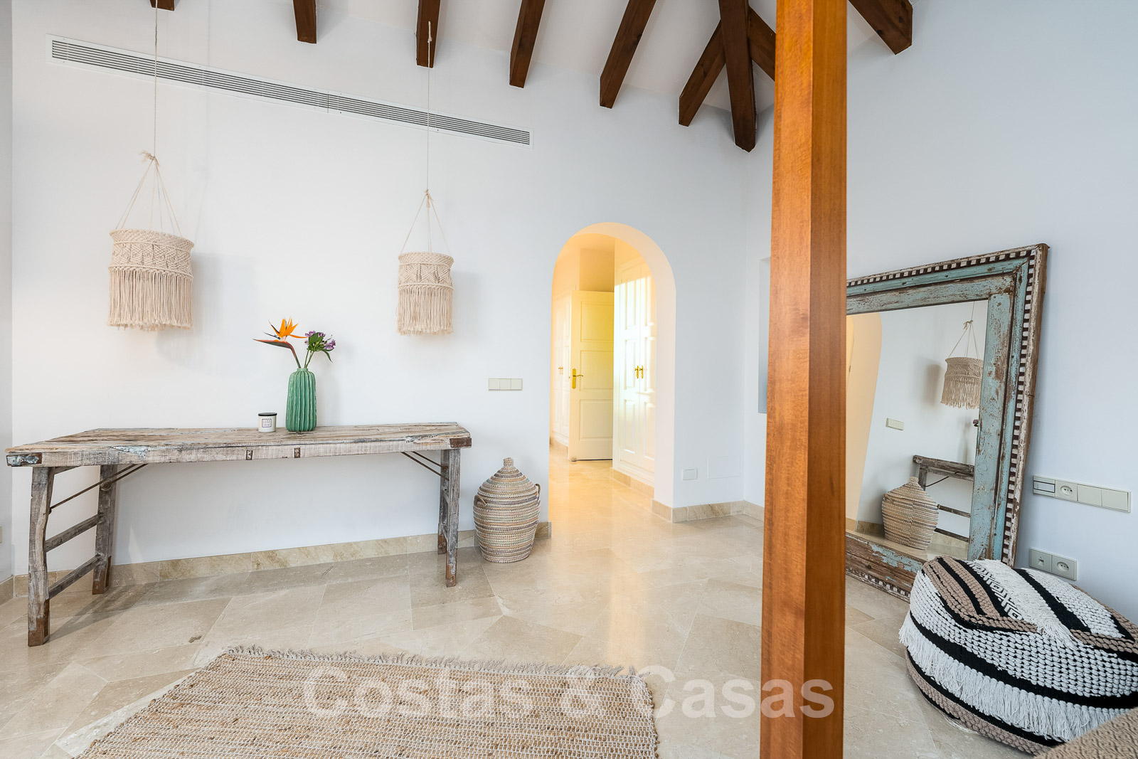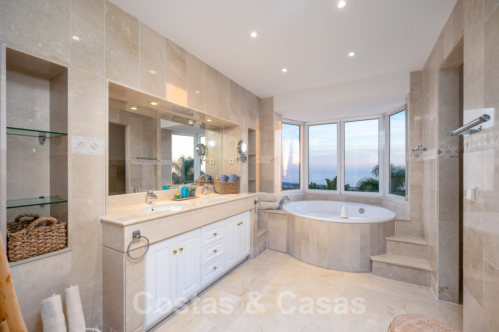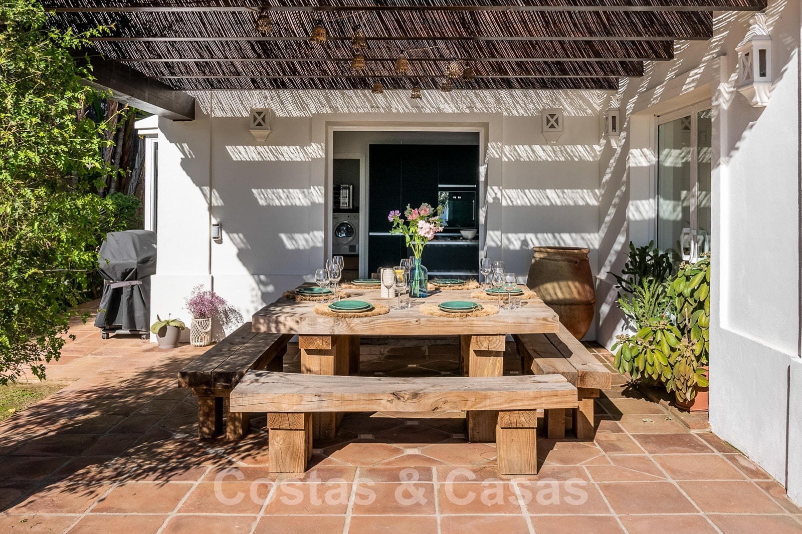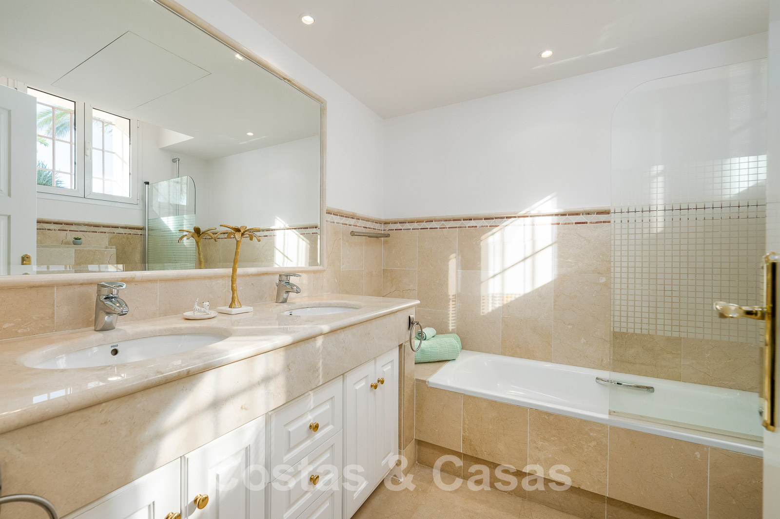 Villa andalouse de luxe à vendre dans un quartier résidentiel sécurisé, entouré de verdure, à quelques minutes en voiture de la plage et du centre de Marbella