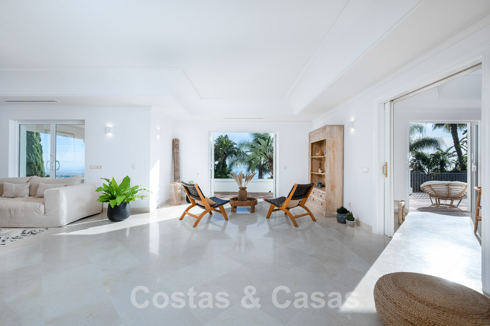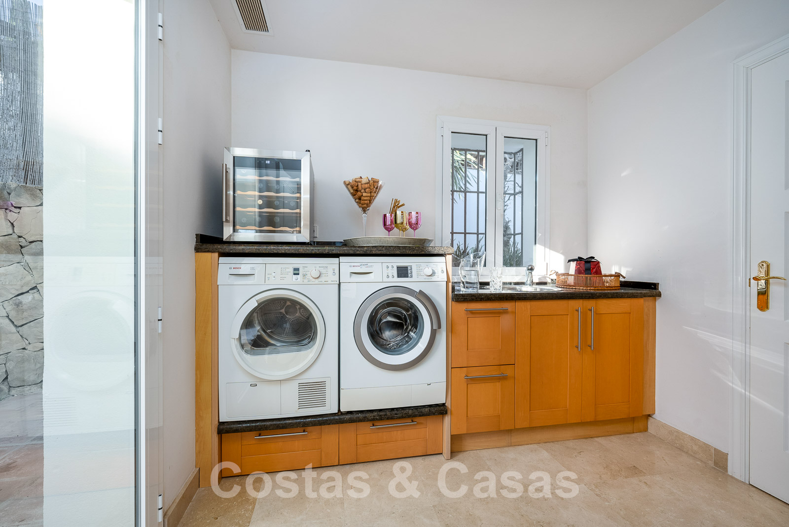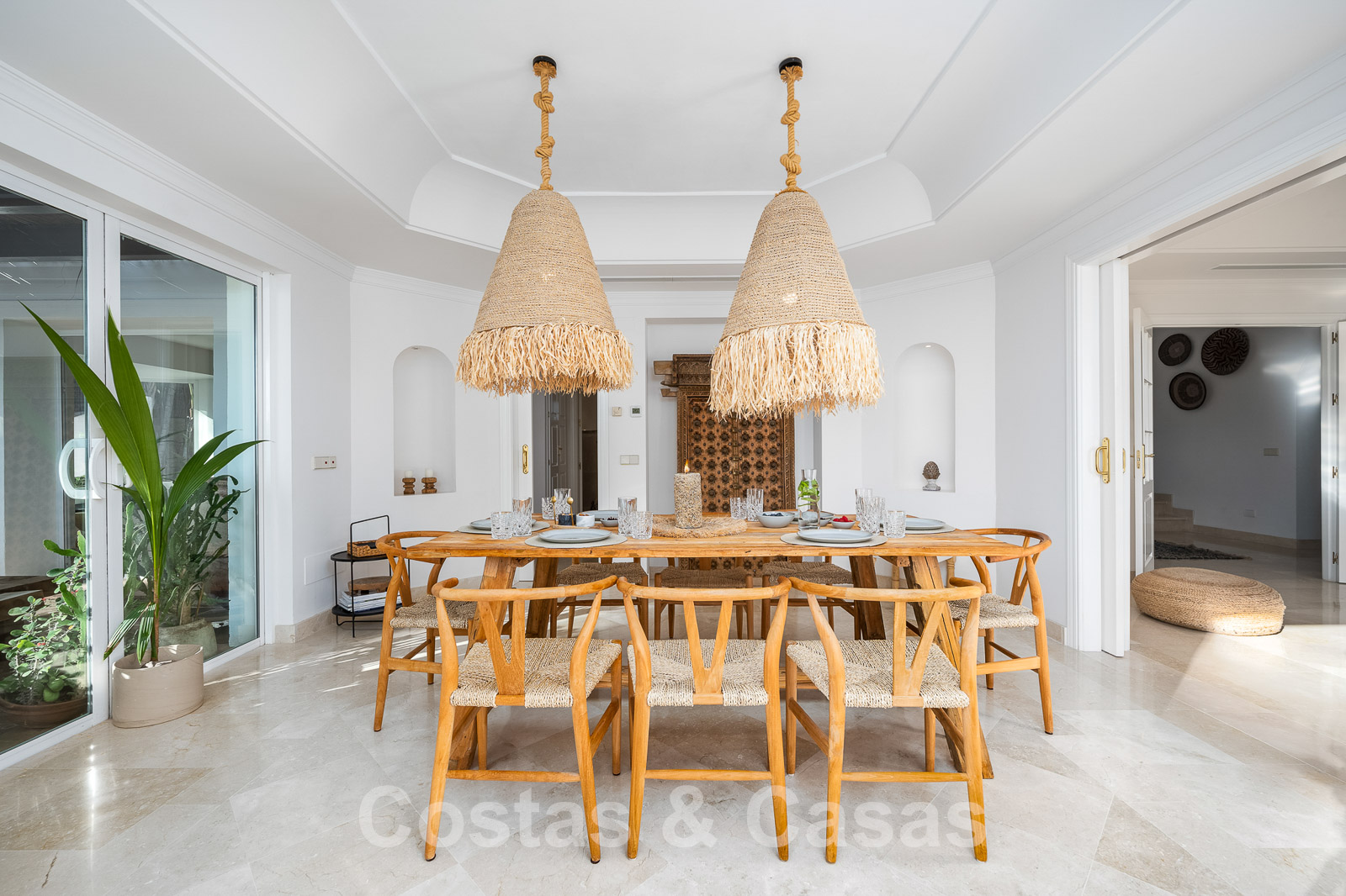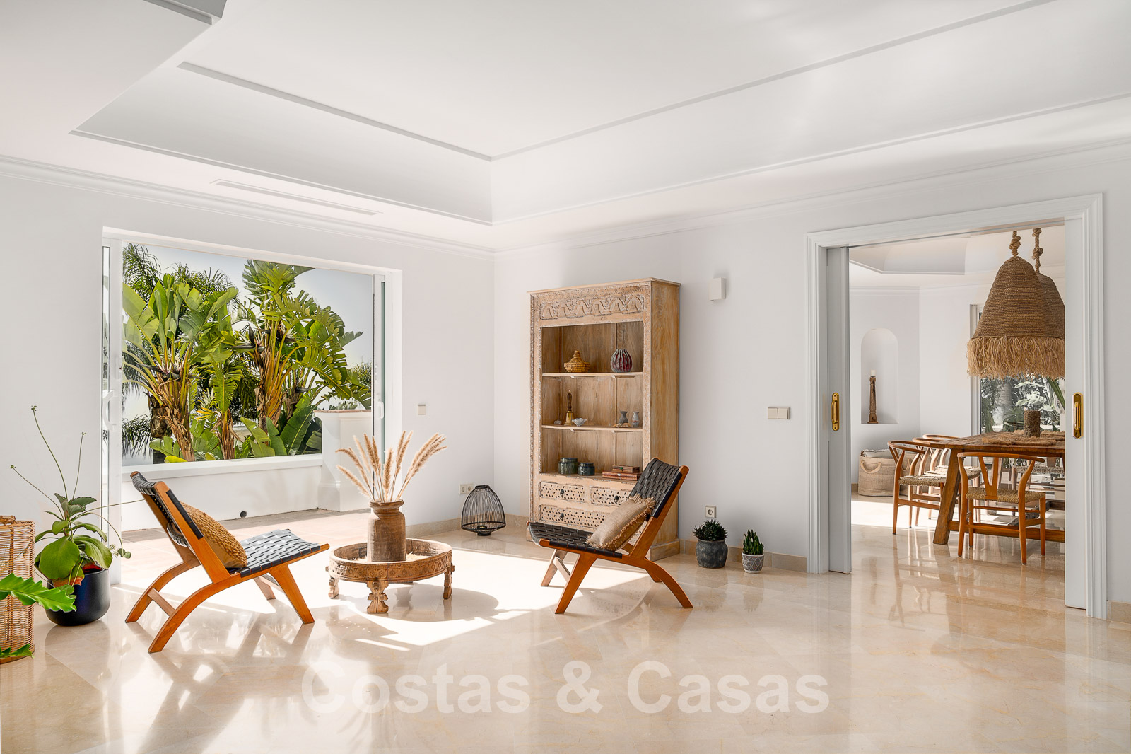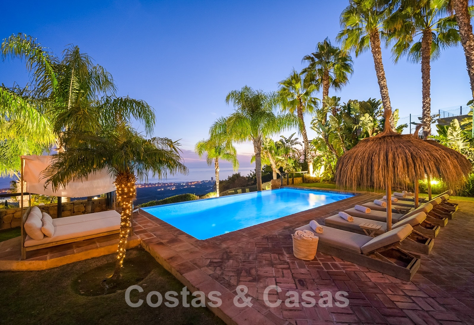Villa andalouse de luxe à vendre dans un quartier résidentiel sécurisé, entouré de verdure, à quelques minutes en voiture de la plage et du centre de Marbella