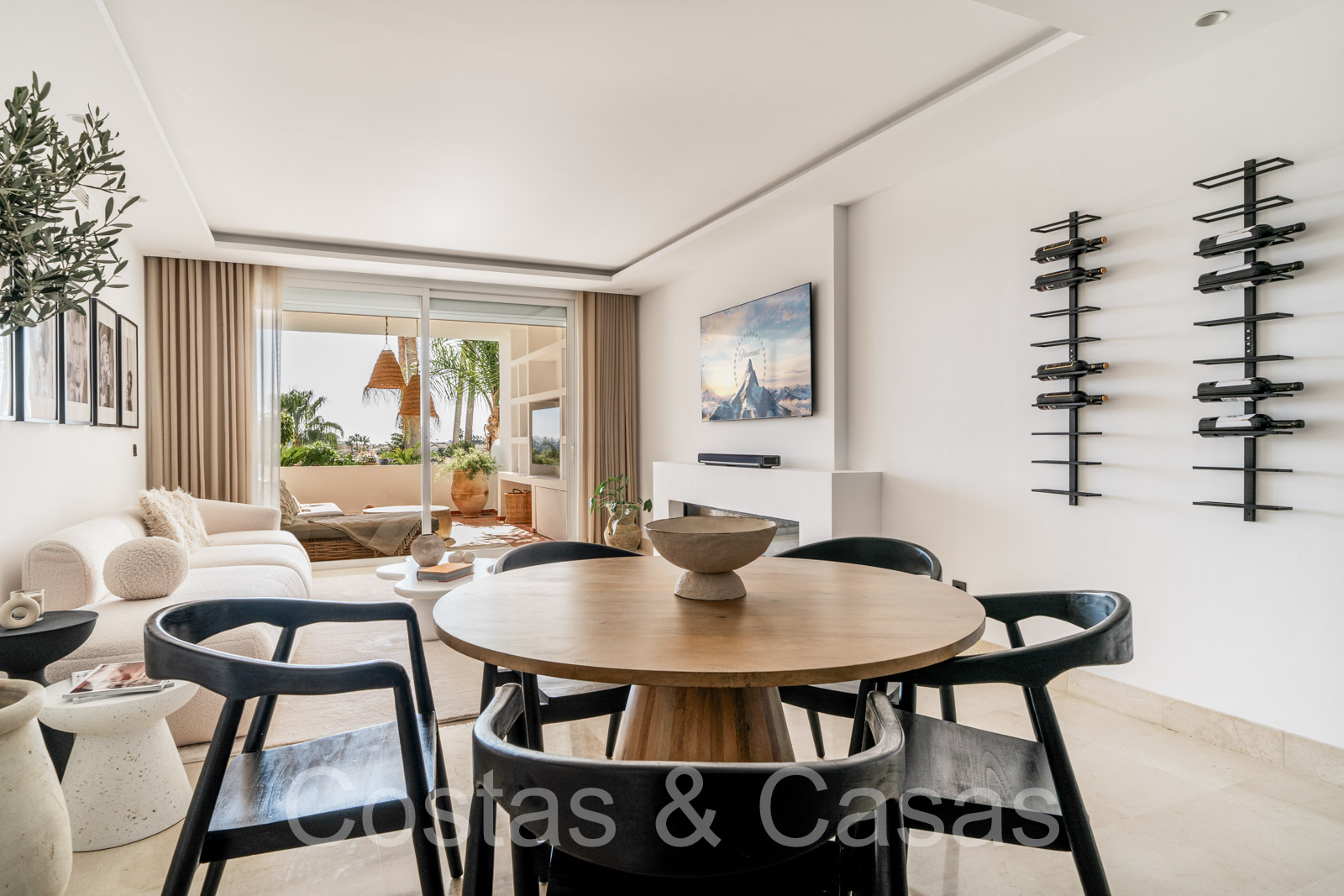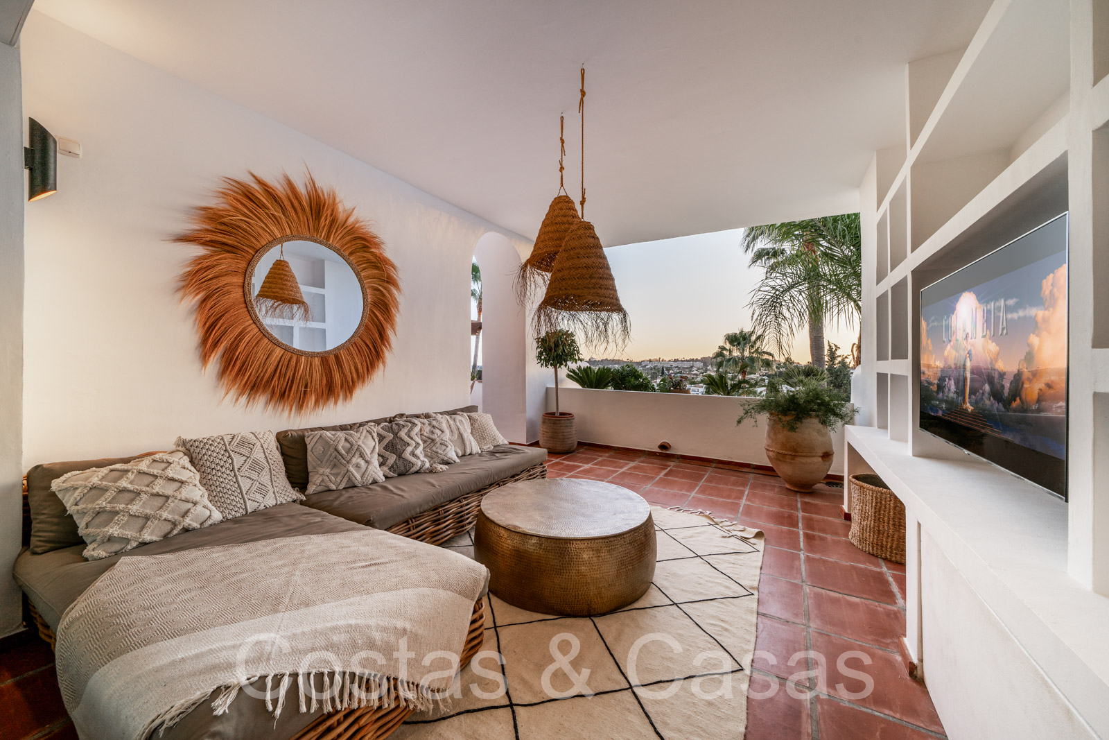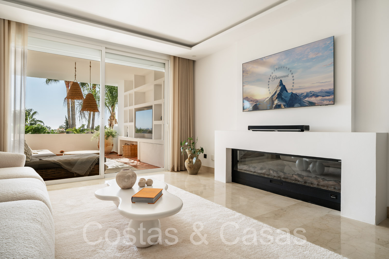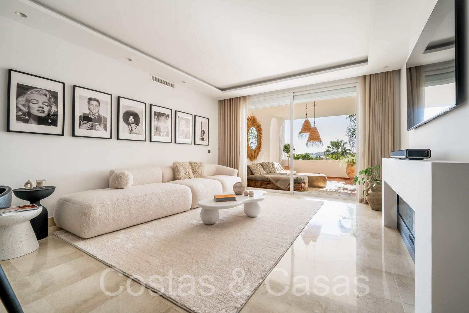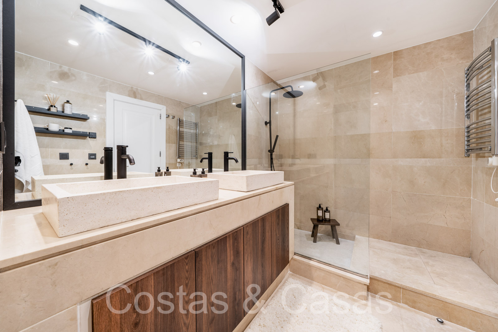 Climatisation. Chauffage au sol dans les salles de bains. Cheminé électrique. Sols en marbre. Volets roulants motorisés. Auvents motorisés sur la terrasse.