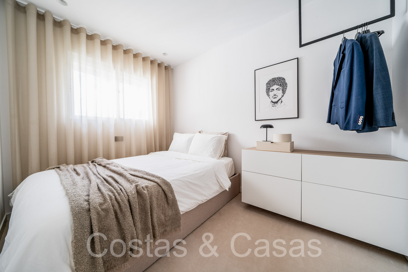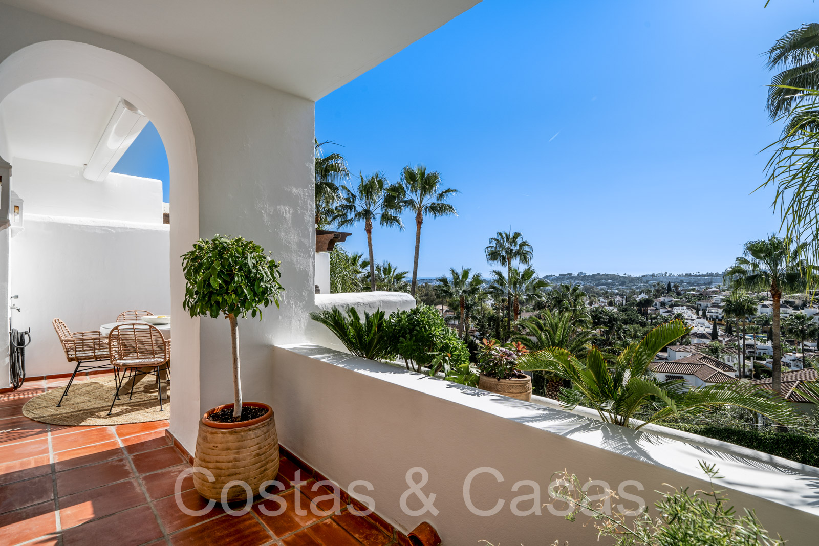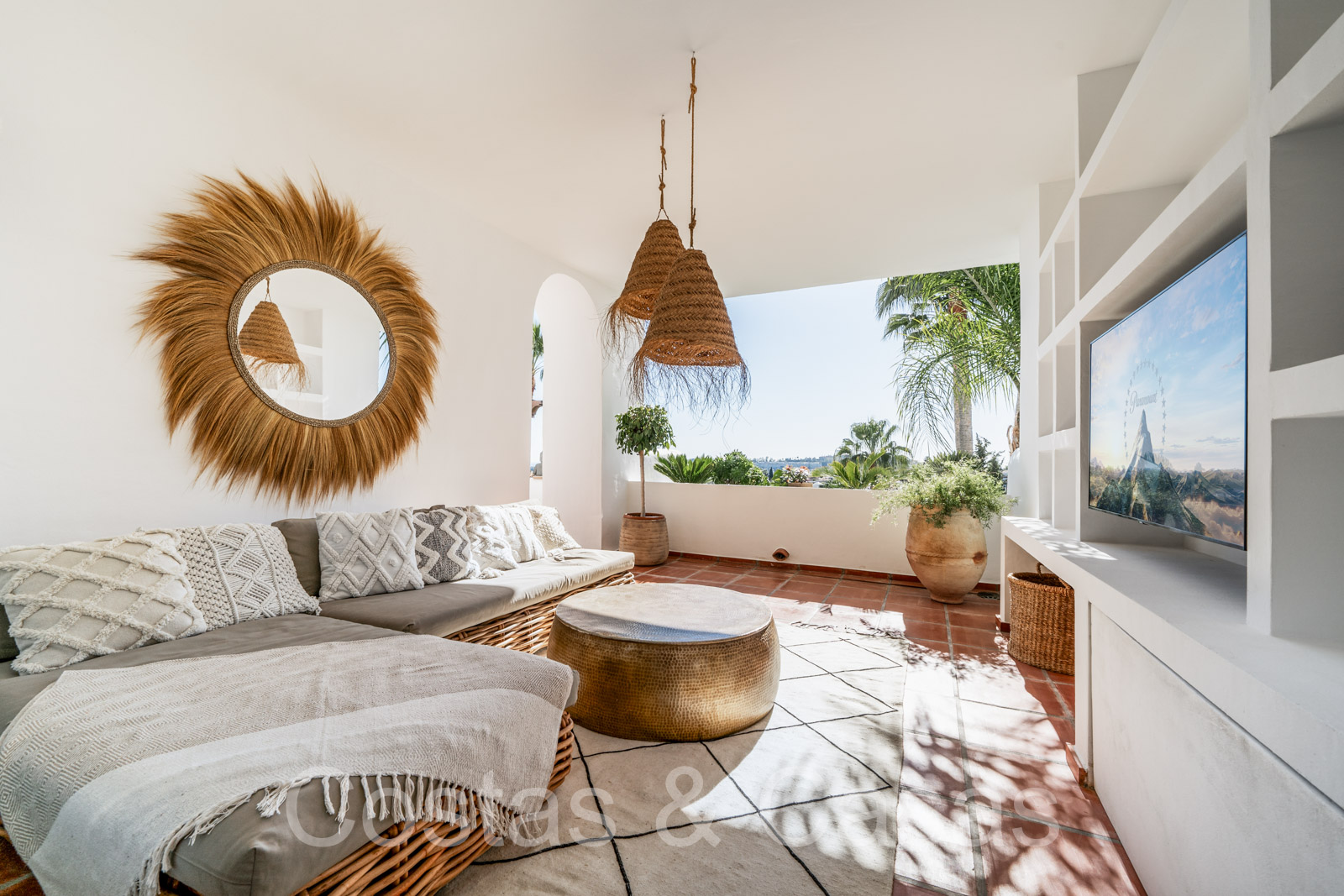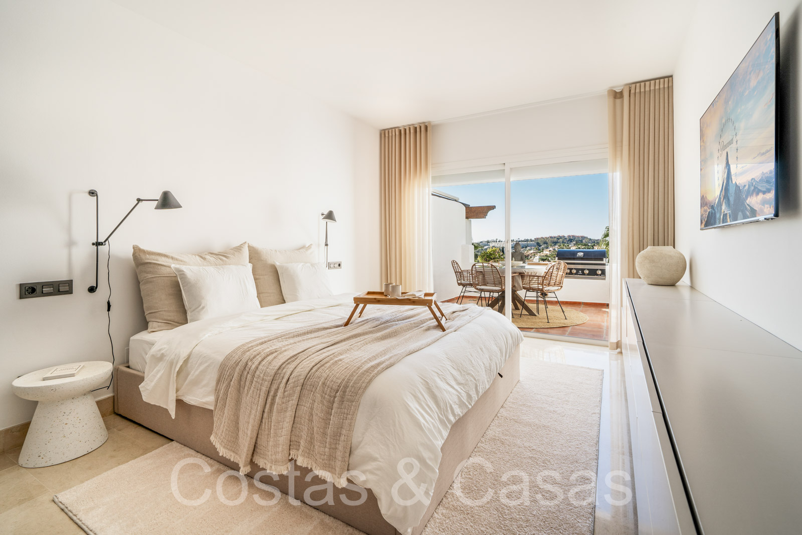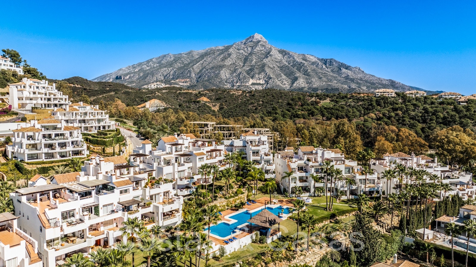 Appartement intermédiaire spacieux avec 3 chambres. Intérieur moderne et lumineux. Une terrasse bien exposée est dotée d'un coin repas extérieur et d'un barbecue intégré. Salon extérieur couvert et cosy équipé d'une télévision. Vues panoramiques sur la vallée du golf vers la mer Méditerranée. Espace de vie avec salon TV confortable et coin repas. La grande cuisine américaine est entièrement équipée avec du matériel haut de gamme et s'ouvre sur le séjour. De hautes fenêtres coulissantes dans le salon donnent accès à la terrasse et génèrent également beaucoup de lumière naturelle. Un total de 3 chambres et 2 salles de bains. La chambre principale bénéficie d'une salle de bains privative et d'un accès à la terrasse. Débarras. Parking privé intérieur.