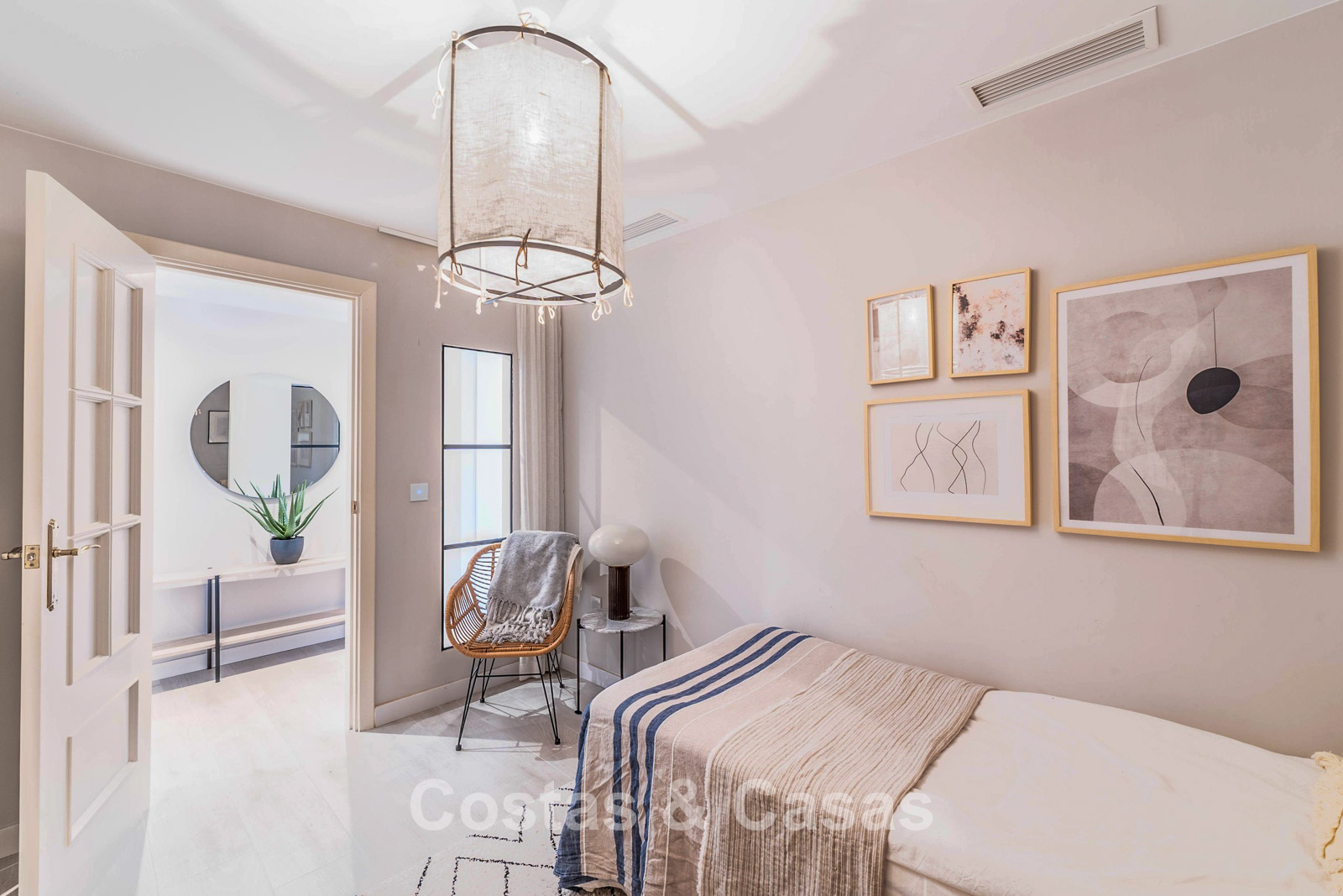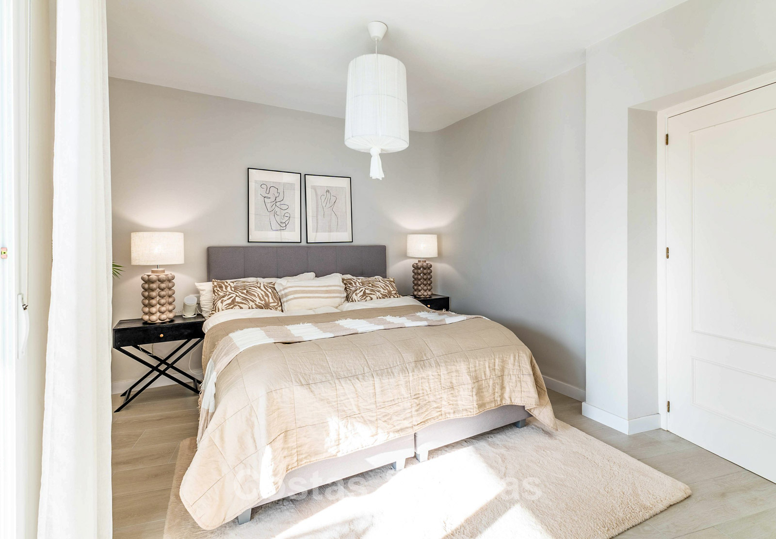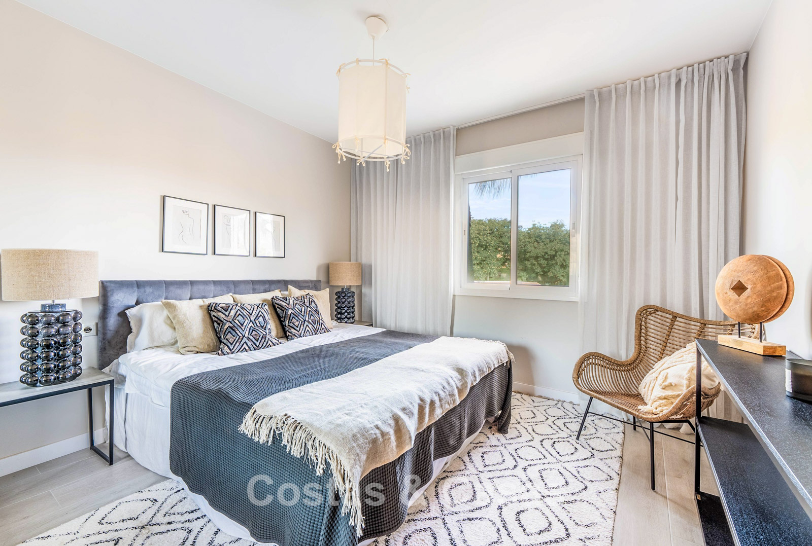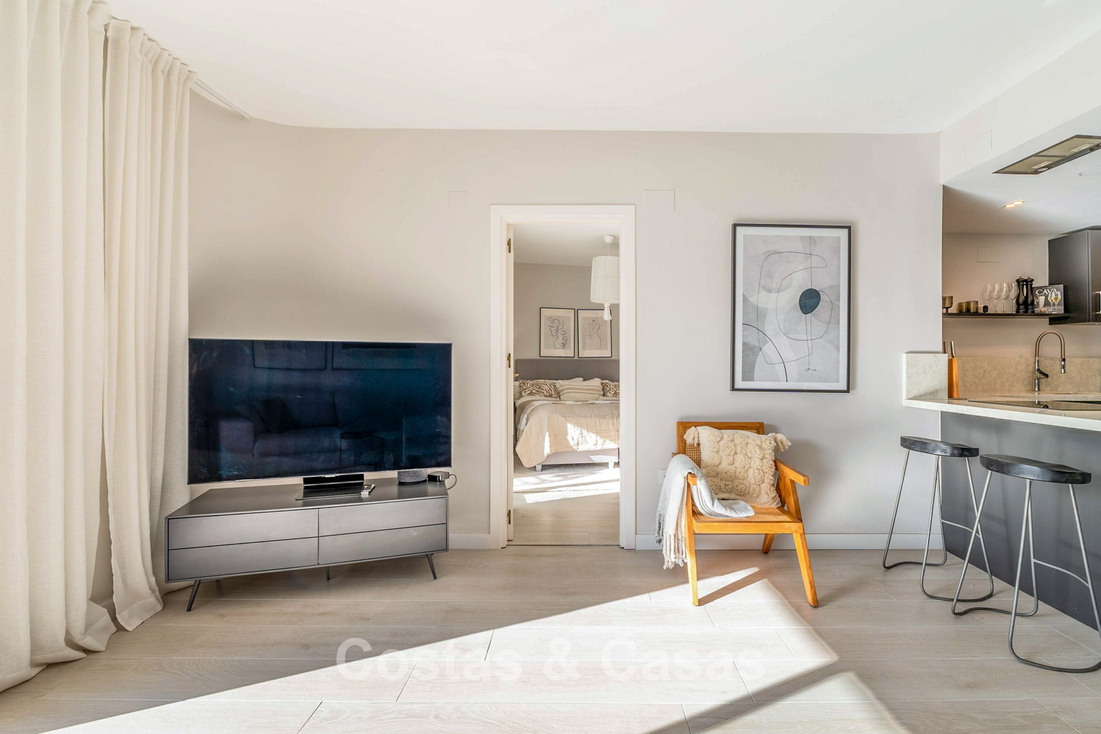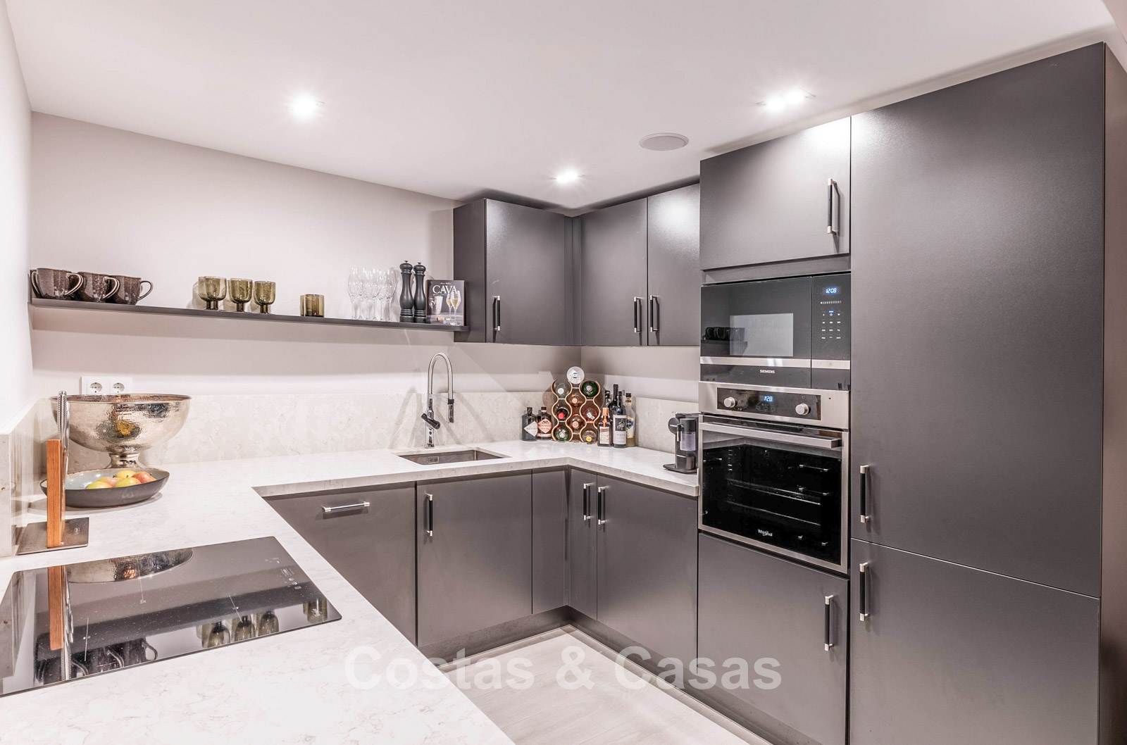 Appartement lumineux, élégamment rénové dans un style moderne. Finitions de haute qualité à un niveau élevé. Terrasse semi-ouverte avec espace chillout et espace ‘repas en plein air’. Orienté au sud. Vue partielle sur la mer Méditerranée. Intérieur contemporain avec un agencement moderne et ouvert et un style scandinave. Séjour ouvert avec salon et coin repas intégré. Cuisine/salle à manger pratique avec appareils Siemens de haute qualité et un bar pour le petit-déjeuner. De hautes fenêtres coulissantes dans le salon donnent accès à la terrasse et laissent également entrer beaucoup de lumière naturelle. 3 chambres, 2 salles de bains. Garage intérieur pour 1 voiture dans le garage commun.