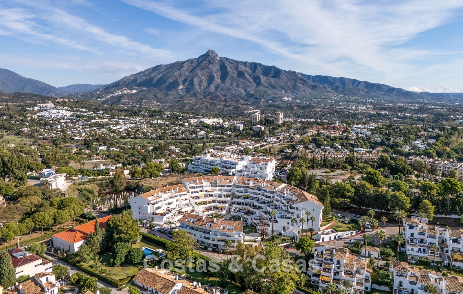 Un emplacement pratique dans une urbanisation fermée et située au centre de Nueva Andalucia. A deux pas des commerces, restaurants, installations récréatives et médicales. Les plages du Golden Mile et le fabuleux centre de Puerto Banus sont accessibles à pied ou à quelques minutes en voiture. Le complexe dispose d'une grande piscine commune entourée d'un jardin paysager.