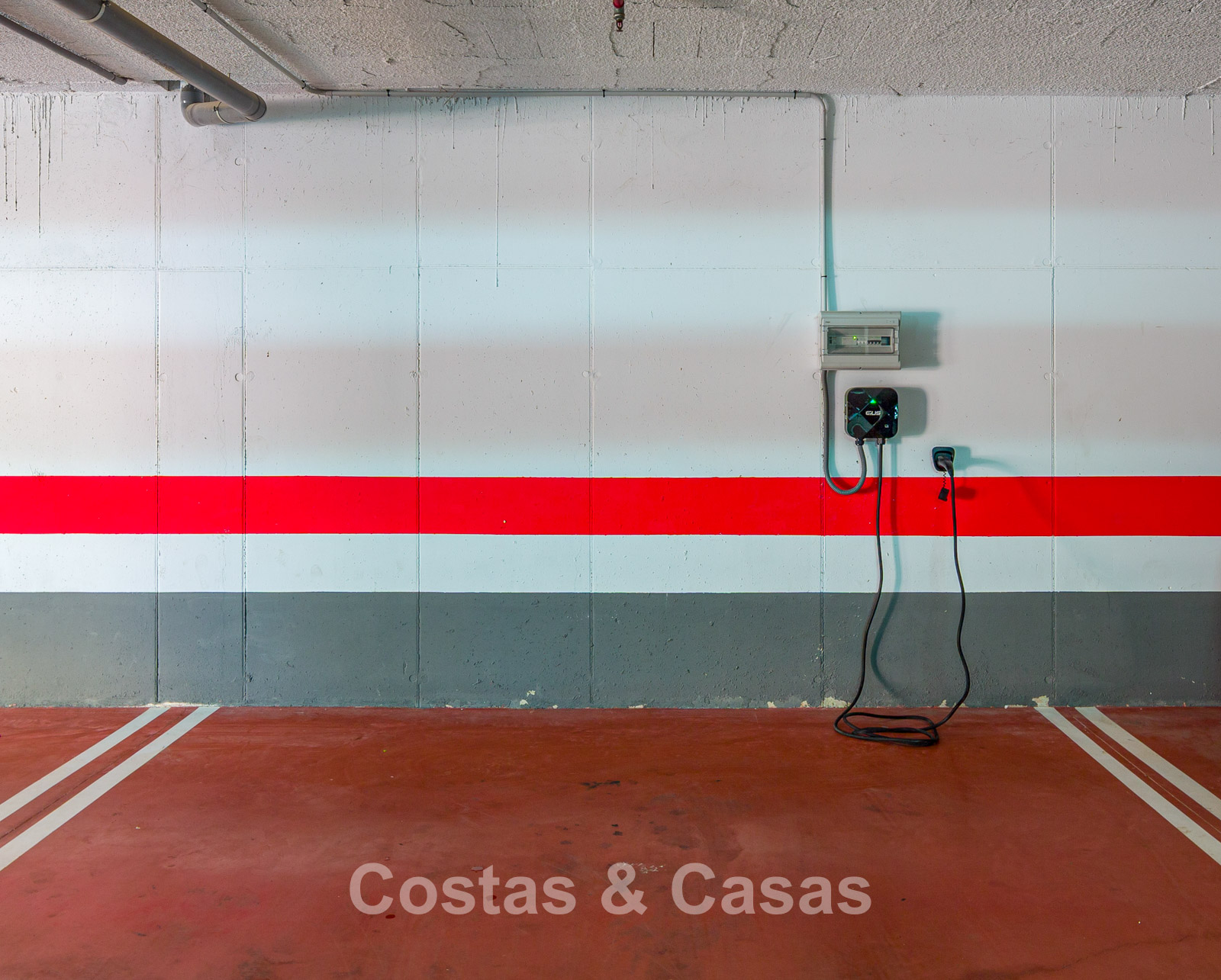 2 places de parking souterrain avec borne de recharge pour véhicule électrique.