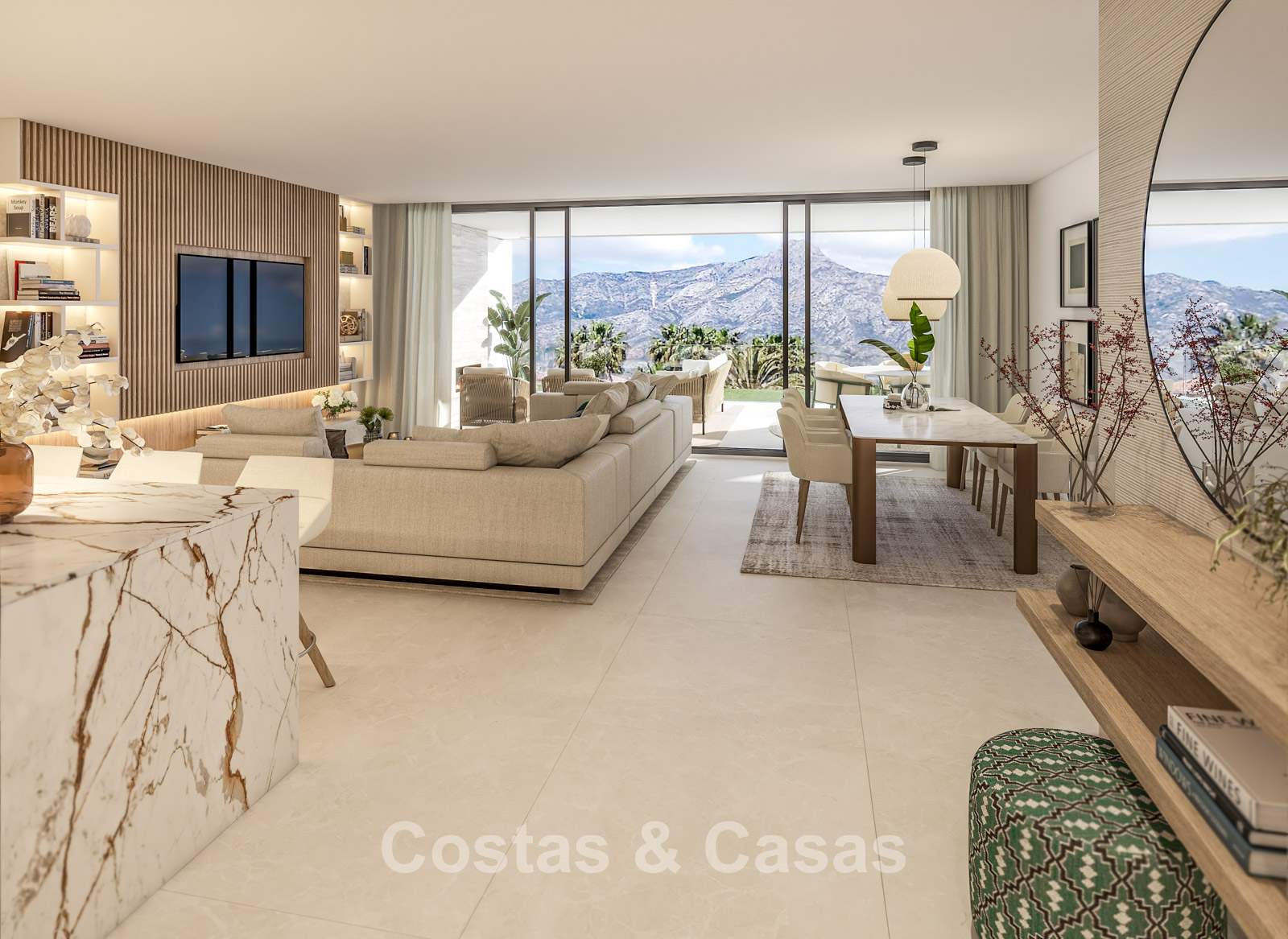 Appartements, penthouses et duplex contemporains. Matériaux haut de gamme et finitions soignées. Certains appartements en rez-de-chaussée offrent des espaces verts, tandis que les appartements au premier étage bénéficient de grandes terrasses. Les penthouses offrent un luxe absolu avec piscine privée. Les terrasses accueillantes sont propices à la détente. Vue imprenable sur la montagne de La Concha ou la mer Méditerranée. L'intérieur ouvert et aéré, sublimé par de généreuses baies vitrées coulissantes, laisse entrer une abondante lumière naturelle. Séjour avec salon de détente et salle à manger intégrée. Cuisine/salle à manger fonctionnelle avec îlot central et appareils électroménagers de qualité. Les appartements disposent de 2 ou 3 chambres. Sols en grès cérame. Débarras. Au moins une place de garage.
