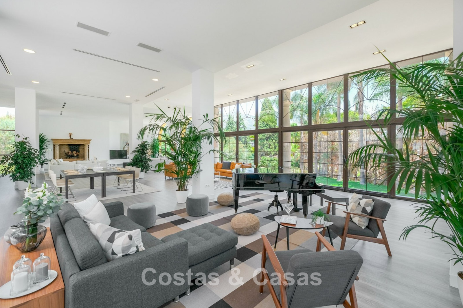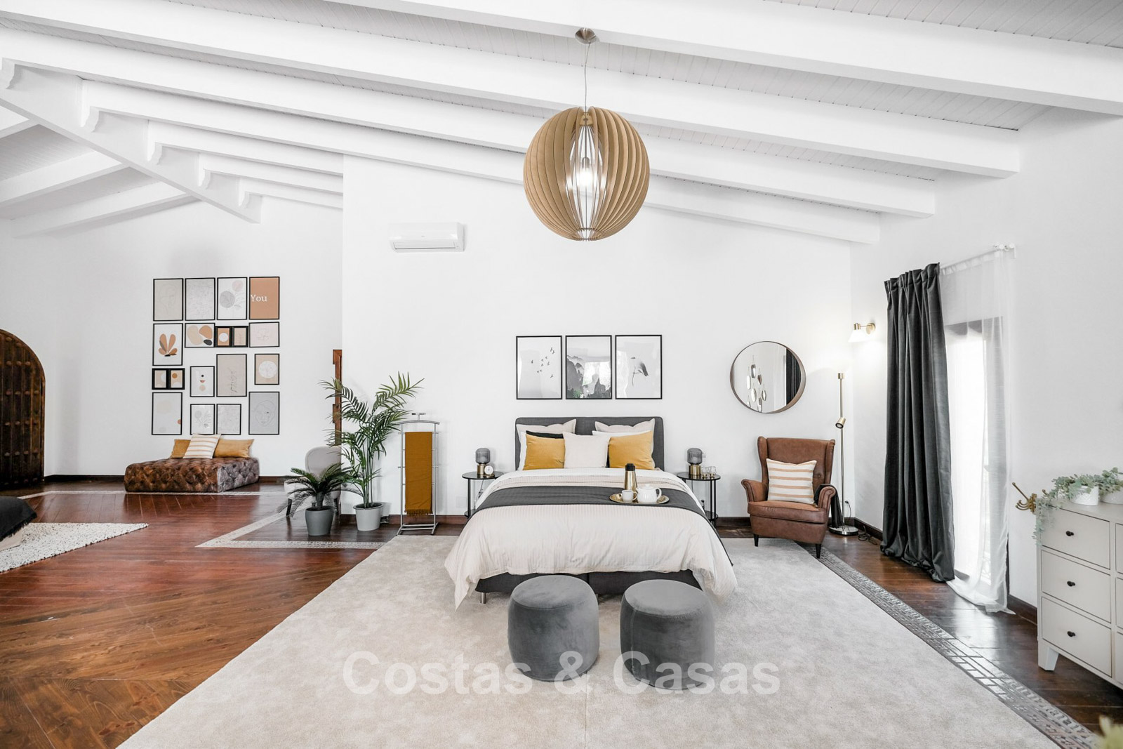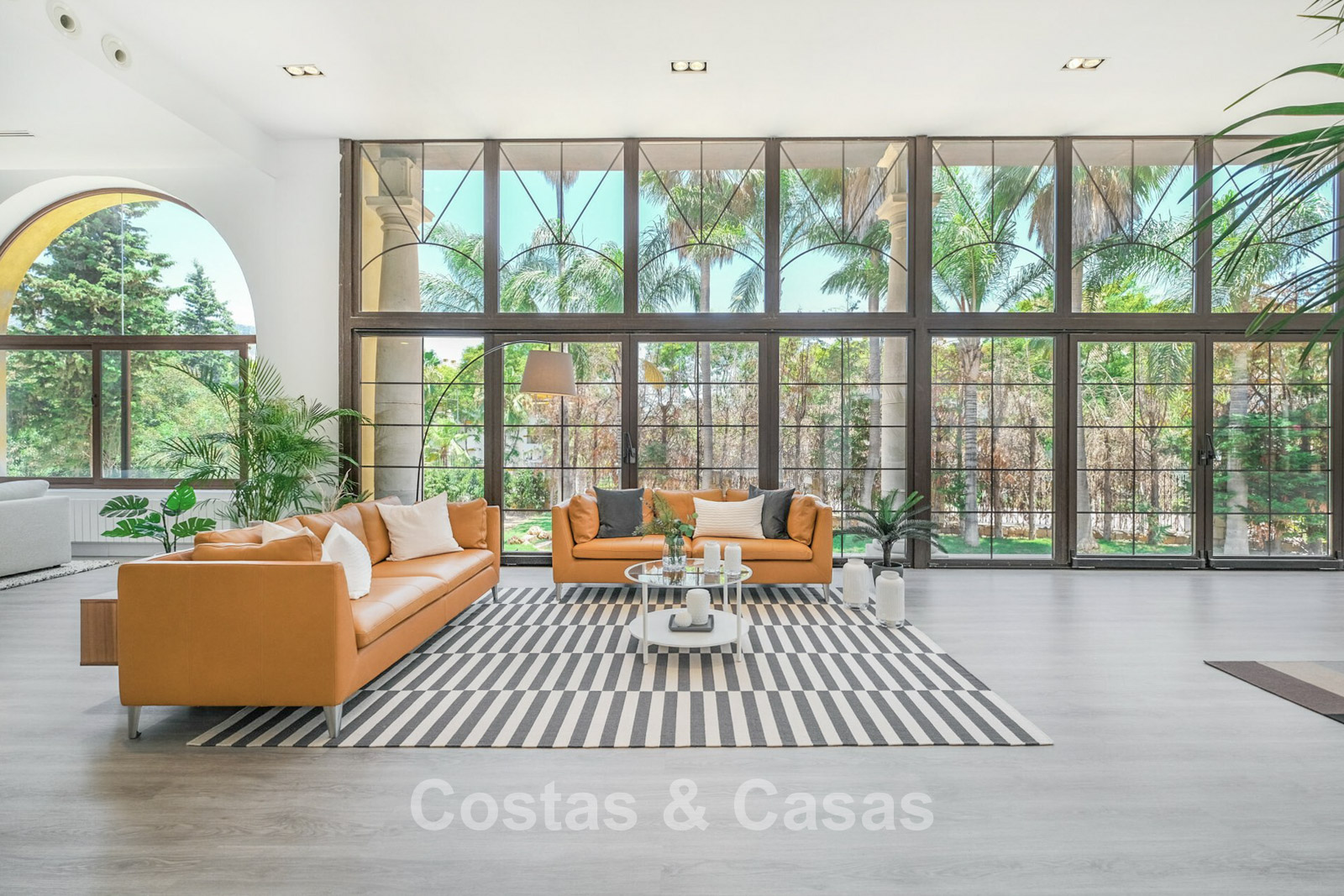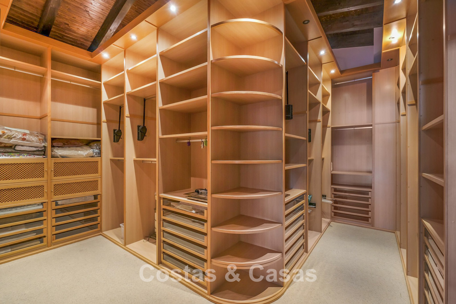 Une superbe villa de charme individuelle qui combine des caractéristiques traditionnelles et modernes. Rénovée et transformée en style loft new-yorkais. De nombreuses portes-fenêtres offrent une abondance de lumière naturelle, créant des espaces aérés et accueillants. Le salon et la salle à manger sont un espace impressionnant avec une double hauteur sous plafond, comprenant plusieurs coins salon, un piano, du parquet et une abondance de portes-fenêtres du sol au plafond donnant sur les magnifiques jardins paysagers. Une cuisine ultra-moderne équipée du matériel nécessaire de haute qualité. 10 chambres élégamment meublées, chacune avec sa propre salle de bain. La chambre principale a une superficie de plus de 200m², un lit king size, plusieurs coins salon, une grande salle de bain avec bain à remous et une terrasse privée. Parking pour plusieurs voitures.