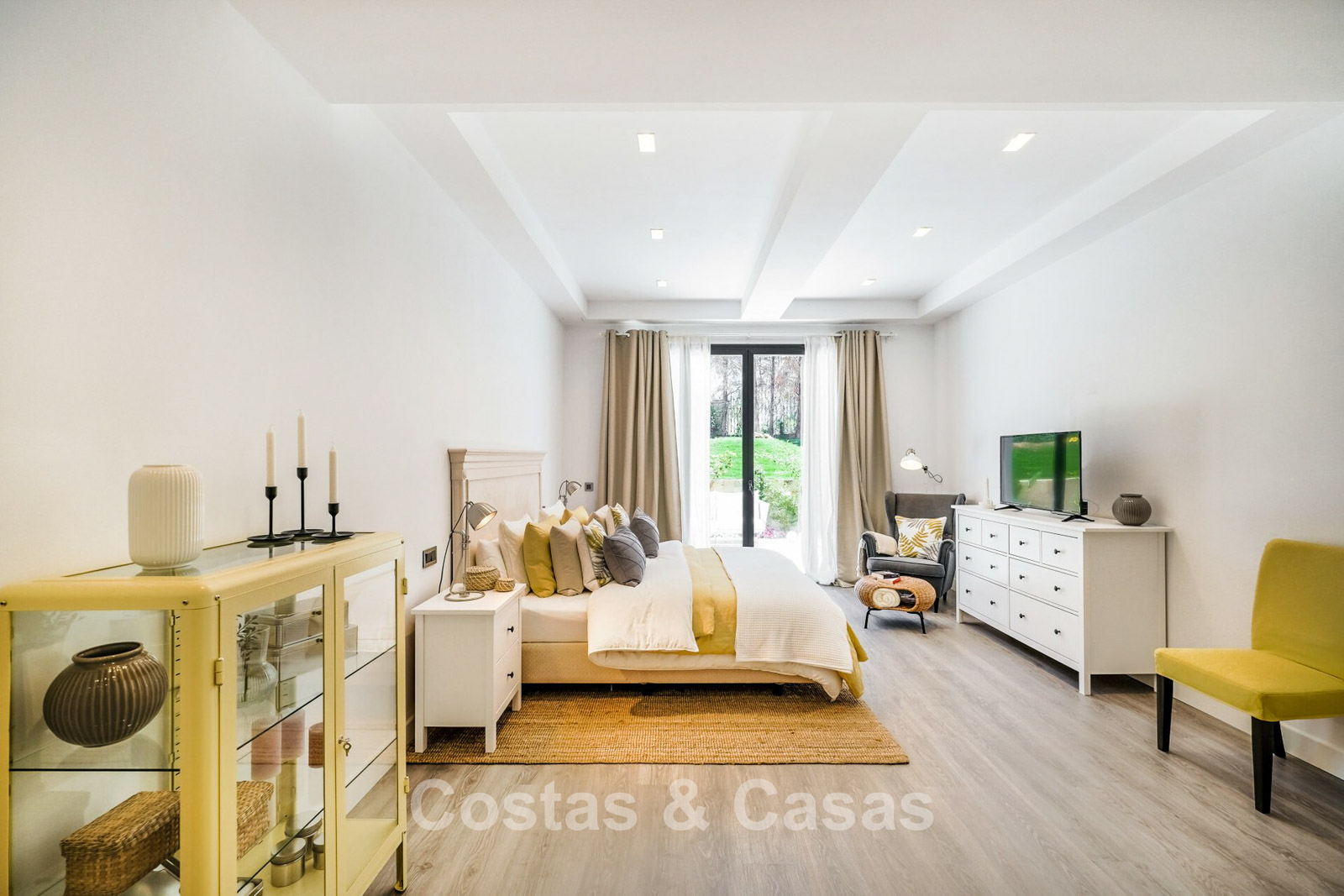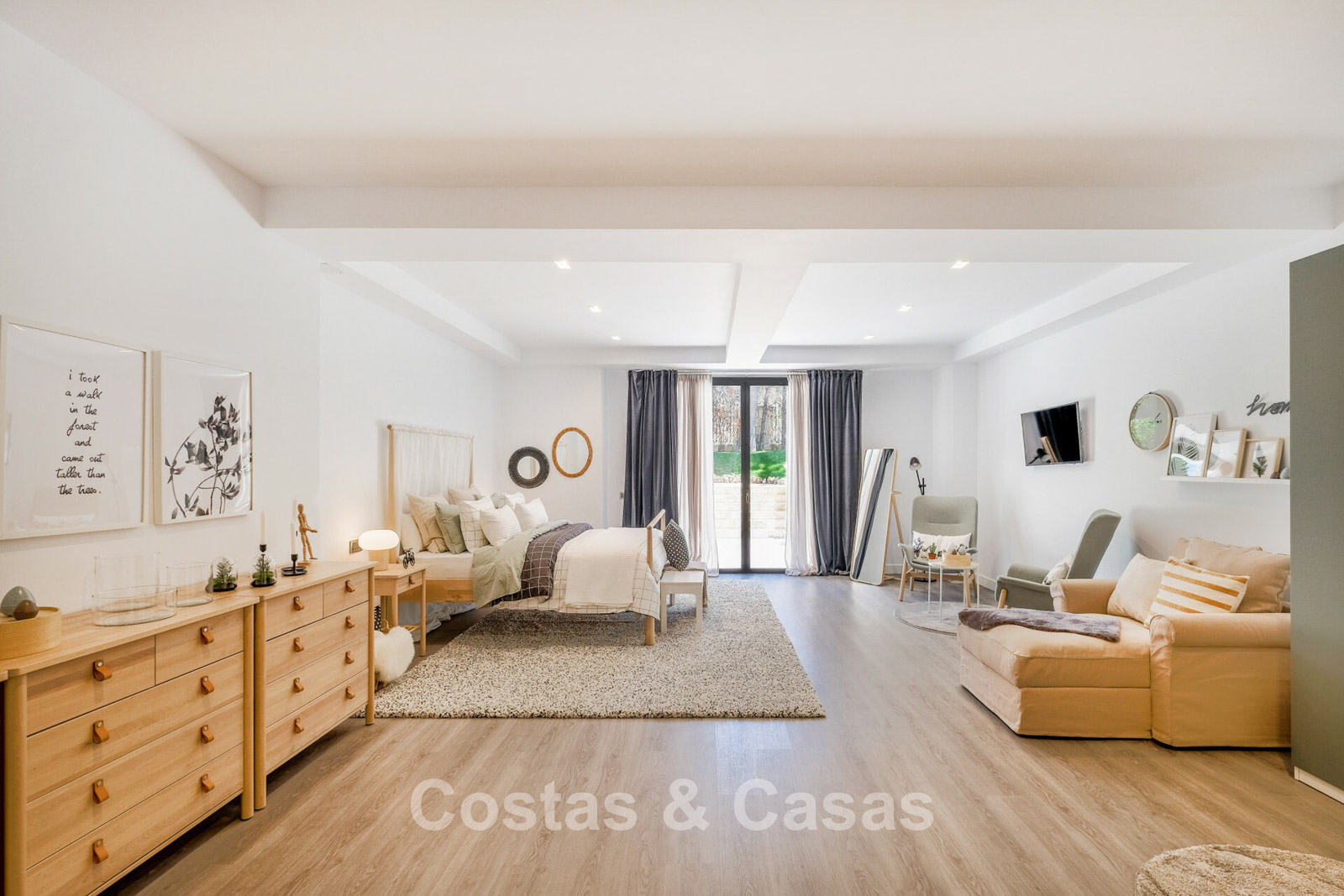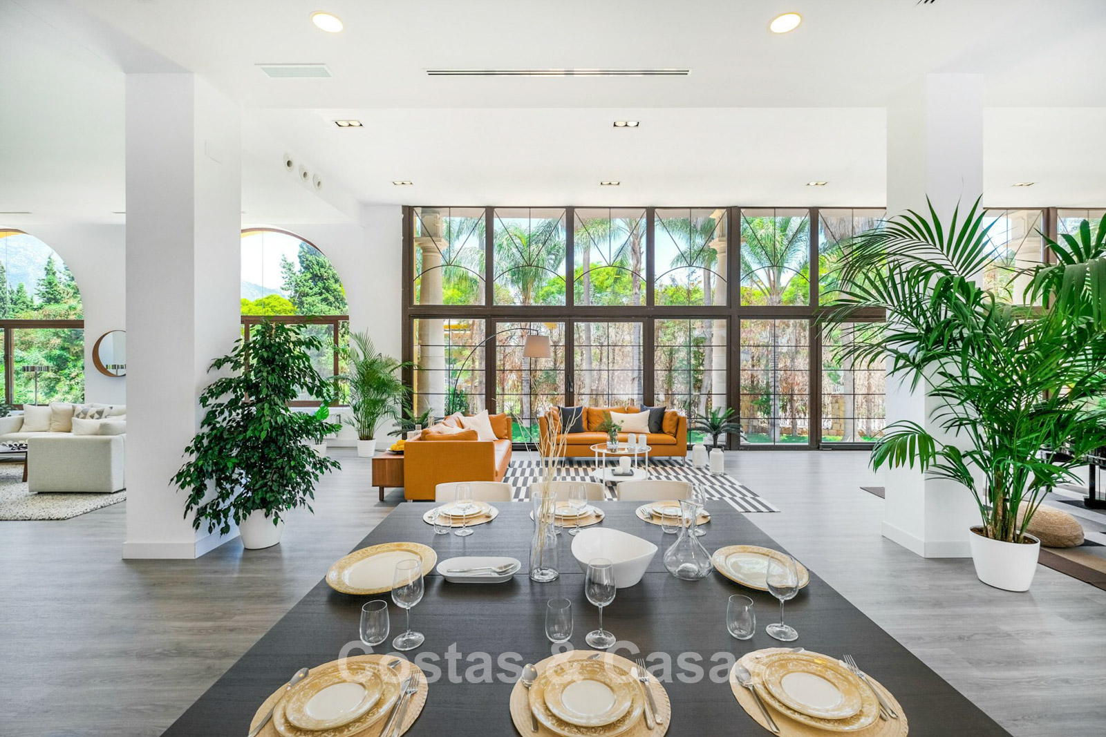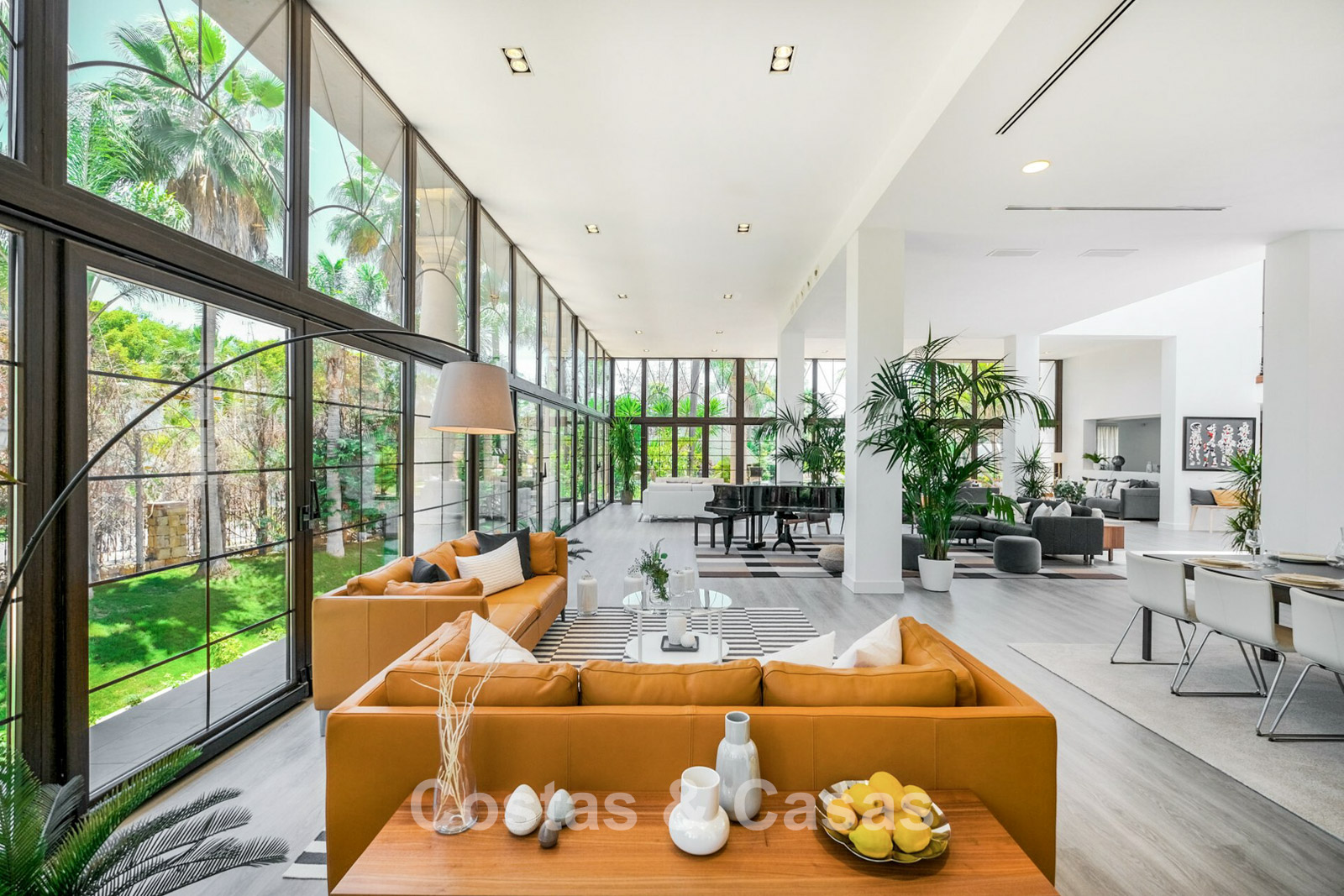 Une superbe villa de charme individuelle qui combine des caractéristiques traditionnelles et modernes. Rénovée et transformée en style loft new-yorkais. De nombreuses portes-fenêtres offrent une abondance de lumière naturelle, créant des espaces aérés et accueillants. Le salon et la salle à manger sont un espace impressionnant avec une double hauteur sous plafond, comprenant plusieurs coins salon, un piano, du parquet et une abondance de portes-fenêtres du sol au plafond donnant sur les magnifiques jardins paysagers. Une cuisine ultra-moderne équipée du matériel nécessaire de haute qualité. 10 chambres élégamment meublées, chacune avec sa propre salle de bain. La chambre principale a une superficie de plus de 200m², un lit king size, plusieurs coins salon, une grande salle de bain avec bain à remous et une terrasse privée. Parking pour plusieurs voitures.