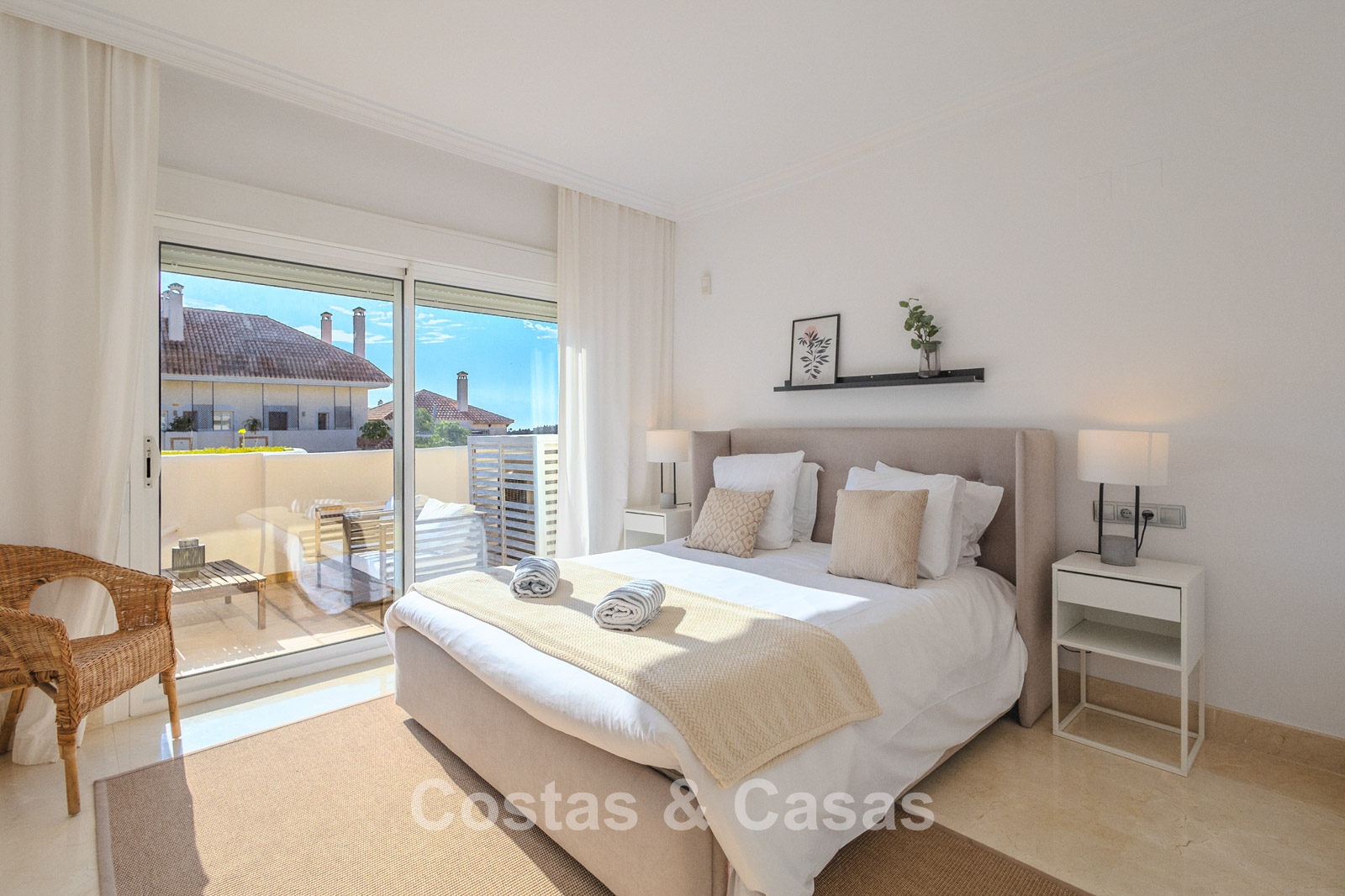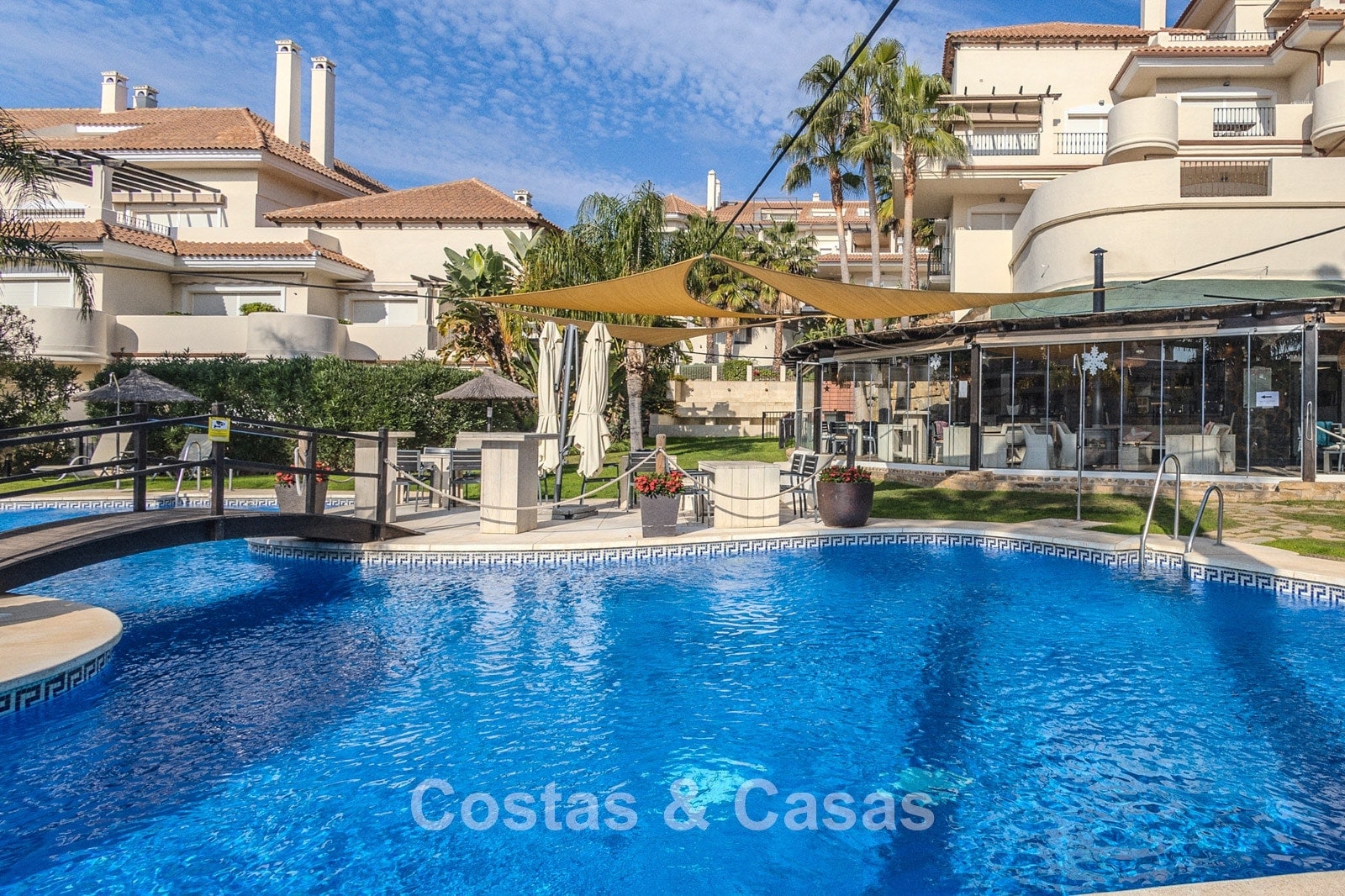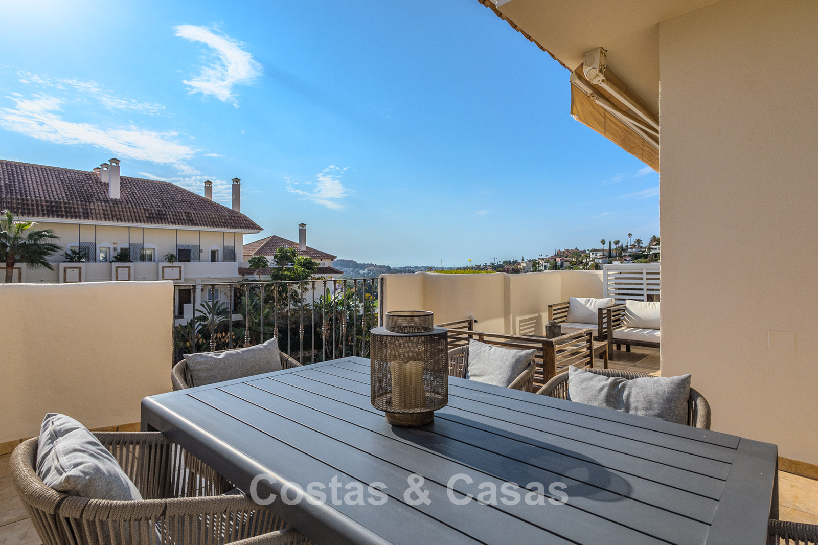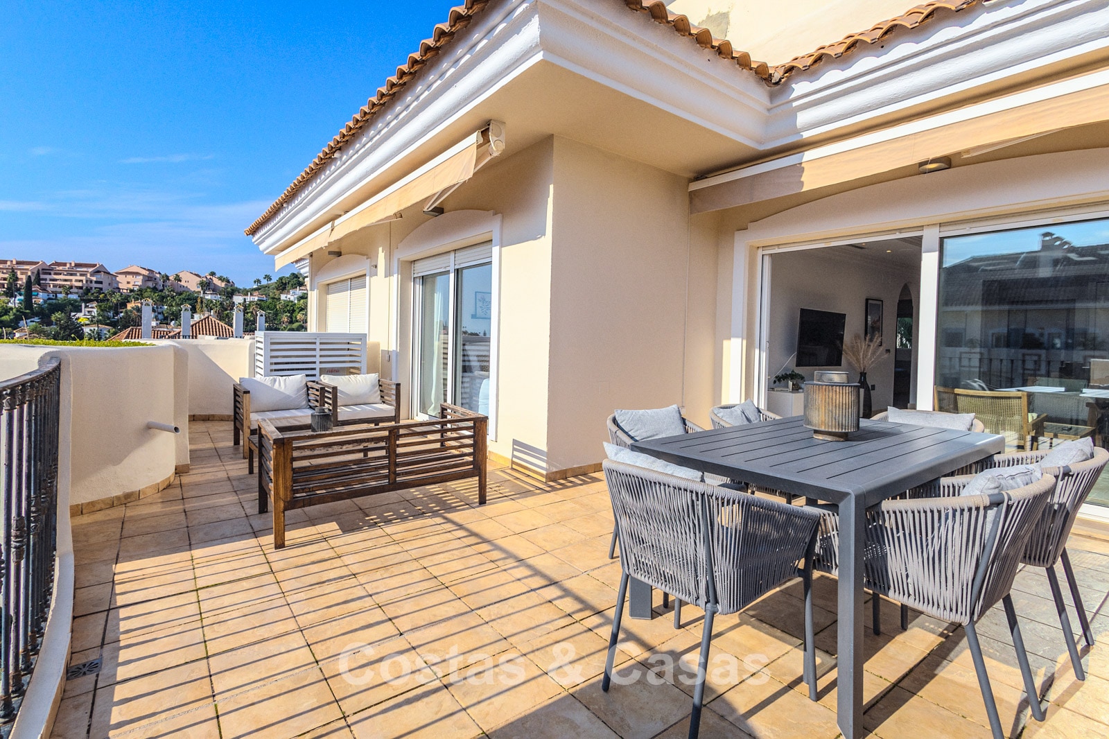 Autres caractéristiques : Climatisation. Armoires encastrées sur mesure. Volets roulants. Système d'alarme. Auvents sur la terrasse. Entièrement meublé.