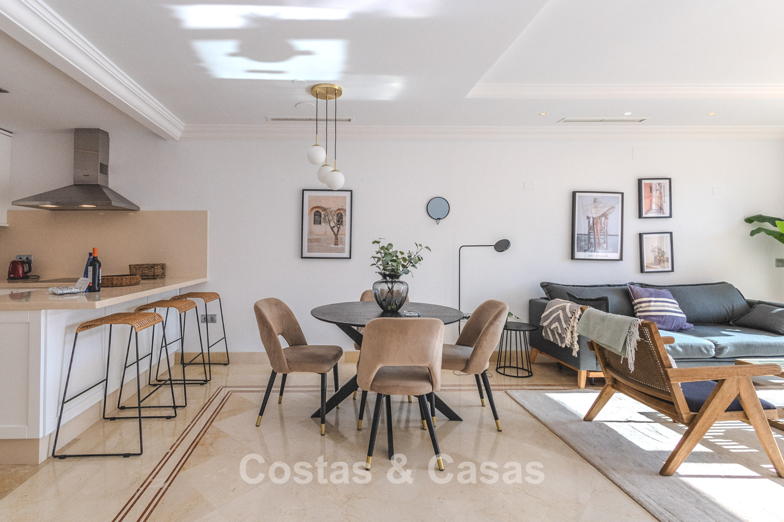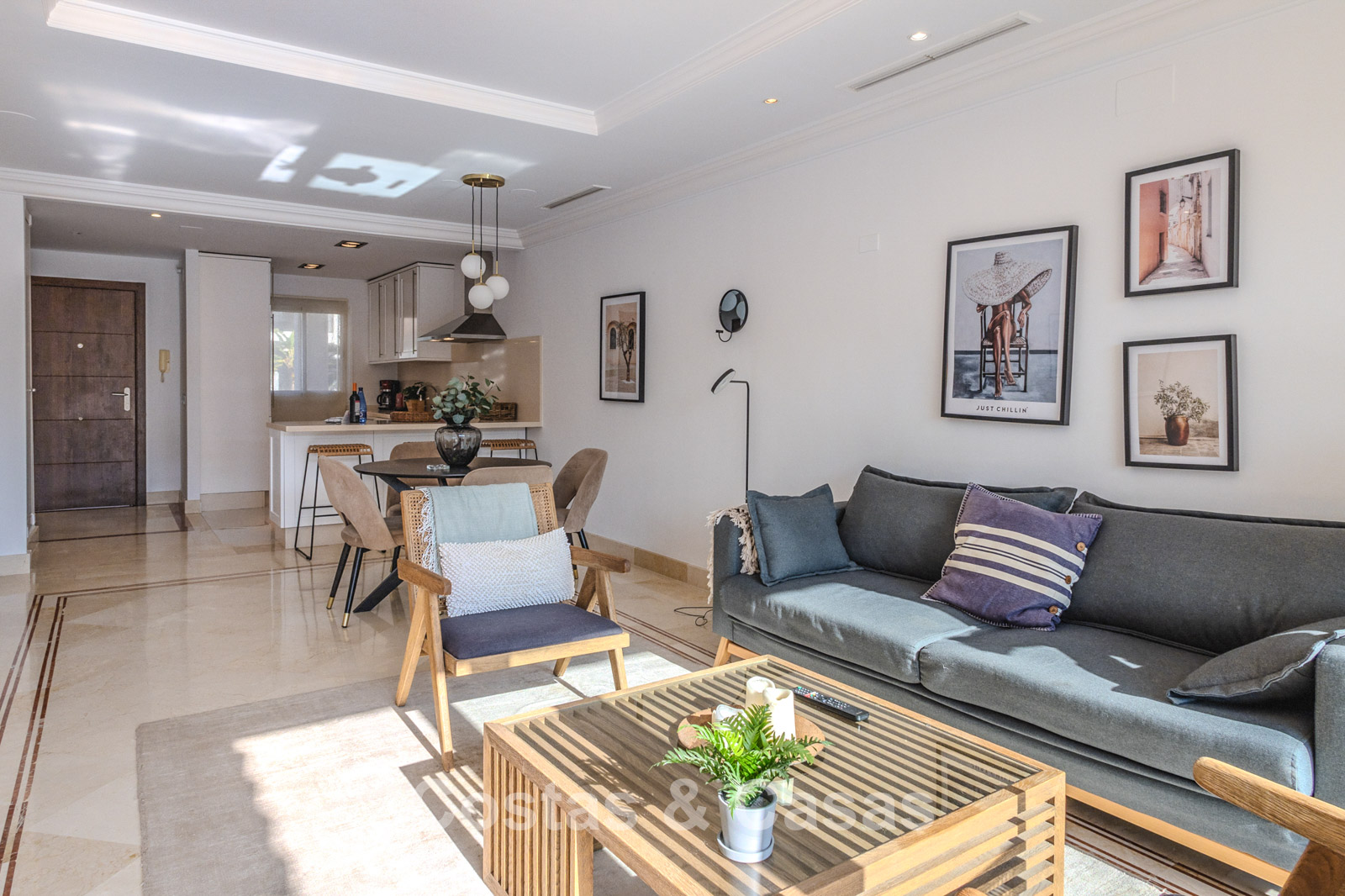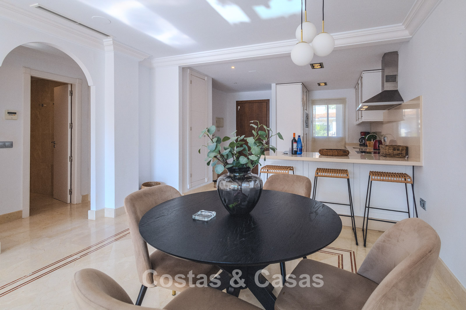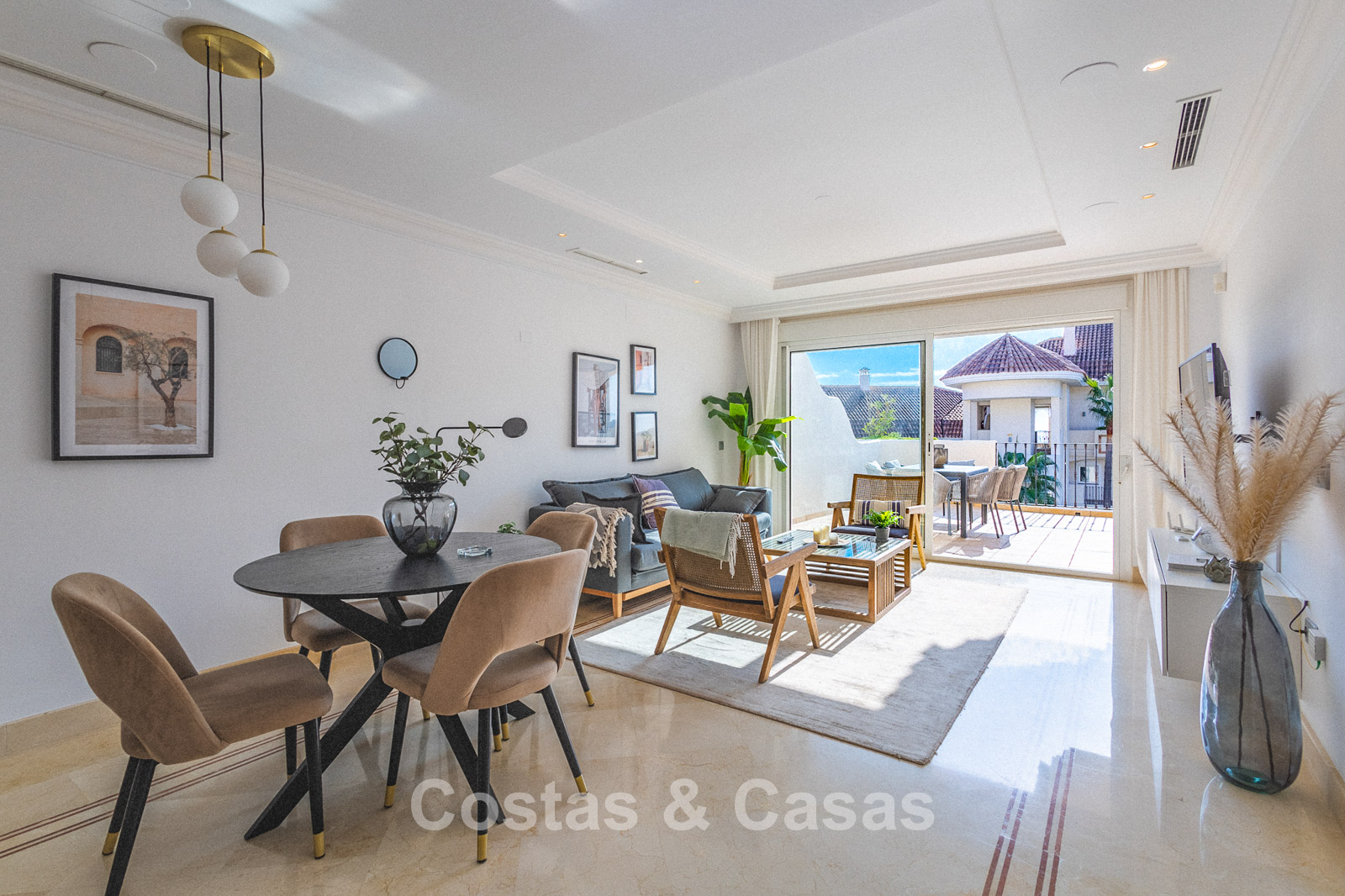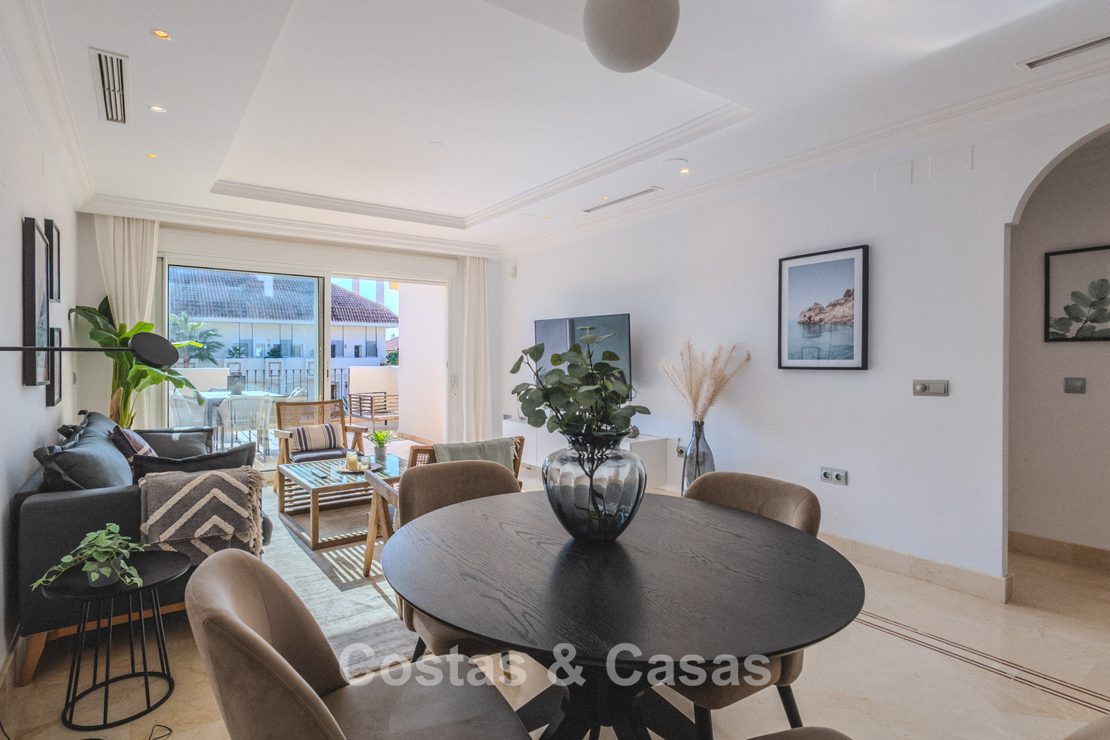 Autres caractéristiques : Climatisation. Armoires encastrées sur mesure. Volets roulants. Système d'alarme. Auvents sur la terrasse. Entièrement meublé.