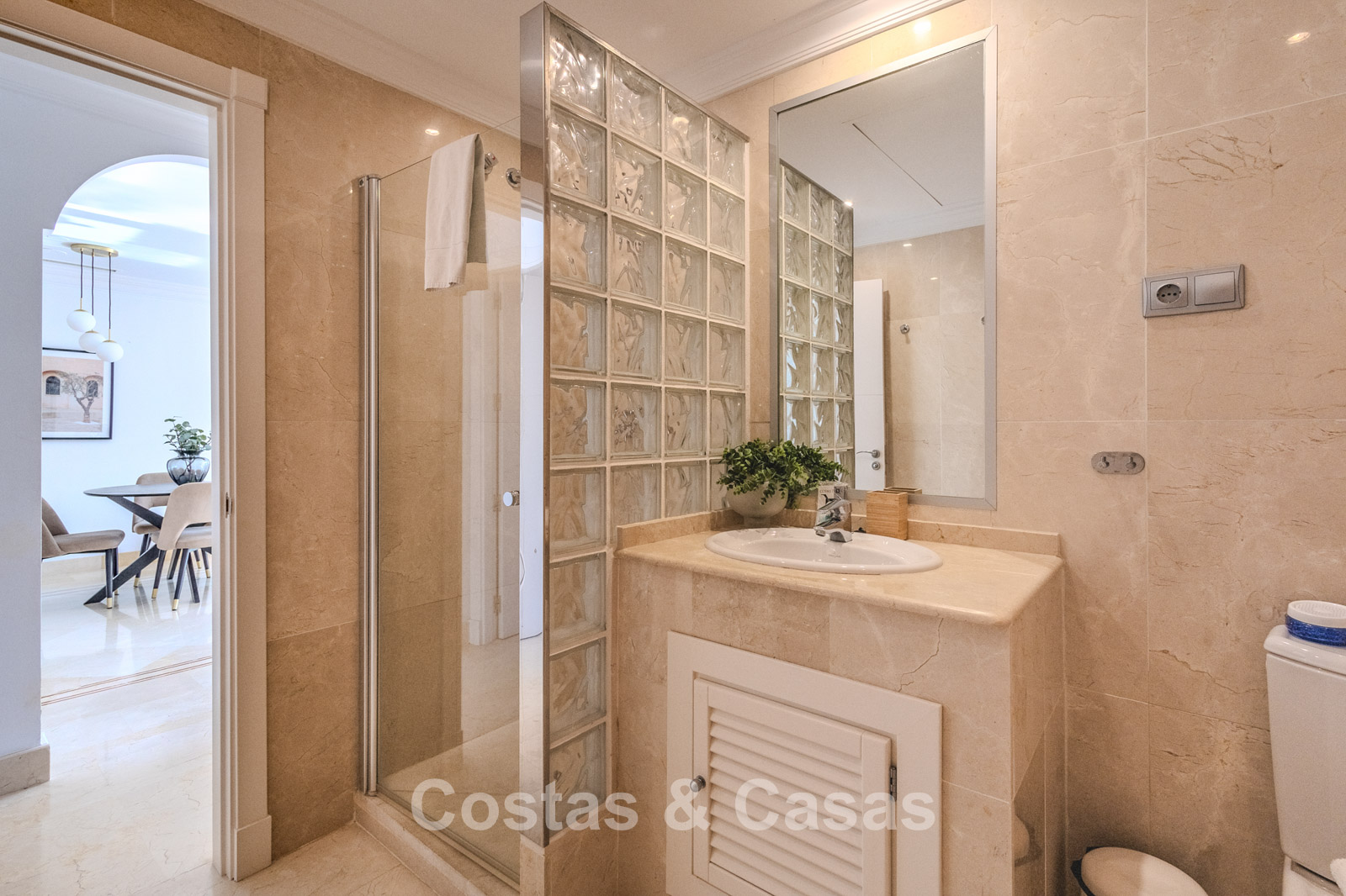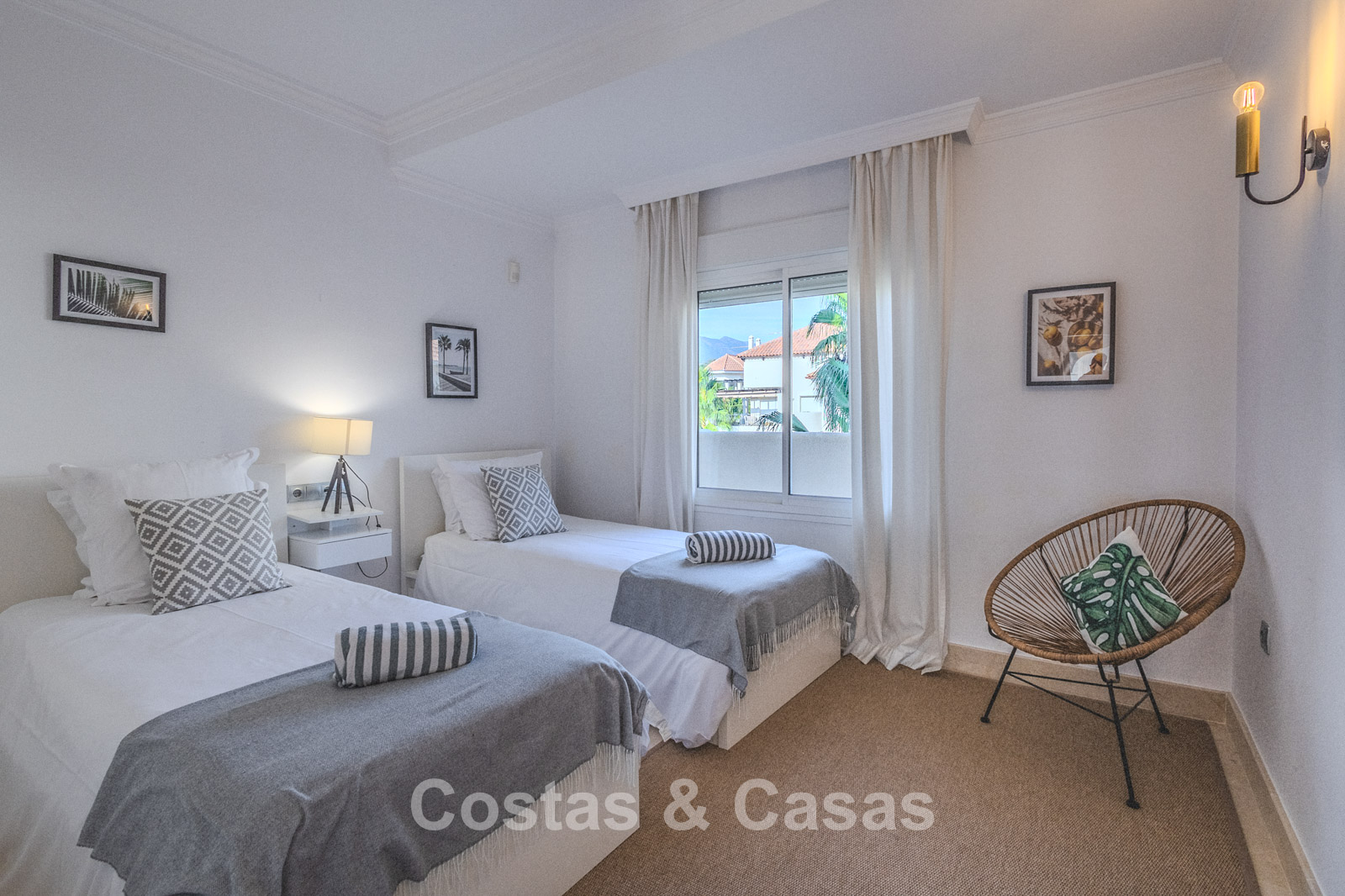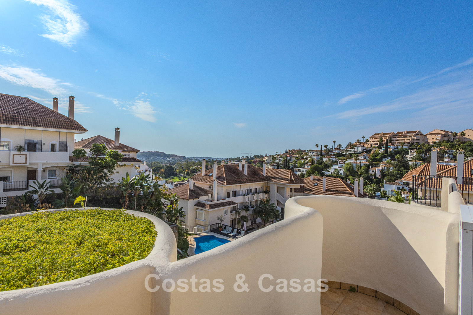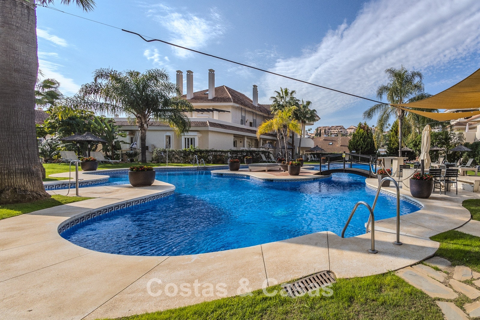 Situé dans un complexe fermé avec sécurité 24h/24, dans une position élevée dans le quartier recherché de Nueva Andalucia. À quelques pas des principaux terrains de golf, notamment Las Brisas Golf Club, Los Naranjos Golf et Aloha Golf, tous dotés de leur propre club-house. Les commodités se trouvent dans la zone commerciale voisine de Nueva Andalucia ou dans le grand magasin El Corte Inglés un peu plus loin à Puerto Banus. Puerto Banús est connue pour sa marina de luxe, ses boutiques de créateurs, ses excellents restaurants, ses bars animés et ses clubs de plage chics. Le Golden Mile, avec les stations balnéaires emblématiques de Marbella Club et Puente Romano, ainsi que le centre de Marbella sont à seulement 10 à 15 minutes en voiture. Ce complexe propose des services de luxe toute l'année, notamment un service de conciergerie avec des installations telles que blanchisserie, réservations de restaurants, excursions, golf, transferts aéroport, location de voitures, ménage et restauration. Les jardins tropicaux disposent de 4 piscines, dont une piscine pour enfants et une piscine semi-olympique chauffée. Les équipements de luxe comprennent un bar et des restaurants au bord de la piscine, un spa et un centre de remise en forme de 5 300 pieds carrés, une supérette, une salle de réunion pour 8 personnes, un club pour enfants et une bodega.