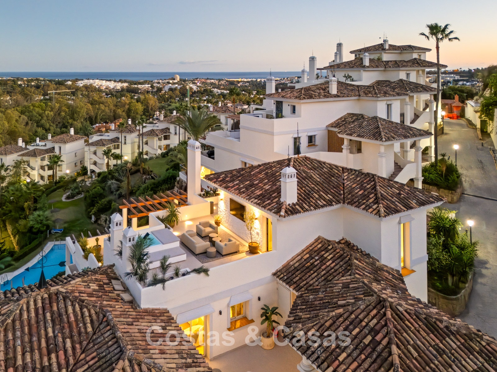 Idéalement situé au sein d’une urbanisation sécurisée dans le très recherché quartier de Nueva Andalucía. Le complexe se trouve dans un environnement calme et exclusif, à courte distance en voiture de Puerto Banús, réputé pour son port de plaisance élégant, ses boutiques de luxe et ses restaurants de renom. À proximité immédiate se trouvent plusieurs parcours de golf prestigieux de Nueva Andalucía, dont Los Naranjos Golf Club, Aloha Golf Club et Las Brisas Golf. Le complexe offre également une sécurité 24h/24 et de nombreuses installations, telles que de magnifiques jardins tropicaux, deux piscines (dont une chauffée), une salle de sport, un sauna et des courts de tennis.