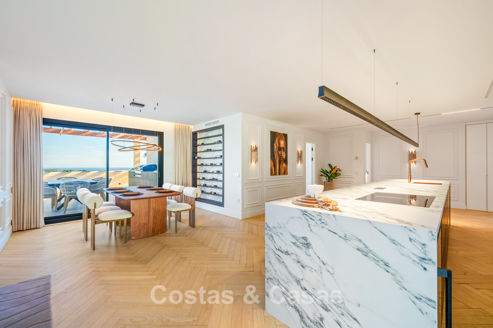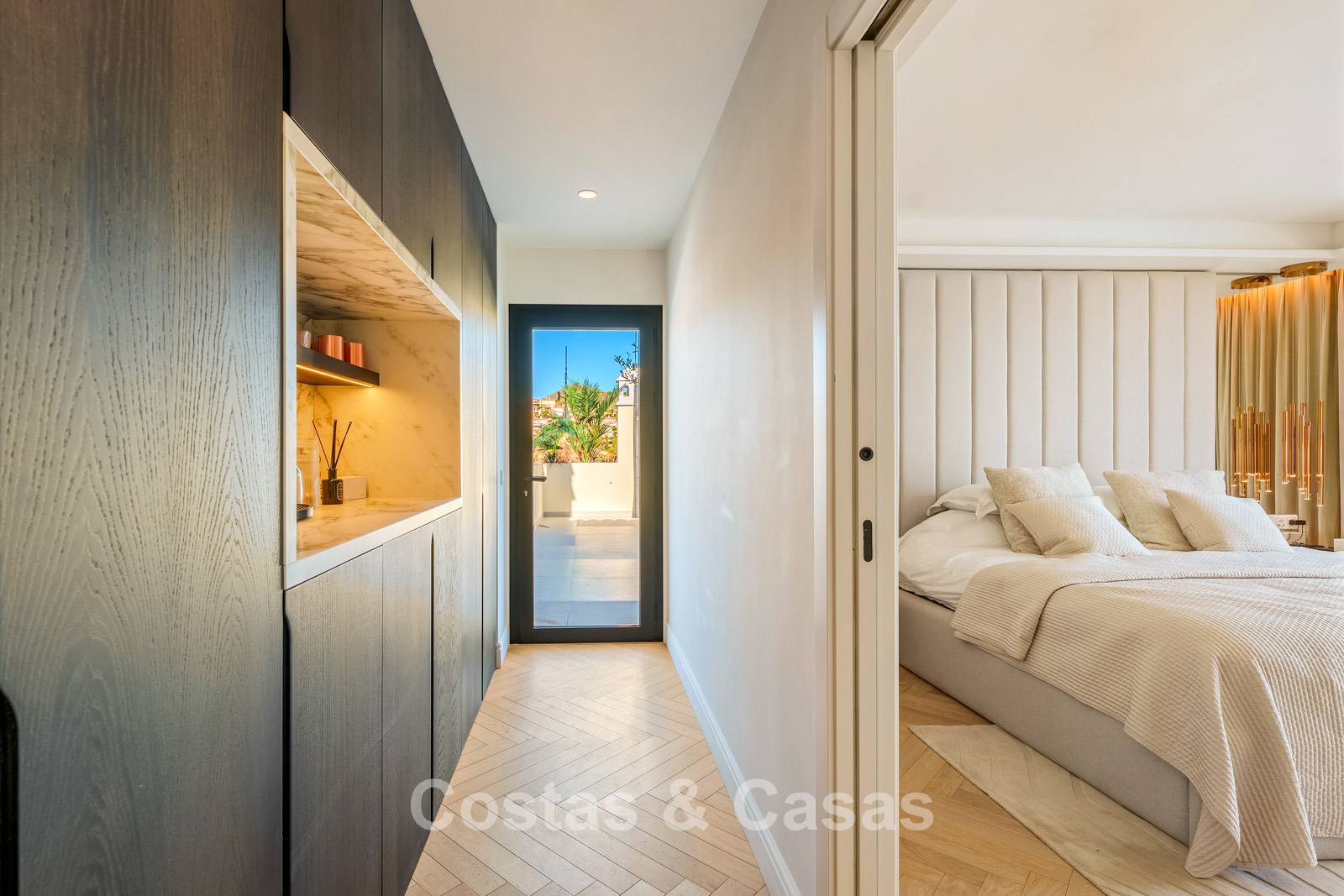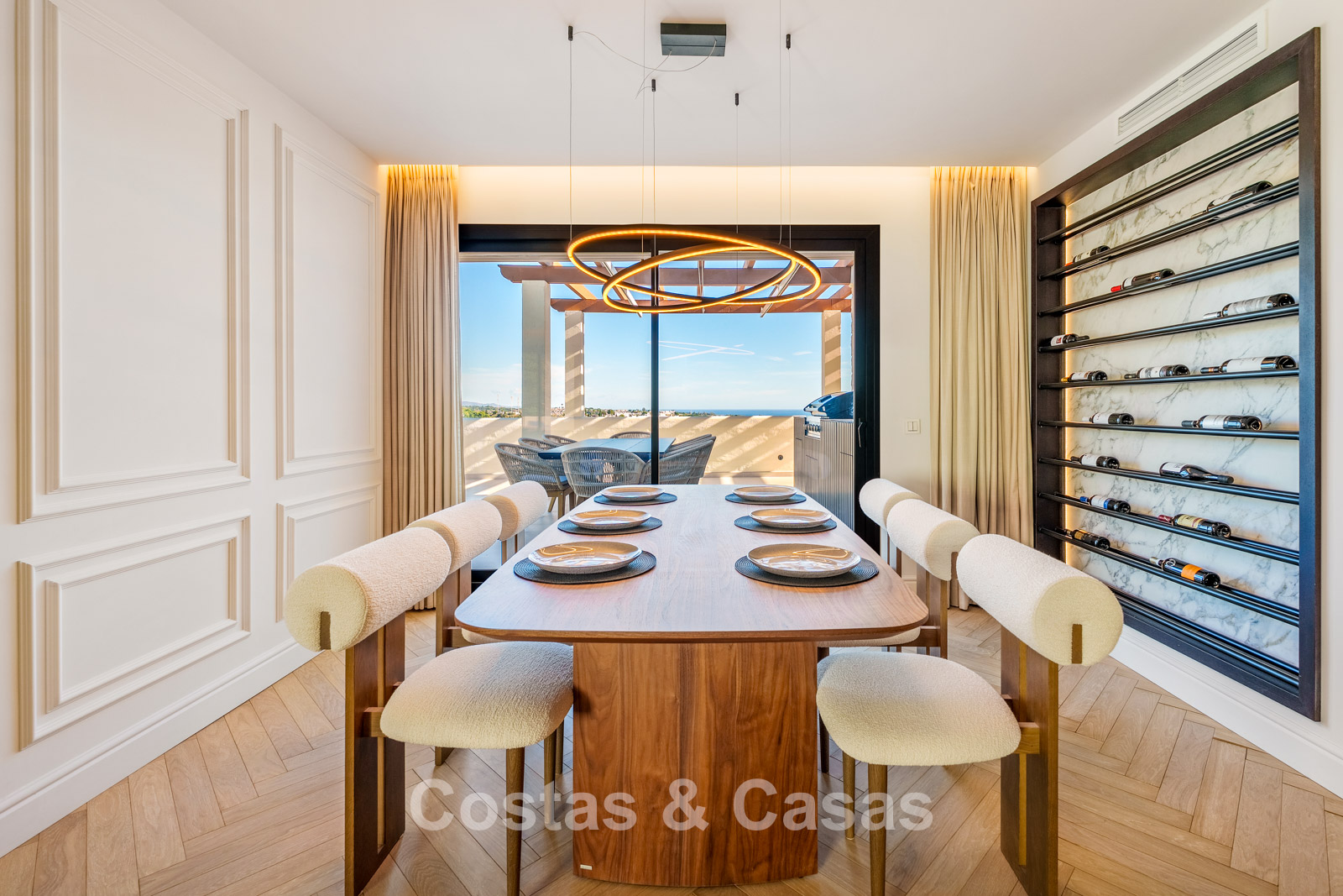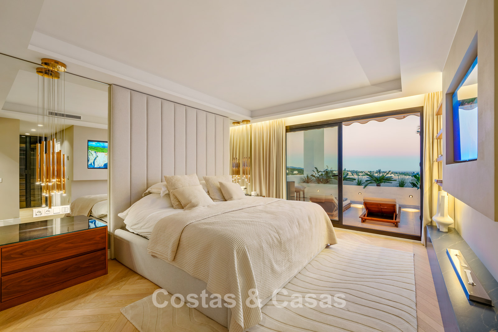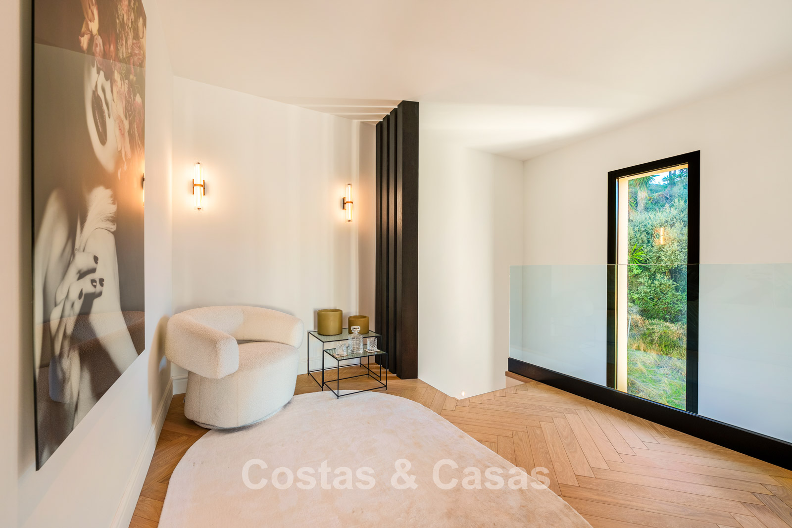 Caractéristiques supplémentaires : Triple vitrage Ultra UV Climatisation Chauffage au sol dans les salles de bains Placards intégrés sur mesure Parquet en chêne à motif chevrons Éclairage LED Entièrement meublé