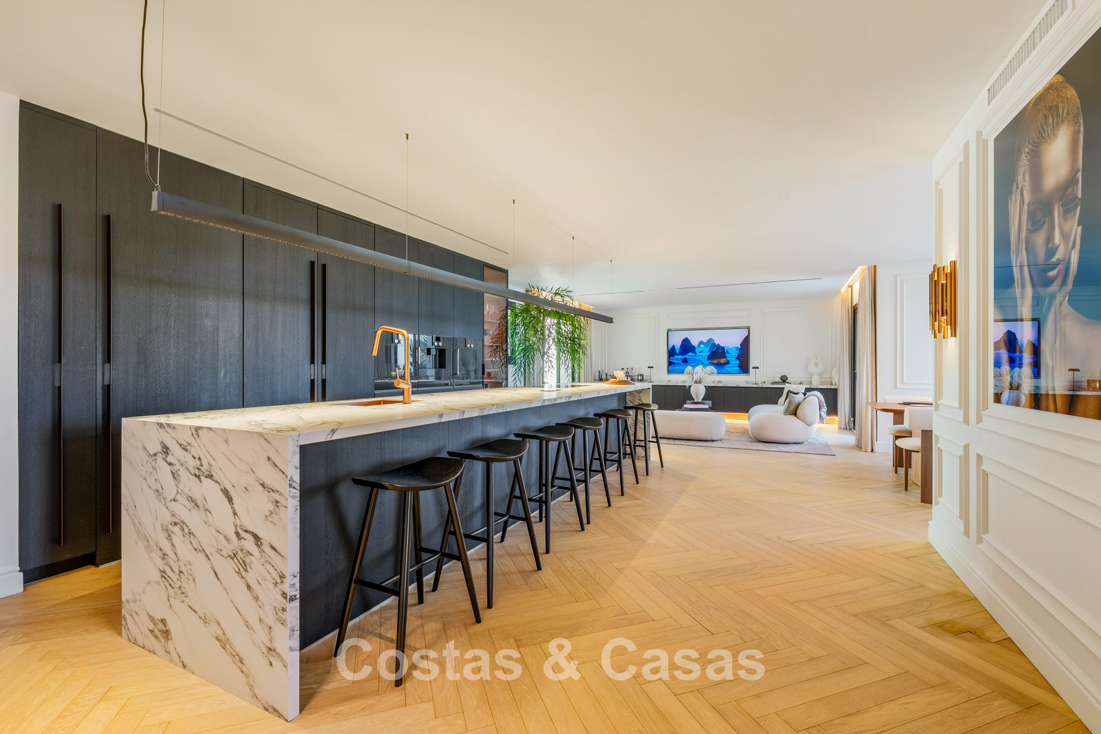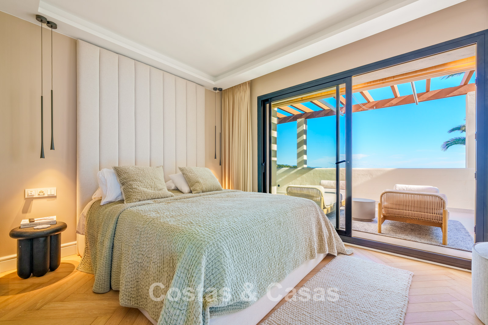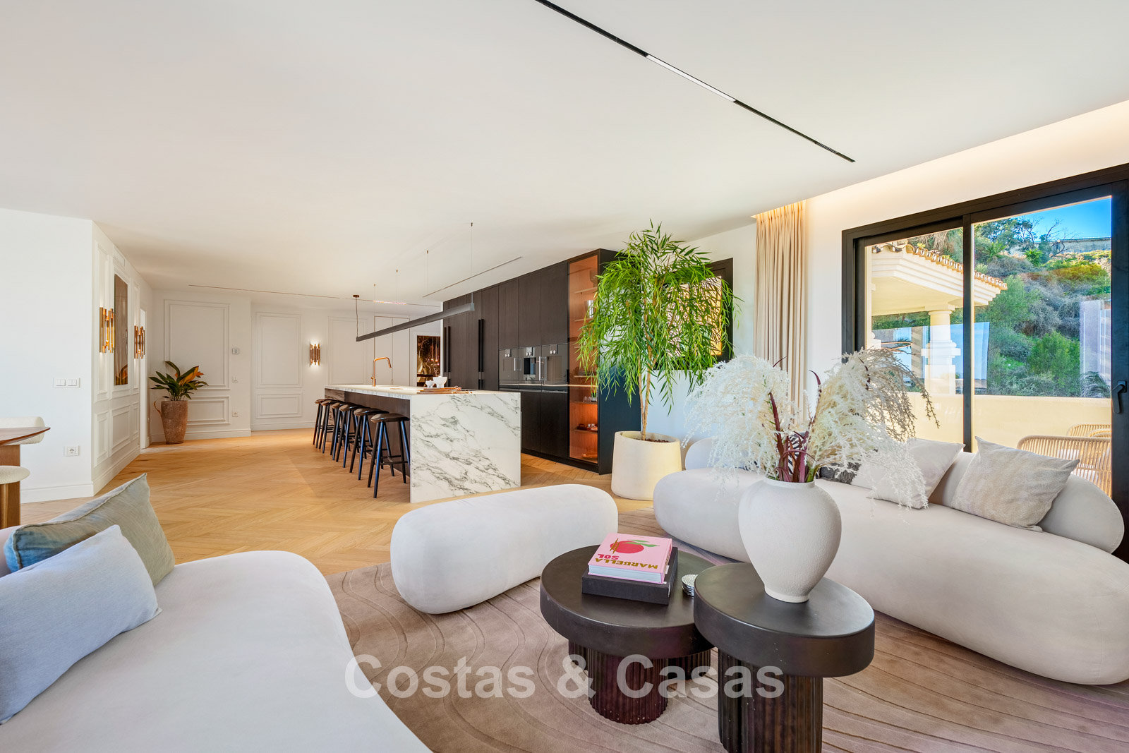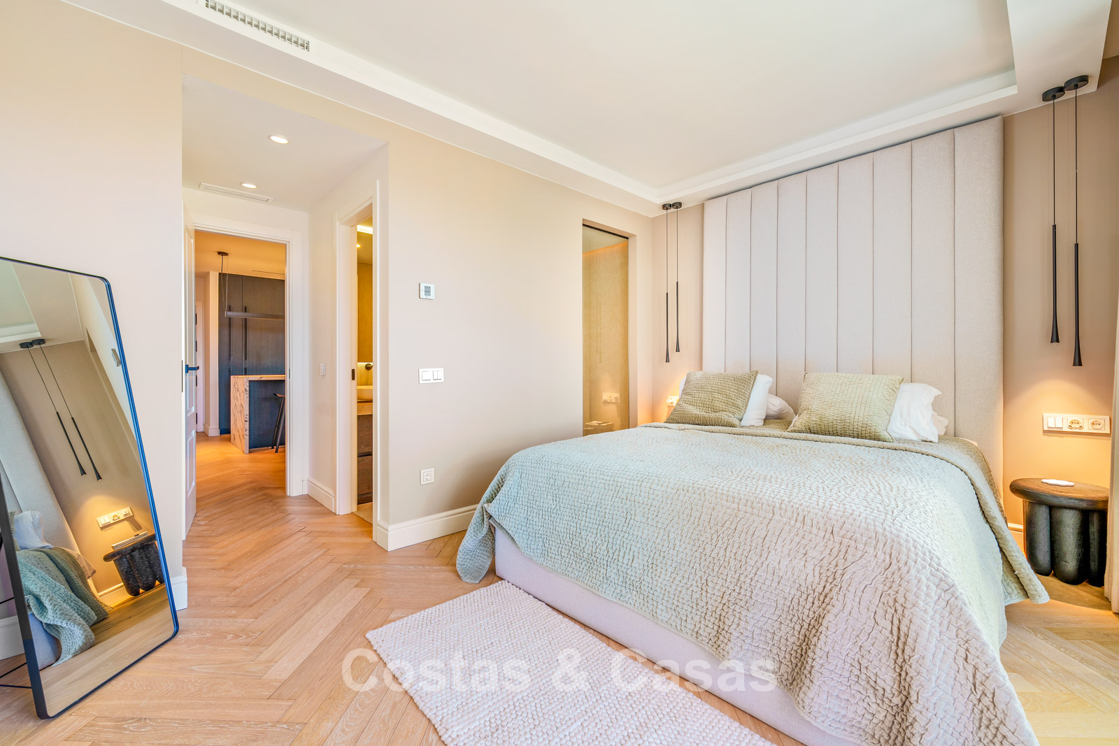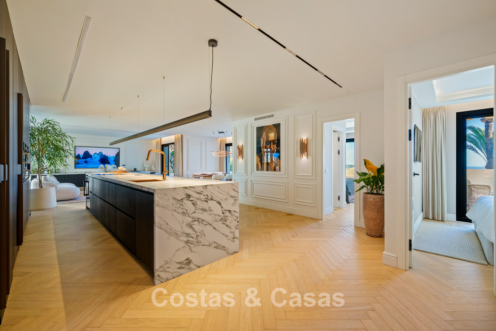 Caractéristiques supplémentaires : Triple vitrage Ultra UV Climatisation Chauffage au sol dans les salles de bains Placards intégrés sur mesure Parquet en chêne à motif chevrons Éclairage LED Entièrement meublé