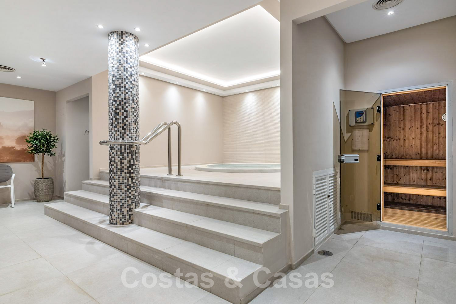 Il y a également une piscine intérieure chauffée, une salle de sport, un spa avec jacuzzi, sauna et bain turc et un club social.
