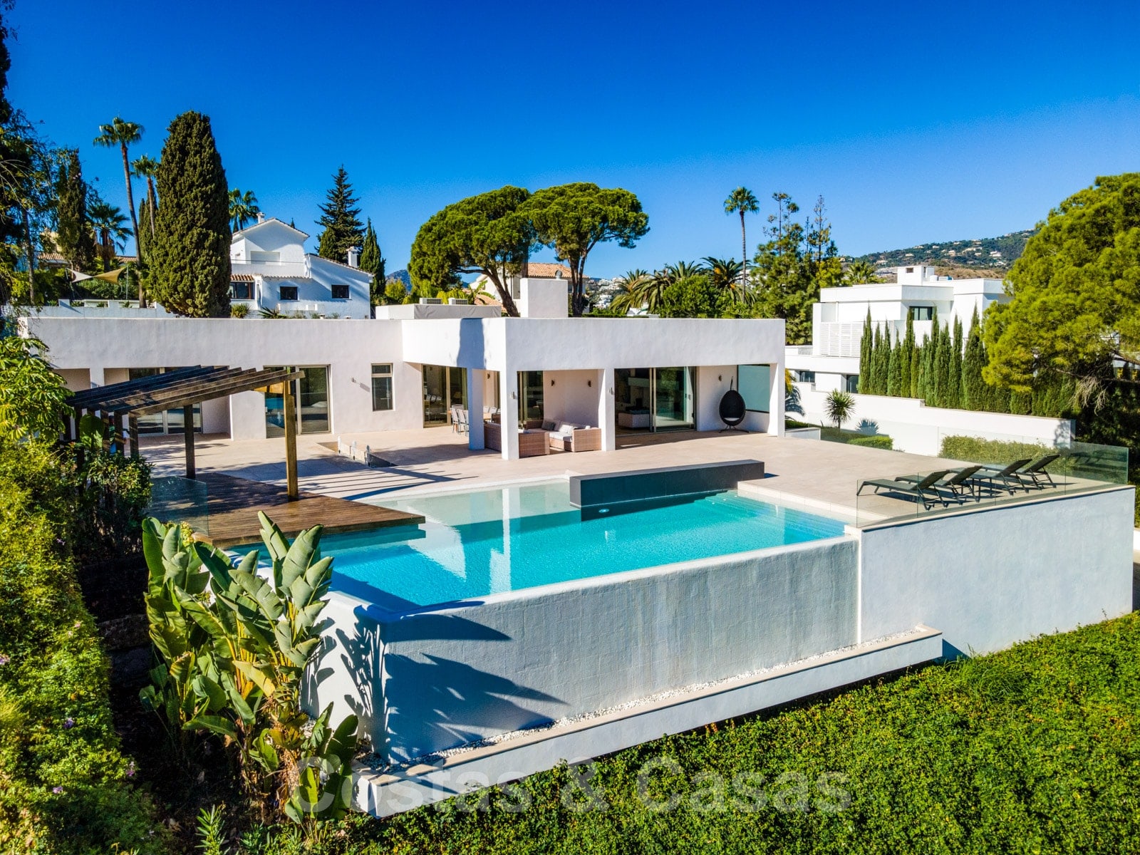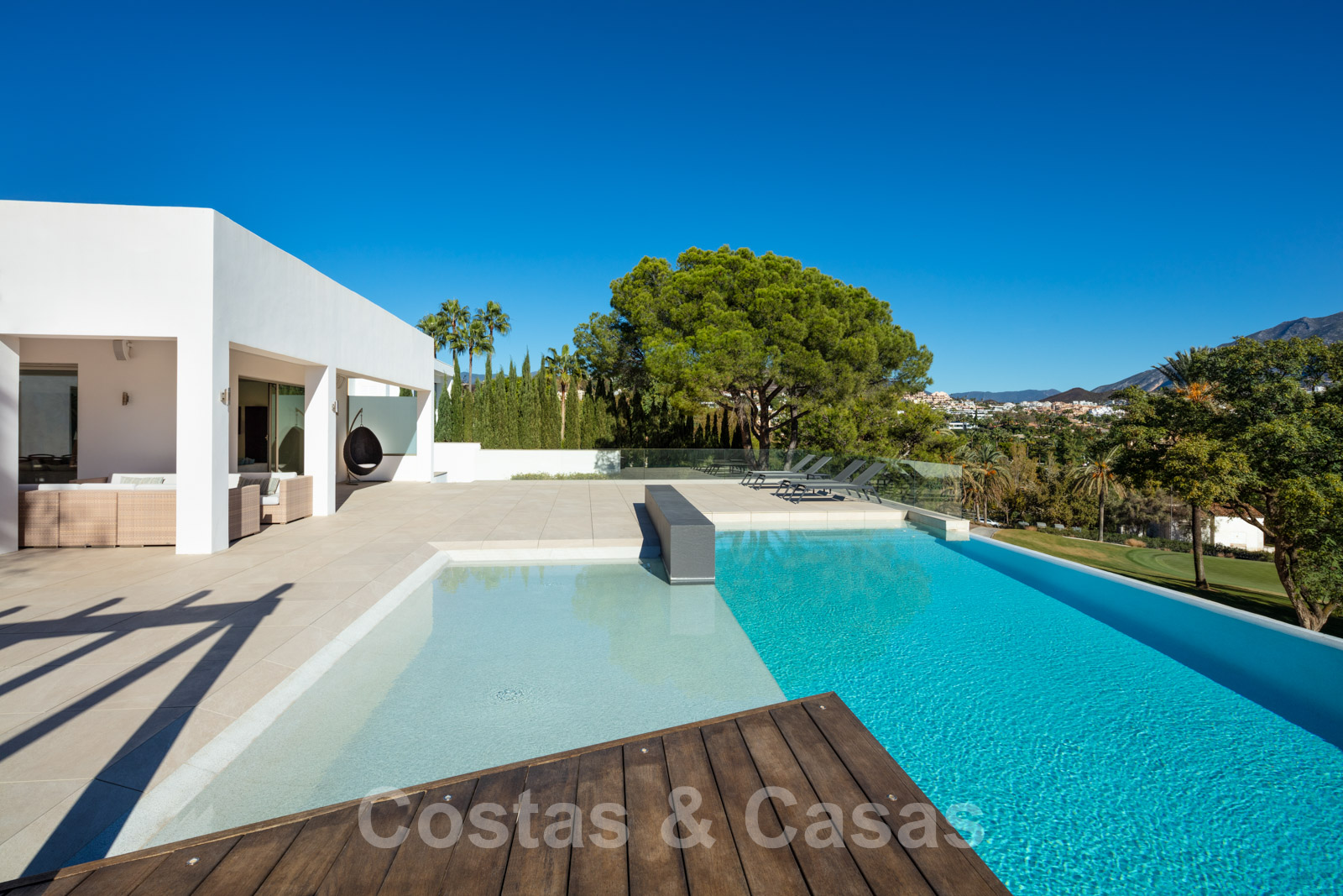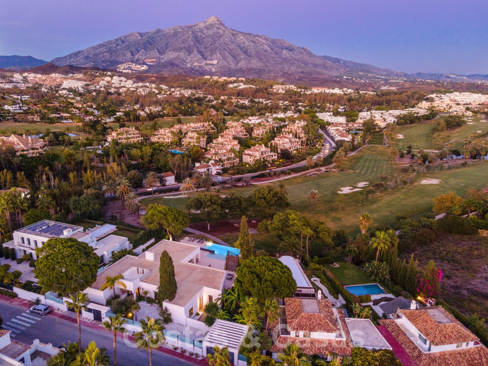 Villa de conception moderniste, prête à emménager, à vendre, au bord du terrain de golf Las Brisas à Nueva Andalucia, Marbella