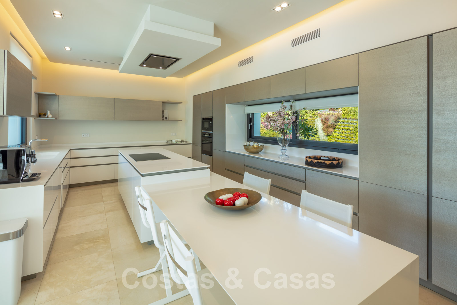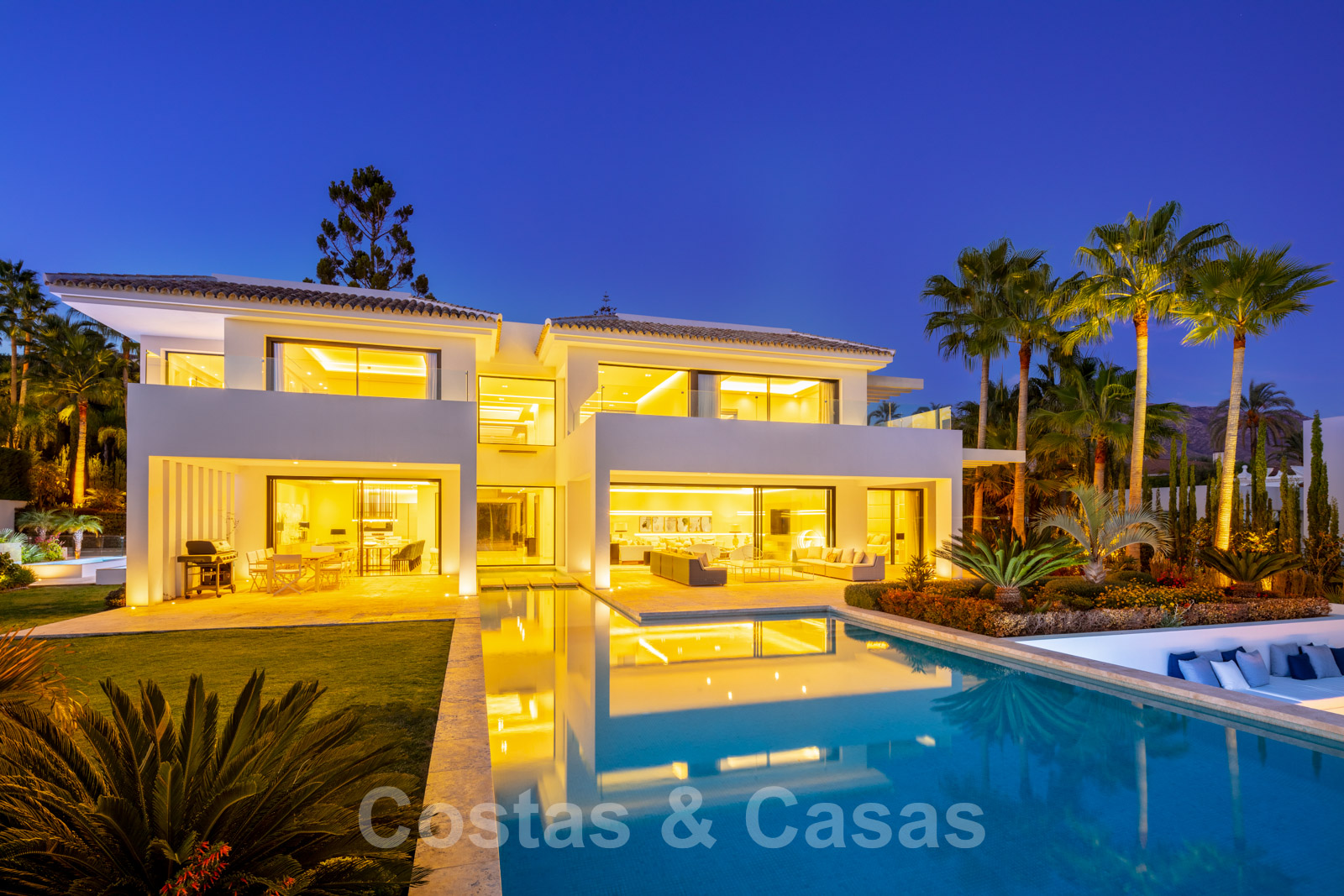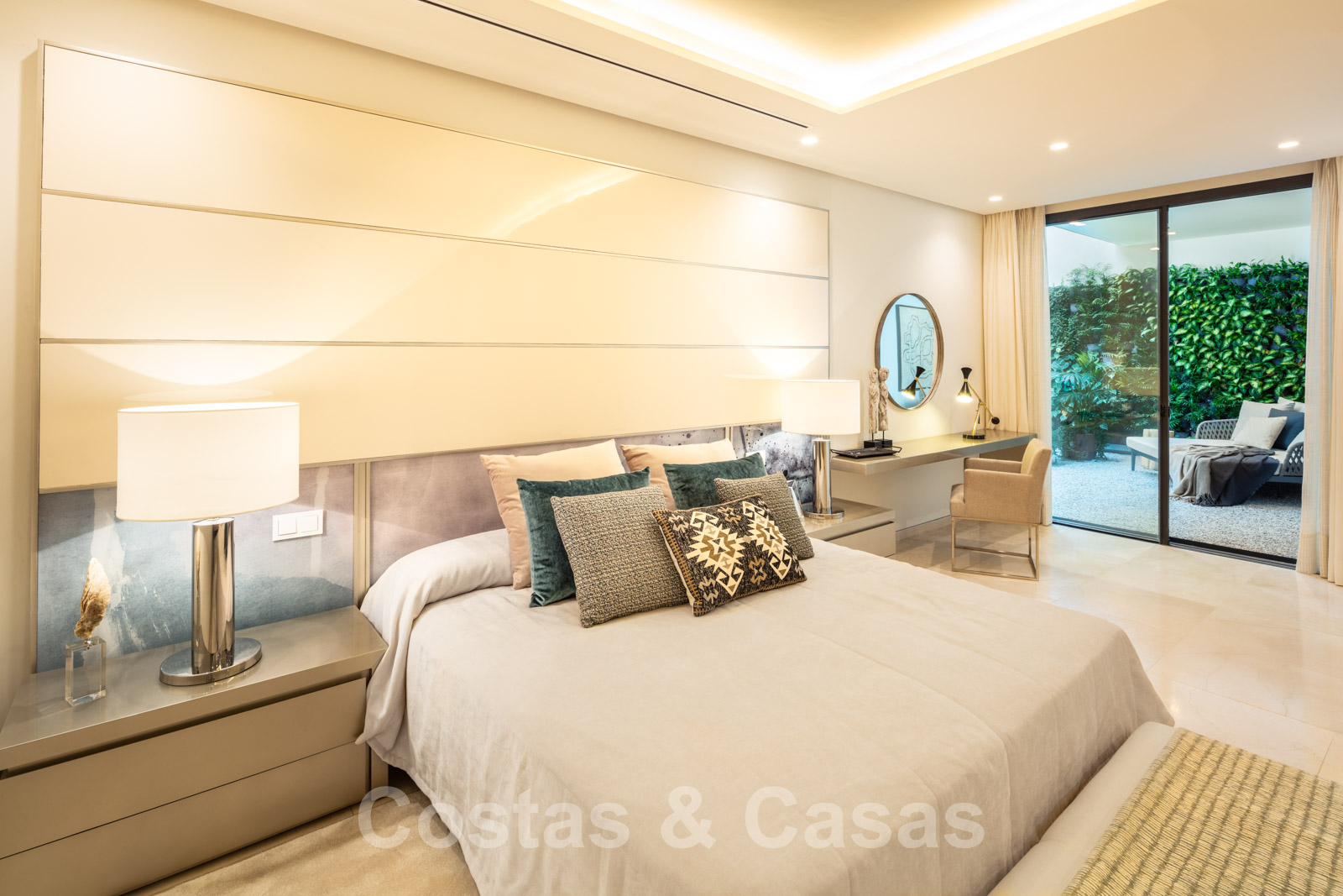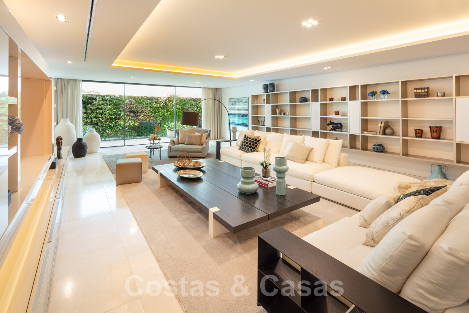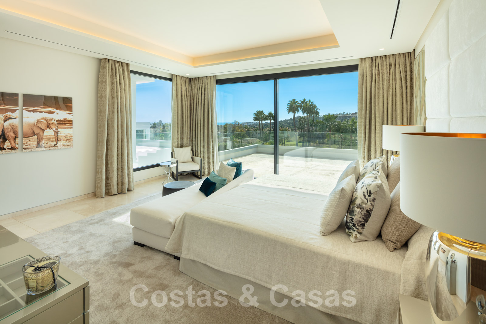 Elle est meublée de façon magistrale avec des éléments de haute qualité et offre un accès direct aux terrasses couvertes et ouvertes.