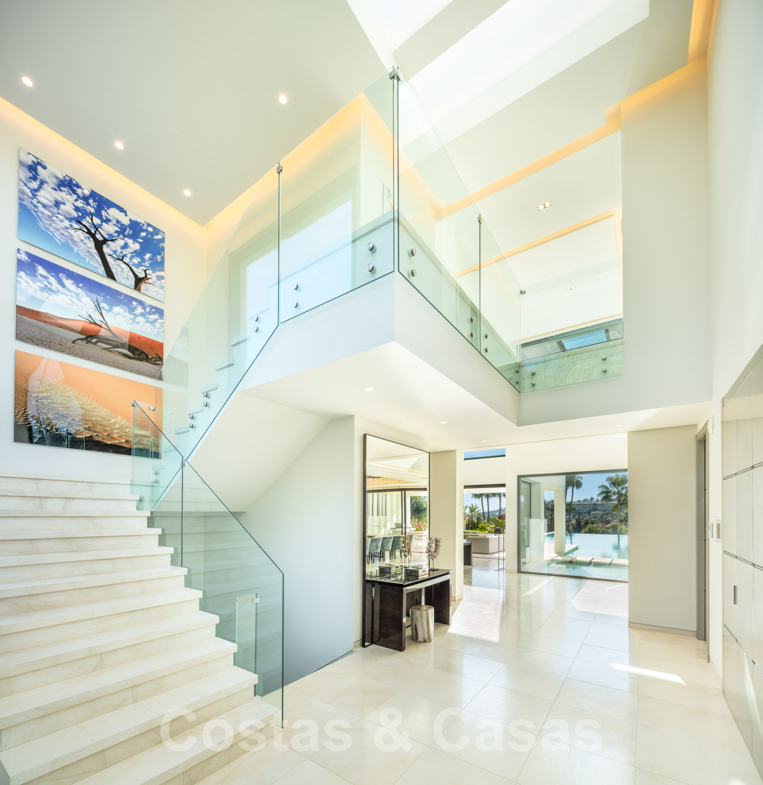 Le concept est façonné par l'imposant hall d'entrée à double hauteur, qui mène à un grand séjour ouvert, les fenêtres du sol au plafond qui illuminent richement les chambres et les fontaines uniques.